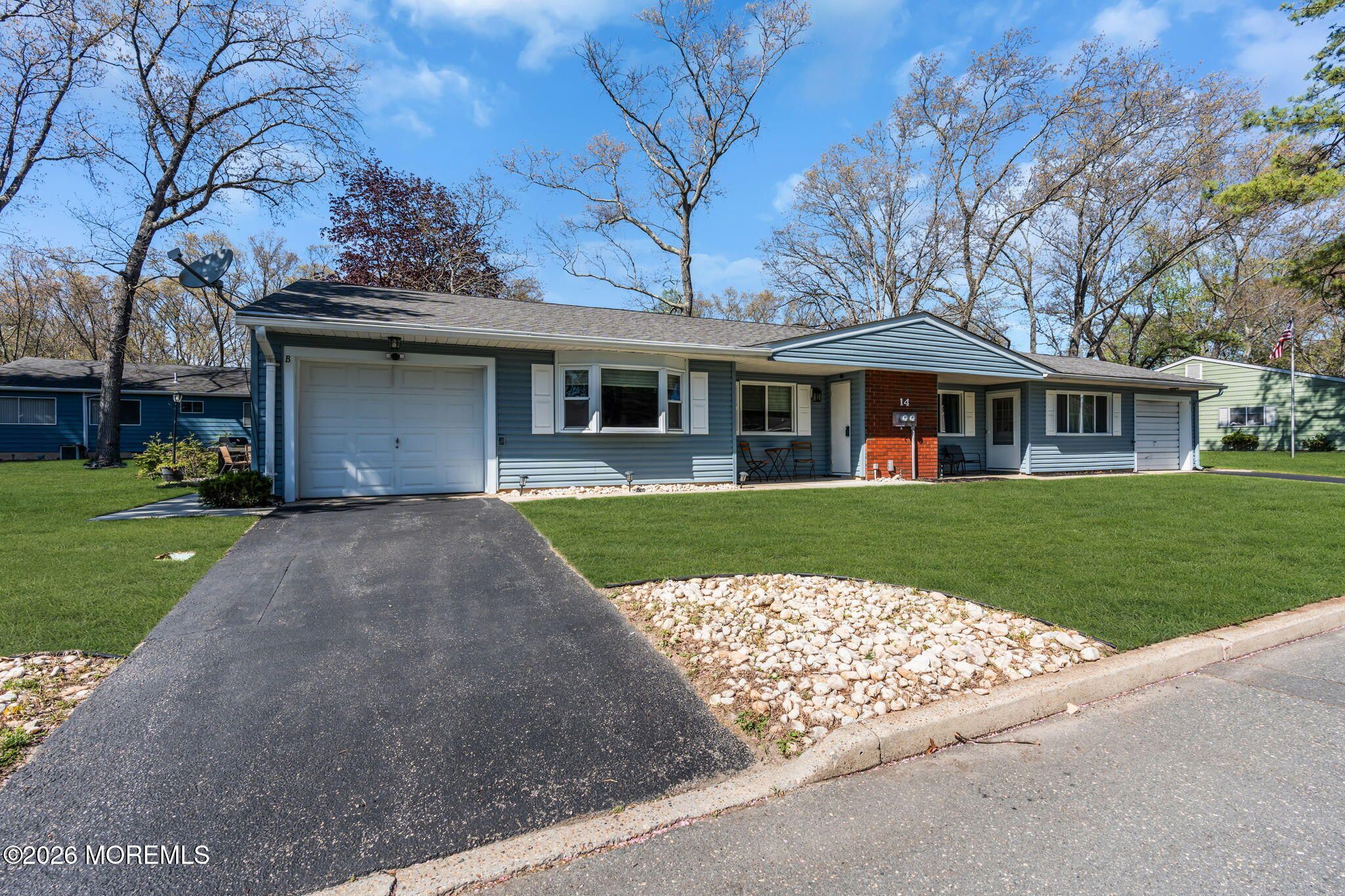 Welcome to this beautifully maintained Madison model home...exceptionally clean 2-bedroom, 1.5-bath (rare half bath) home located in the desirable Cedar Glen Lakes adult community in Whiting.Offering comfortable one-level living and a move-in ready interior, this home features a recently updated kitchen with quartz countertops, stainless steel appliances, generous cabinet space, and a center island that flows seamlessly into the dining area, making it both functional and inviting. The bright and spacious living room is filled with natural light, and both bedrooms are well proportioned, including a versatile second bedroom that also features a convenient half bath, an appealing bonus for guests, a home office, or added everyday flexibility. Vinyl flooring was installed approximately 7 years ago, and valuable updates throughout the home include siding and windows replaced in 2020, central air replaced 2 years ago, and a water heater replaced just 1 year ago. The AC was serviced for the year on 4/22/26 and has 8 years remaining on the warranty, offering added peace of mind. Outside, a private patio provides a quiet space to relax or entertain, and the home's excellent condition reflects true pride of ownership throughout. Seller is also willing to sell all furniture in the home, creating a wonderful turnkey opportunity for the next owner.