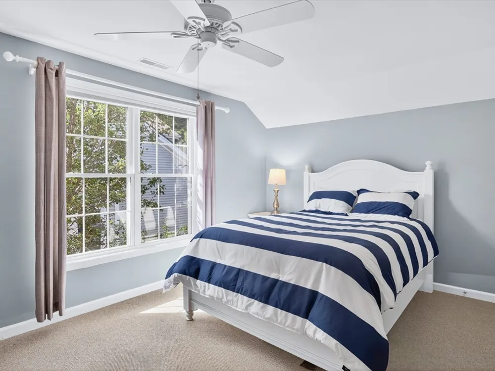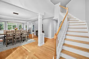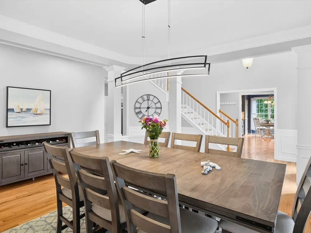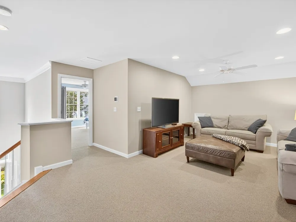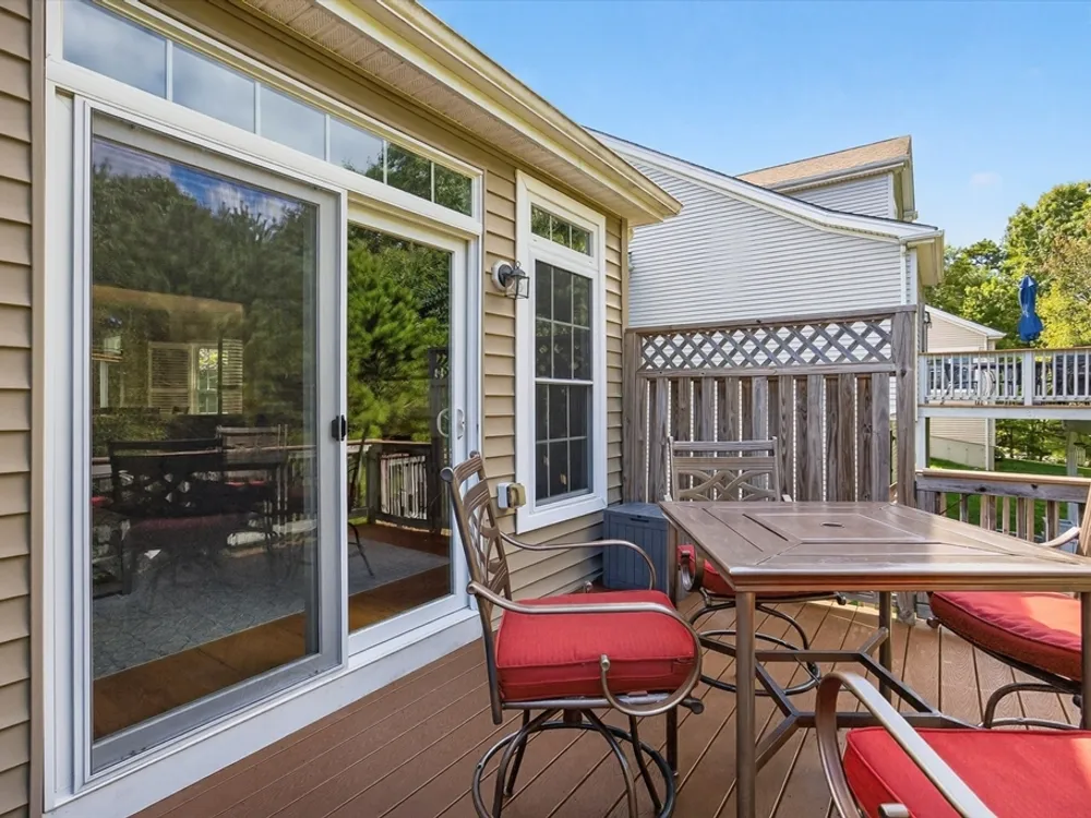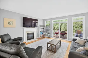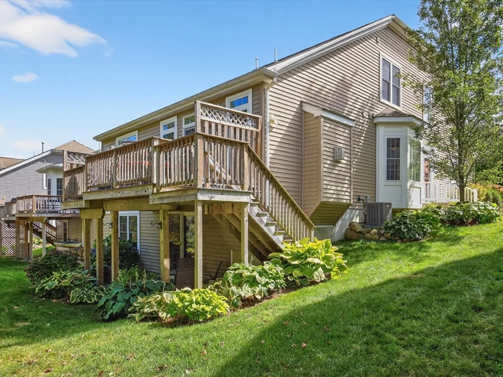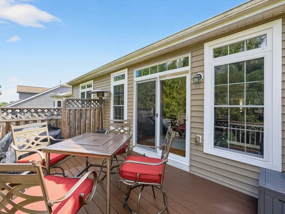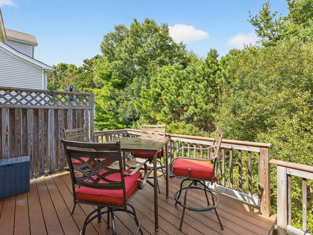 Stunning + bright "Milton" home w/custom window treatments located in the 55+ Great Island neighborhood in The Pinehills. Elegant dining room w/ hardwood flooring, crown trim + chair-rail w/ a bay window. Living room w/ feature wall, hardwood flooring + slider to spacious trex deck w/ private wooded views. First floor primary suite has ensuite bath + shower + walk-in closet. The laundry room + office add to the first level living. Dine in kitchen w/ SS appliances. Lovely open oak tread staircase greets you at the front door and leads you to second floor guest suite w/ expansive den + bedroom w/ ensuite bath and plenty of privacy. Bright walkout basement w/ glass slider + 2 large windows ready to finish. Enjoy amenities nearby at Overlook Clubhouse (1 min stroll via walking path) with indoor pool + jacuzzi, gym, billiards room, walking trails, tennis, pickle ball and bocce. Great Island Pond (.2 miles) & Stonebridge Club all part of HOA, w/ snow + trash removal. Tesla charger incl.