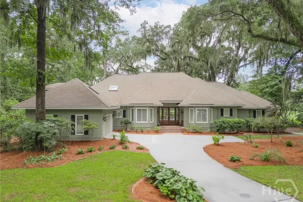 Welcome to this spacious 3,800 sq ft single-level home nestled on a large lot with expansive golf course views in the heart of The Landings. Ideally located near the Oakridge gate, this beautifully maintained residence offers 3 bedrooms, 3.5 bathrooms, plus a versatile bonus room with a full bath—perfect for guests or a home office. Enjoy 10’ ceilings, updated systems, and a sunroom that fills with natural light. The newly replaced deck is ideal for entertaining, overlooking the serene lawn and course. A fresh exterior paint job and newer roof add peace of mind. Additional features include a walk-up floored attic for extra storage and a thoughtfully designed layout that blends everyday living with elegant entertaining. With its prime location and golf course setting, this home captures the best of The Landings lifestyle.