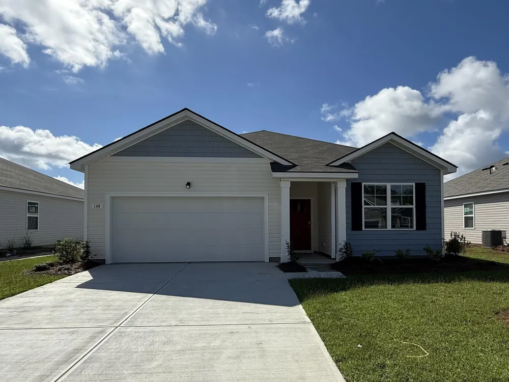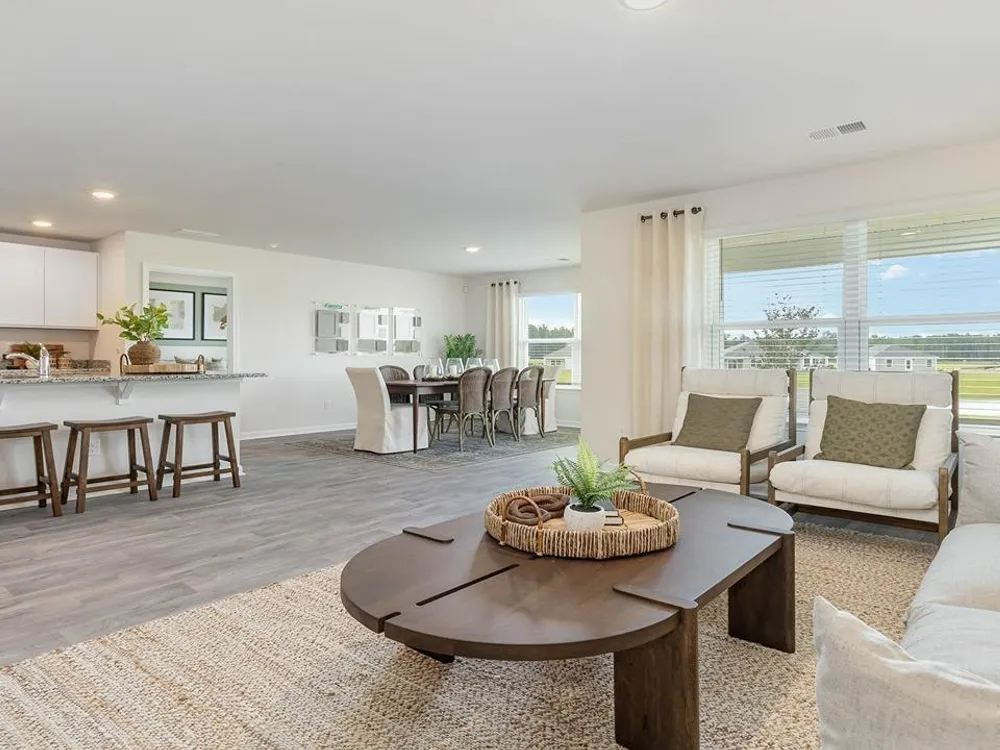 This thoughtfully designed one level home is one of our most popular floor plans! With an open concept living room, dining room and kitchen, this home is bright, spacious, and designed for entertaining guest or comfortably interacting with family. The kitchen features granite countertops, a tile backsplash, 36" cabinets, a spacious pantry, stainless steel appliances including a refrigerator, and island with breakfast bar! Your primary suite awaits off the back of the home with a spacious walk-in closet and master bath with double sinks, a linen closet and 5' shower. Two secondary bedrooms are at the front of the home providing separation from the primary suite. Enjoy the coastal air from the back porch as you wind down in the evening overlooking the pond! This is America's Smart Home! Each of our homes comes with an industry leading smart home technology package that will allow you to control the thermostat, front door light and lock, and video doorbell from your smartphone or with voice commands to Alexa. *Photos are of a similar Aria home. Pictures, photographs, colors, features, and sizes are for illustration purposes only and will vary from the homes as built. Home and community information, including pricing, included features, terms, availability and amenities, are subject to change and prior sale at any time without notice or obligation. Square footage dimensions are approximate. Equal housing opportunity builder.