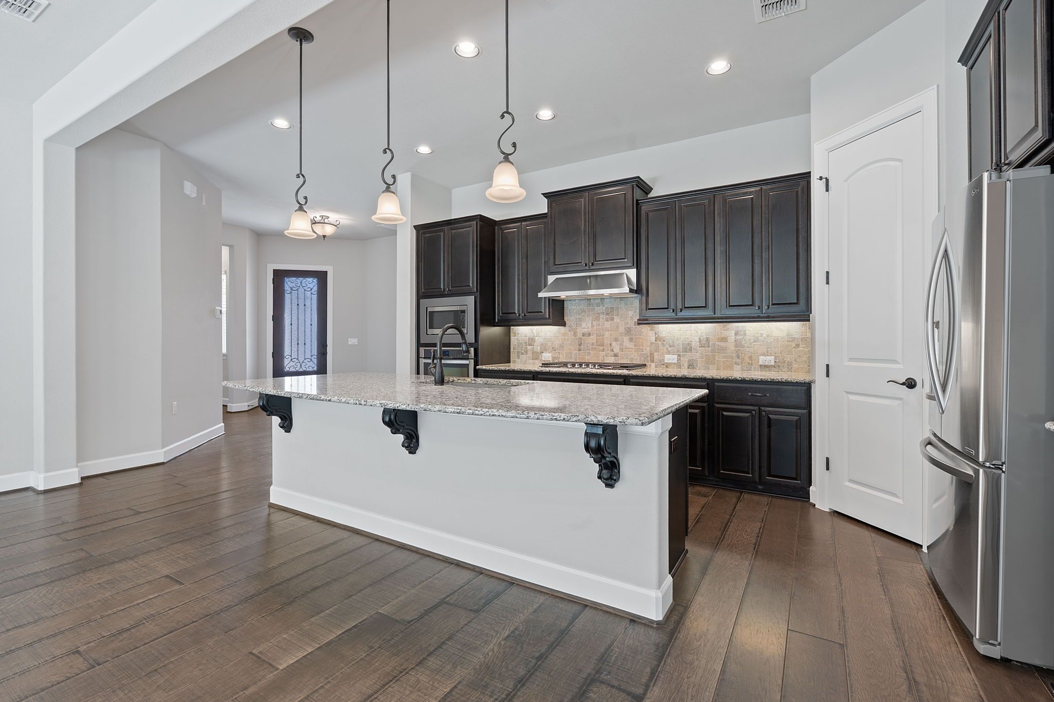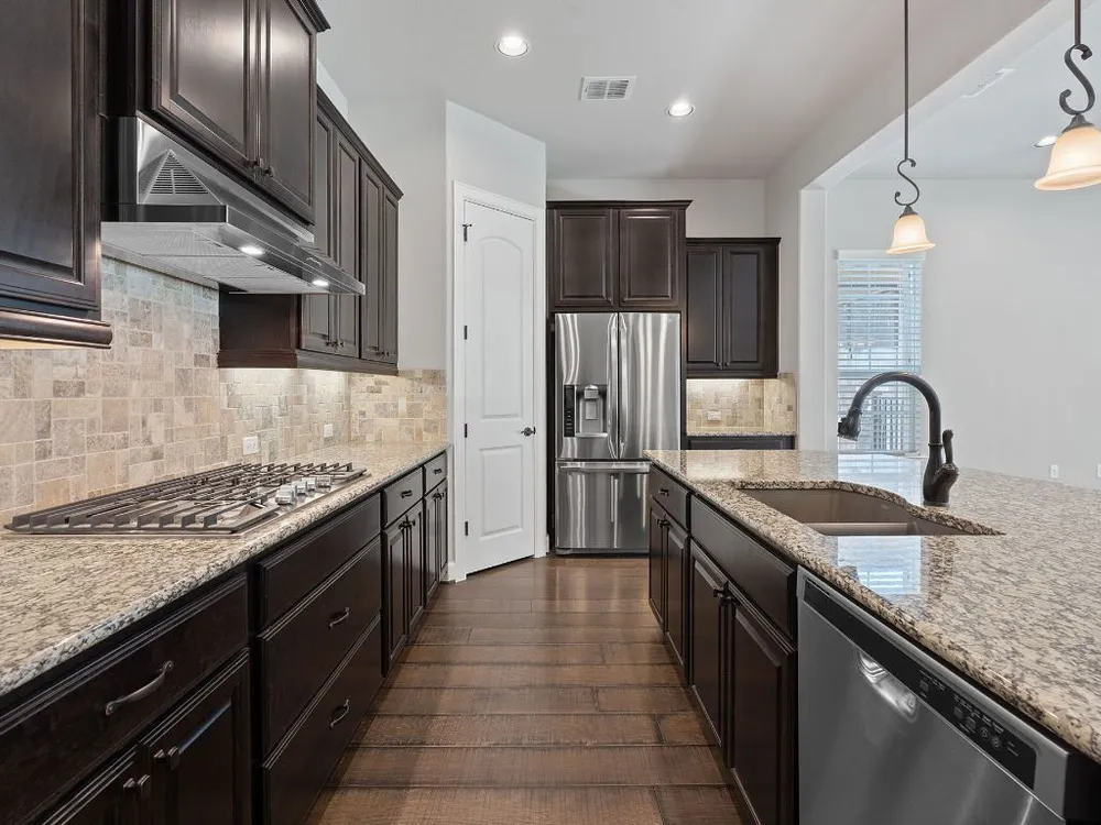 - Built-In Gas Range, Cooktop, Dishwasher, Exhaust Fan, Disposal, Gas Range, Microwave, Oven, Refrigerator, Water Softener, Vented Exhaust Fan