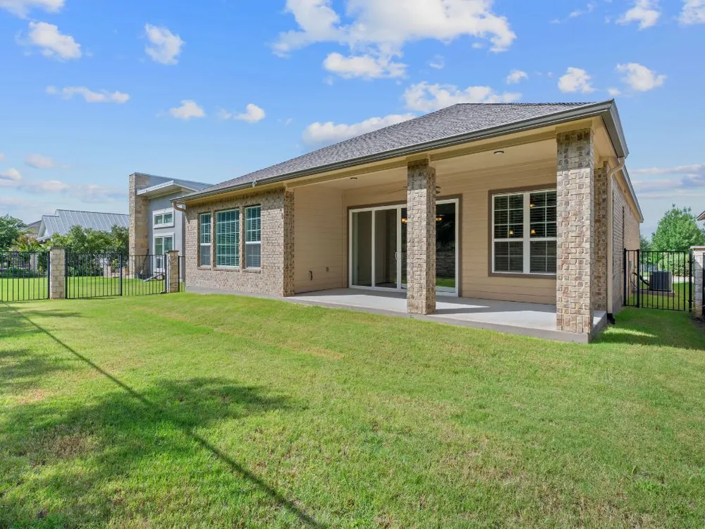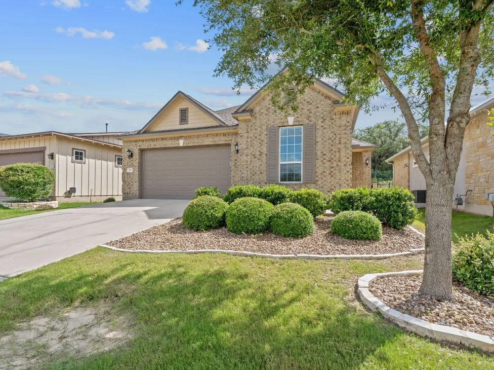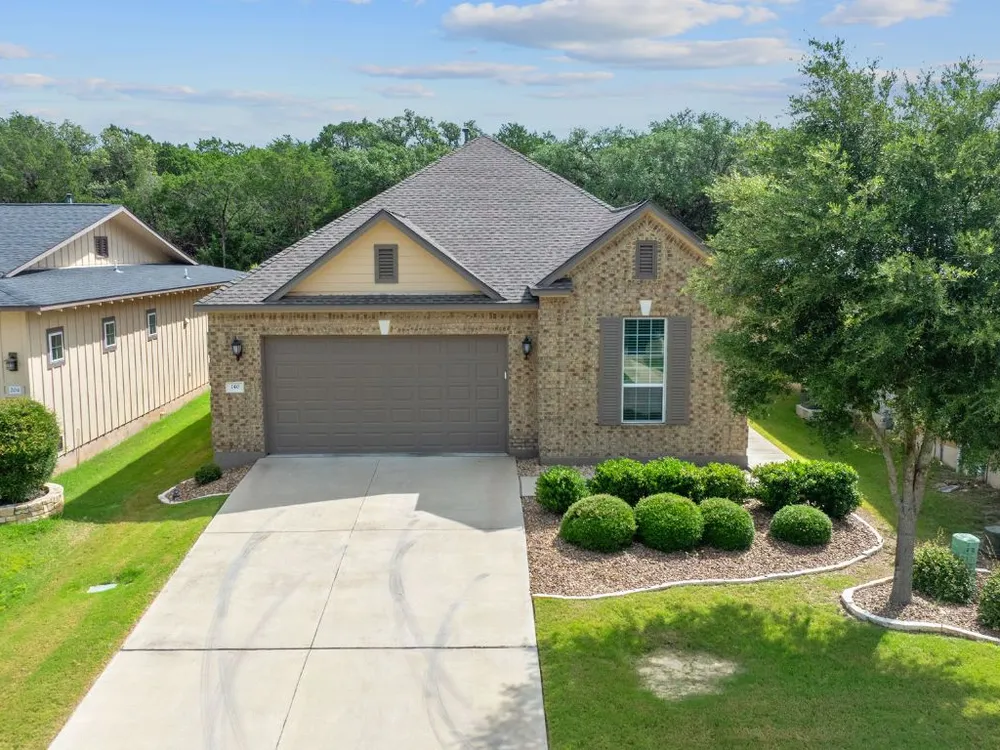 Meticulously maintained 2 bedroom/2 bathroom home nestled on a coveted quiet interior lot that backs to greenspace. The open concept layout is great for entertaining/having guests over. The kitchen has barely used stainless steel appliance and beautiful granite counters and large kitchen island, overlooks the dining and living that opens up to the covered back patio. The bedrooms are separated by the main living space, allowing for maximum privacy for the master suite. The primary bedroom overlooking the private back yard/green space has high ceilings, ceiling fan and a large walk-in closet. The master bathroom has dual sinks, granite counter and a huge walk-in glass shower. A bonus nook is the perfect space for a small desk, office space or reading chair. Kissing tree, a gated 55+ community, offers an array of top-tier amenities including an Audubon-rated 18 hole golf course, pool and spa, resort activities, an on-site restaurant and bar, sport courts, pickleball courts, fitness center with classes, trails, activities and so much more. Situated between Austin and San Antonio, as well as the hill country wineries.