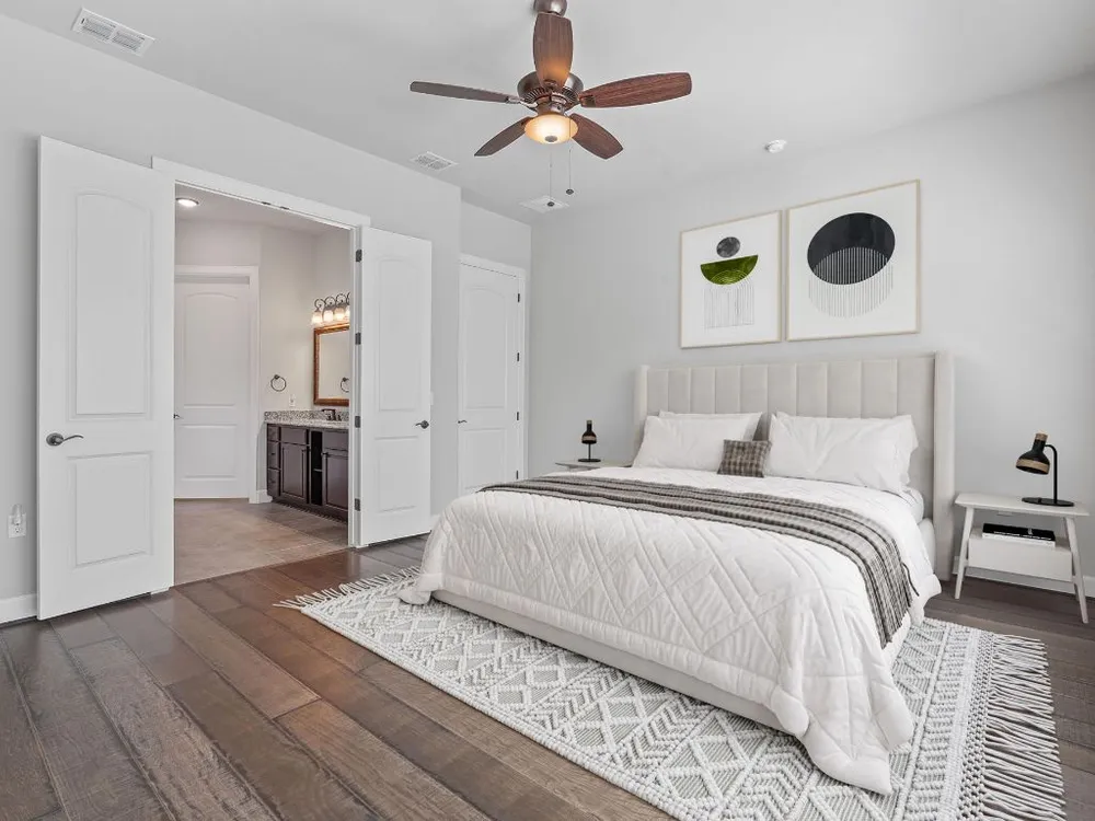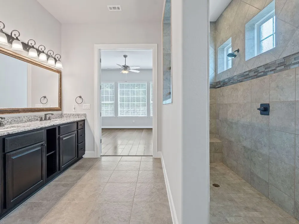 - Ceiling Fan(s), Granite Counters, High Ceilings, Kitchen Island, Main Level Primary, Open Floorplan, Pantry, Walk-In Closet(s)