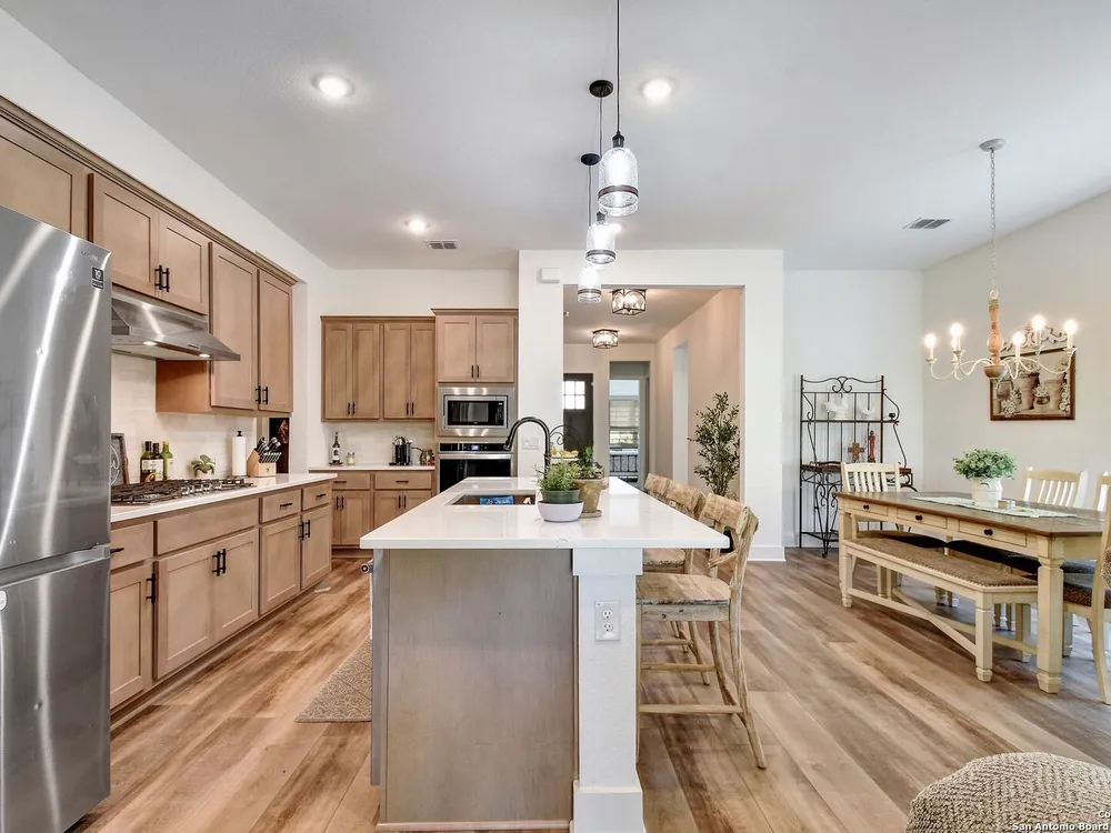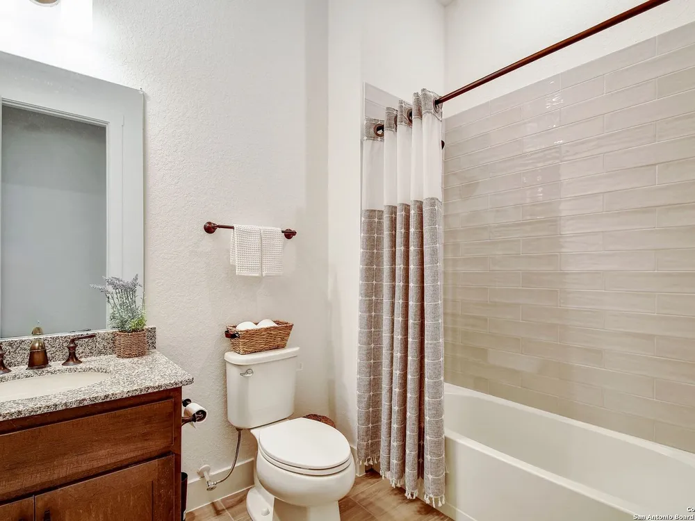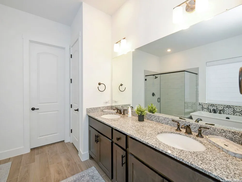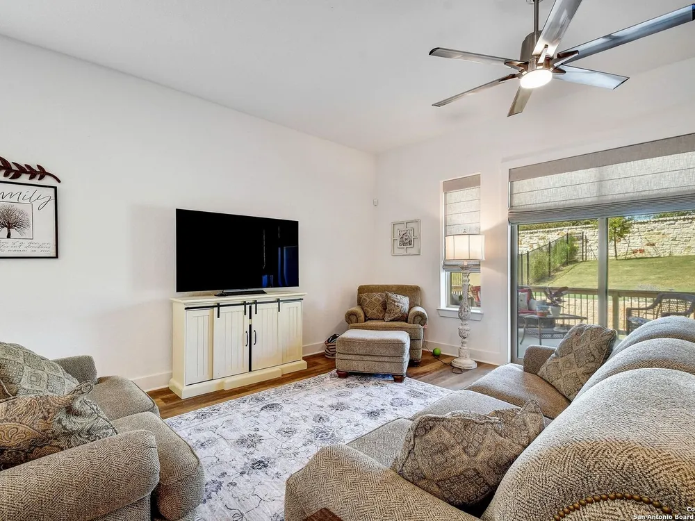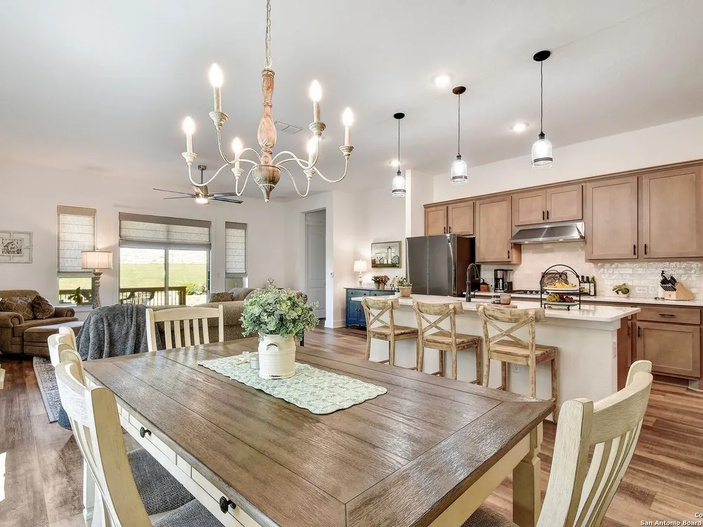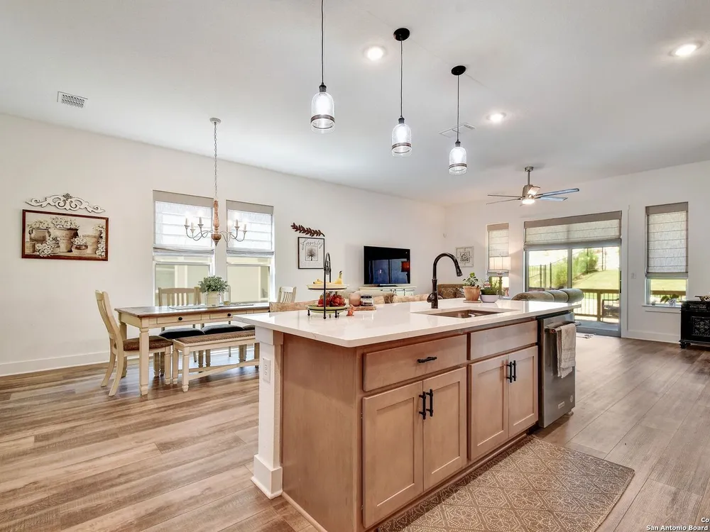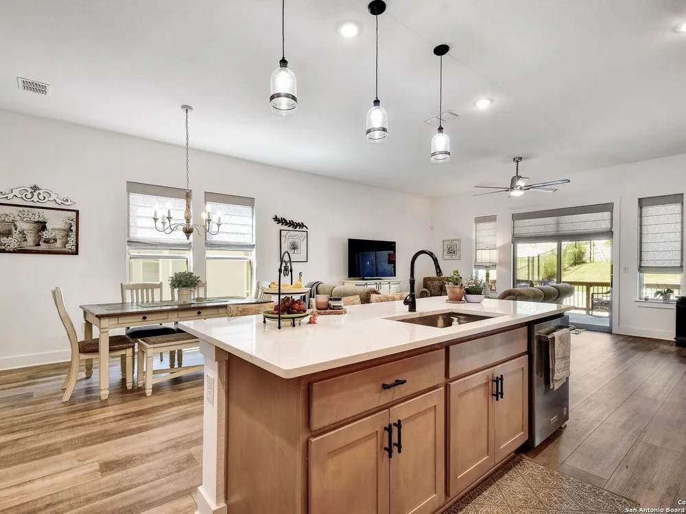 Move in and begin your next chapter in this practically brand-new, single-story home, built in 2023, and located just steps from the amenity center of a premier 55+ community in Boerne, TX. This 1,873-square-foot residence offers a low-maintenance lifestyle with luxurious modern features and the convenience of resort-style living right outside your front door. Why wait to build when you can own this stunning, turn-key home, perfect for a quick and stress-free closing process? This home showcases a contemporary, single-level floor plan with two spacious bedrooms and two full baths. The stylish eat-in kitchen is equipped with high-end stainless steel appliances, pristine quartz countertops, and a large island for casual dining or entertaining guests. The owner's suite features a private bath with a double vanity and a sizable walk-in closet, providing a serene retreat. The home's prime location offers unparalleled access to the community's exclusive amenities, including the clubhouse, fitness center, multiple sport courts and pool. Enjoy an extensive calendar of social events and activities planned by a lifestyle director. Located minutes from Boerne's historic Main Street, you'll have boutique shopping and highly-rated dining at your fingertips.