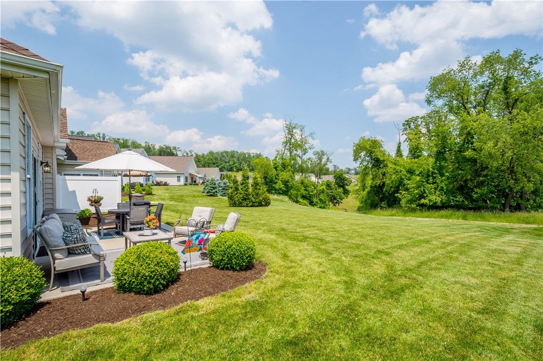 This desirable property is located in Traditions of America’s 55+ community in Ohio Twp offering a 4,500 SF clubhouse w/ a heated pool, fitness center & sports bar. A cheerful sun-splashed open concept floor plan w/ soaring ceilings. Picture perfect lot w/ amazing views of a park like backyard & a treetop skyline, your own private escape. The gallery foyer makes a stunning first impression w/ its impressive tray ceiling, elegant wainscoting & entry door w/ sidelight. Anchored by a massive center island, the awe inspiring kitchen opens seamlessly into a gathering room. The main floor laundry adds a touch of step saving convenience. The owner’s wing boasts an en-suite bath w/ a double bowl vanity, tiled backsplash, easy access tiled shower, walk in closet & charming window seat. A spacious storage room w/ an easy access staircase through the level entry garage. Surrounded by manicured grounds, the current owners are conveying a turn key property w/ flawless indoor & outdoor space.