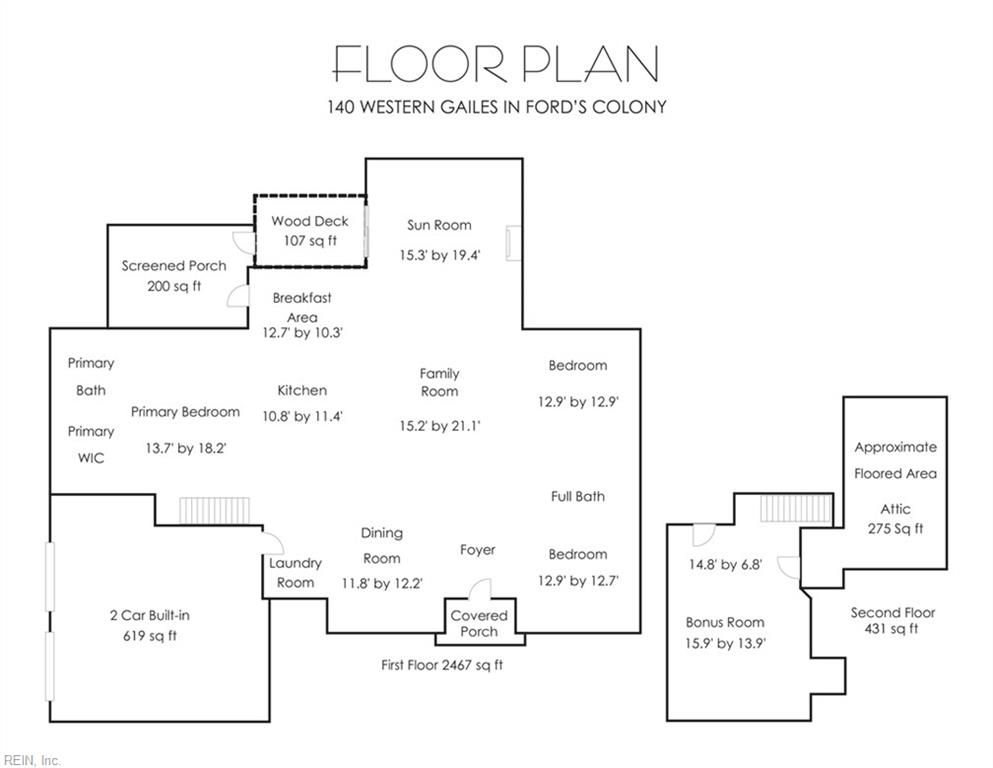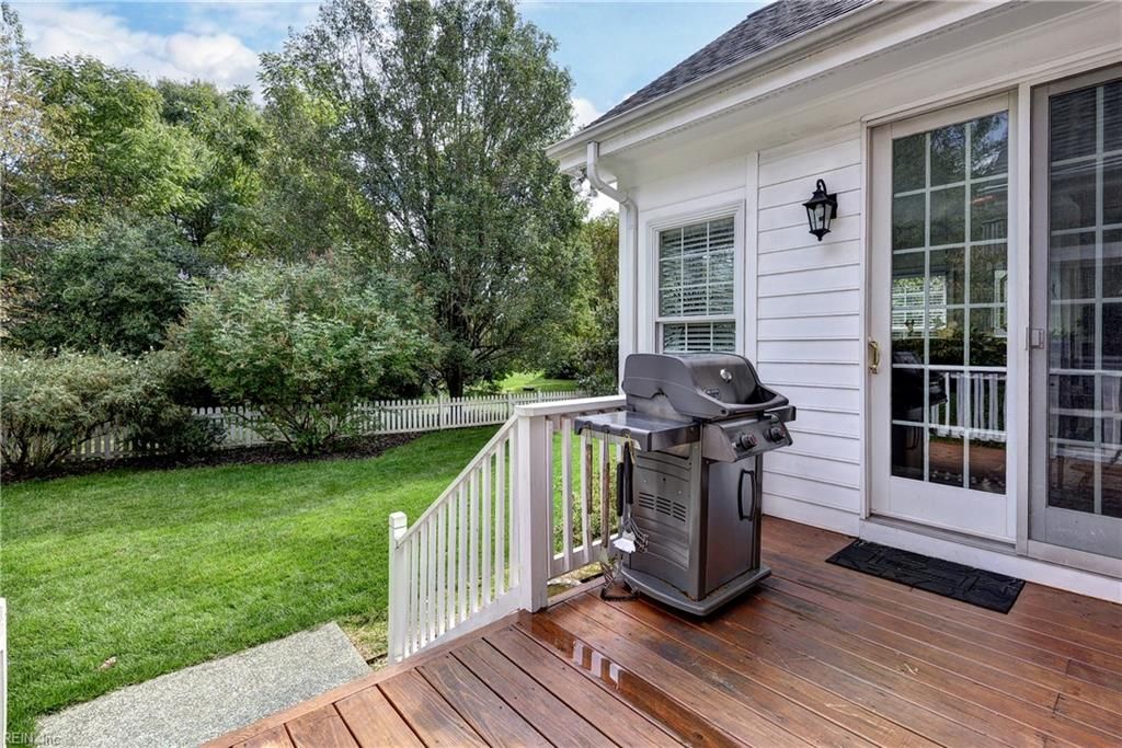 This beautiful all-brick rancher located in the sought-after Western Gailes section of Ford’s Colony offers effortless first-floor living on a private, level fenced lot. The 2,898-square-foot home features three first-floor bedrooms plus a spacious bonus room over the garage. Hardwood floors flow throughout the main level, where a welcoming family room with built-ins opens to a light-filled sunroom with a gas fireplace. The kitchen offers granite counters, gas cooking, stainless appliances and a pantry, while the bright breakfast area opens to a fabulous screened porch and deck overlooking the private fenced backyard. A formal dining room, accessed through pocket French doors, provides elegant entertaining space. The primary suite includes a large walk-in closet and en suite bath, while two guest bedrooms share a tiled full bath. Additional highlights include a 2023 HVAC and natural gas line for grilling.