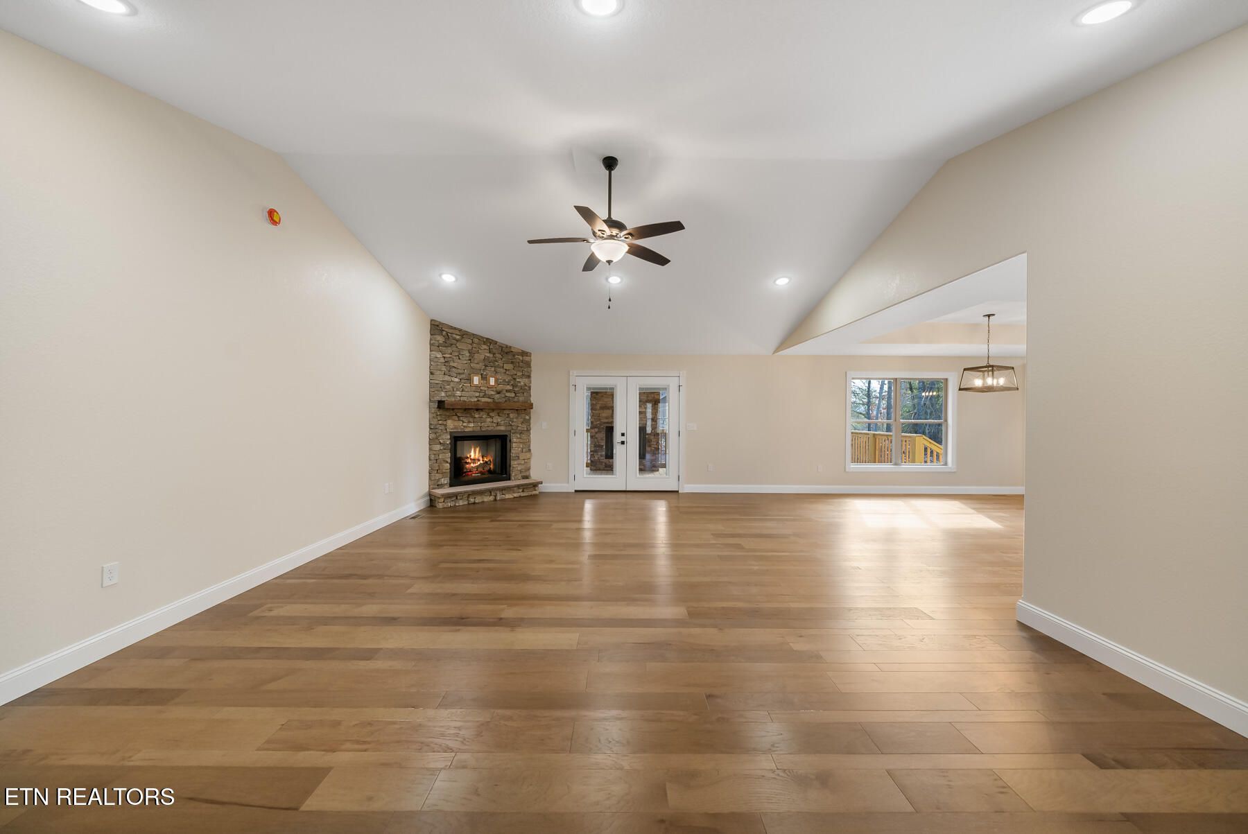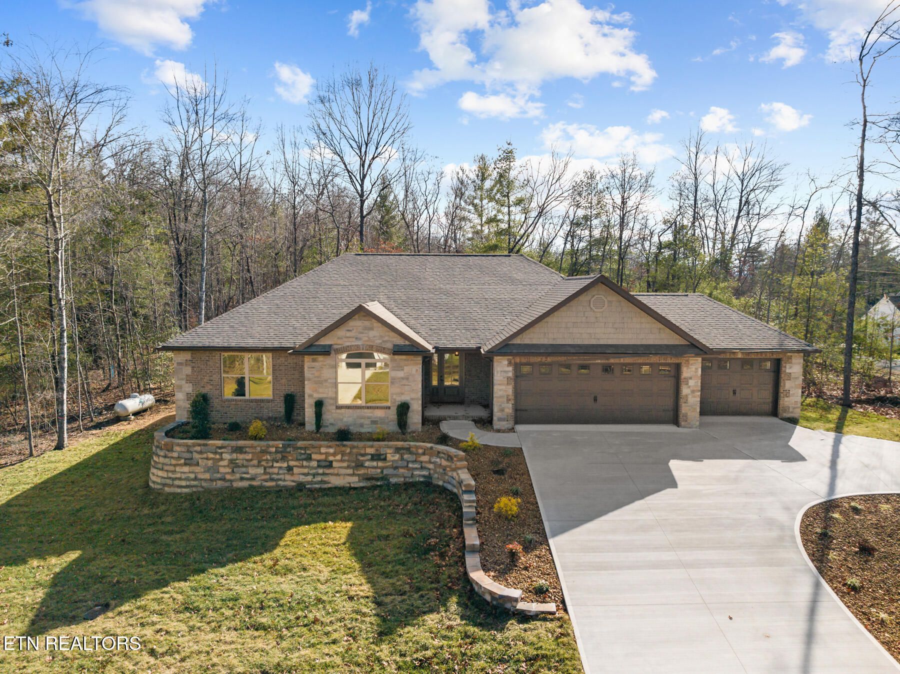 Price has been improved on this absolutely incredible new construction home situated on two combined lots (just one HOA Fee) totaling nearly half an acre with enough room to have a wooded buffer surrounding the sides and back of the home. This is an extremely popular open floor plan that offers a nice foyer entry area and a much larger living area compared to traditional floor plans this size. And wait until you see the garage!!!! Wow - the 2-car garage is a full 25 feet deep, so it will accommodate just about any vehicle you own. The 3rd one car bay is 22 feet and with the circular dive, you can come out of any bay and easily navigate getting out on the road. Beautiful brick and stone front combination really sets this home apart. And the kitchen - absolutely gorgeous with a gas cook top, built in appliances, nice sized pantry with a barn style door, and an island overlooking the dining and living areas. The builder puts in so much that most builders charge an upgrade for. Features include an 18' garage door, On Demand Water Heater, Encapsulated Crawl Space, Upgrade Trim Package, 2nd Fireplace on the Pine Tongue and Groove trimmed screened porch, hardwood throughout the home (no carpet whatsoever), and a Master Bath you'll love with his and her Walk-In closets and gorgeous double vanity and Custom Tile Shower.