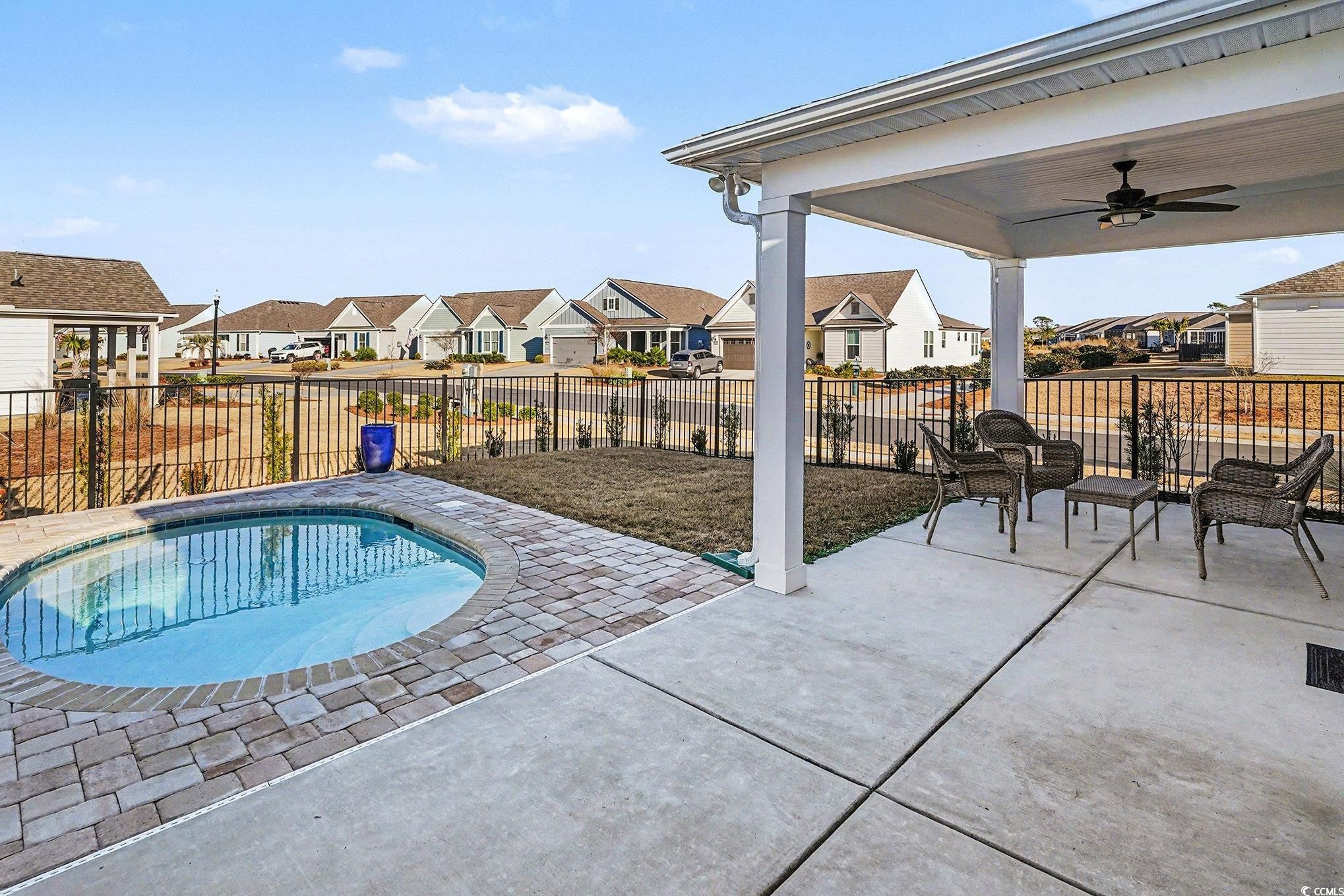PRICE REDUCTION - MOTIVATED SELLERS!! You truly can have it all at Del Webb North Myrtle Beach. Welcome to a beautifully maintained home in one of the area’s premier 55+ active adult, golf-cart-friendly communities, where resort-style amenities and a vibrant lifestyle come together to help you live life to the fullest. Del Webb North Myrtle Beach offers an exceptional amenity experience, including a zero-entry resort-style pool, a 12,000-square-foot clubhouse, state-of-the-art fitness center, indoor lap pool, and dedicated craft room. Enjoy friendly competition on the pickleball and bocce courts, practice your short game on the putting green, and stay socially connected with a full calendar of clubs and activities curated by a full-time Lifestyle Director. Now introducing this move-in-ready residence, which is situated on a premium fenced corner lot, is thoughtfully designed with an open-concept floor plan featuring two spacious bedrooms plus a flexible third room, currently utilized as a stylish home office. The heart of the home is the inviting kitchen, complete with granite countertops, integrated appliances, a generous pantry, and bar-height seating that seamlessly connects to the living and dining areas. The primary suite provides a peaceful retreat with a ceiling fan, a private en-suite bathroom that features a tiled walk-in shower and dual sinks. Step outside from the living room to your covered porch, fenced backyard, and private saltwater pool, creating the ideal setting for relaxing or entertaining in your own coastal oasis. For added comfort and convenience, a motorized garage screen keeps the space cool and bug-free, perfect for hobbies or projects. Front yard lawn care, cable TV, high-speed internet, and full access to all community amenities are included in the low monthly HOA fees, allowing for truly carefree living. Enjoy a luxury coastal lifestyle where every detail is designed for comfort, connection, and convenience. Whether you’re seeking an active, social community or a peaceful retreat close to the beach, this exceptional home delivers it all in one of North Myrtle Beach’s most desirable locations. Schedule your private showing today and start living the Del Webb lifestyle.