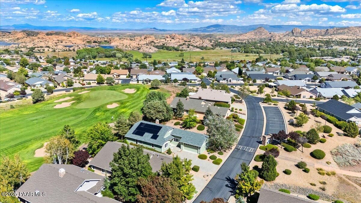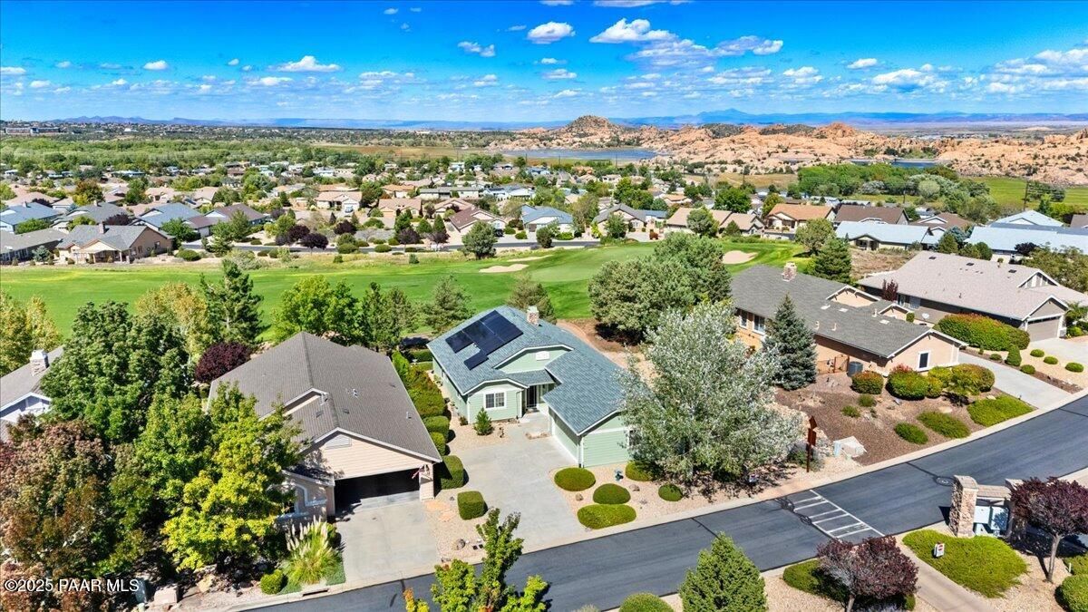 Wake up to PANORAMIC VIEWS of the meticulously manicured fairways and lush rolling greens right in your backyard. The gated community of The Cottages offers a resort like atmosphere with all of the amenities Prescott Lakes has to offer. This lovely single level homes has been beautifully appointed with LPV and tile flooring. Upgraded baths, plantation shutters throughout, new baseboards, fireplace and new kitchen appliances. 2 spacious bedrooms plus an office/library which could be an additional bedroom. 2 year old AC. Solar panels are owned. Re-circulation hot water pump. New roof in 2022. Prescott Lakes offers first class amenities; Hale Irwin designed golf course, gorgeous clubhouse, fitness center, indoor and outdoor pools, tennis and pickleball courts, restaurant. Great location near shopping and hiking trails. Ideal for full time or part time living
