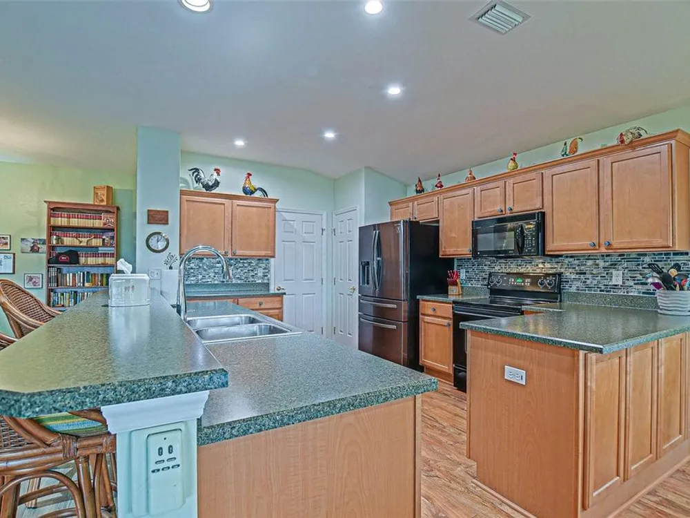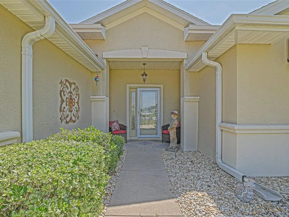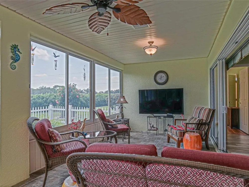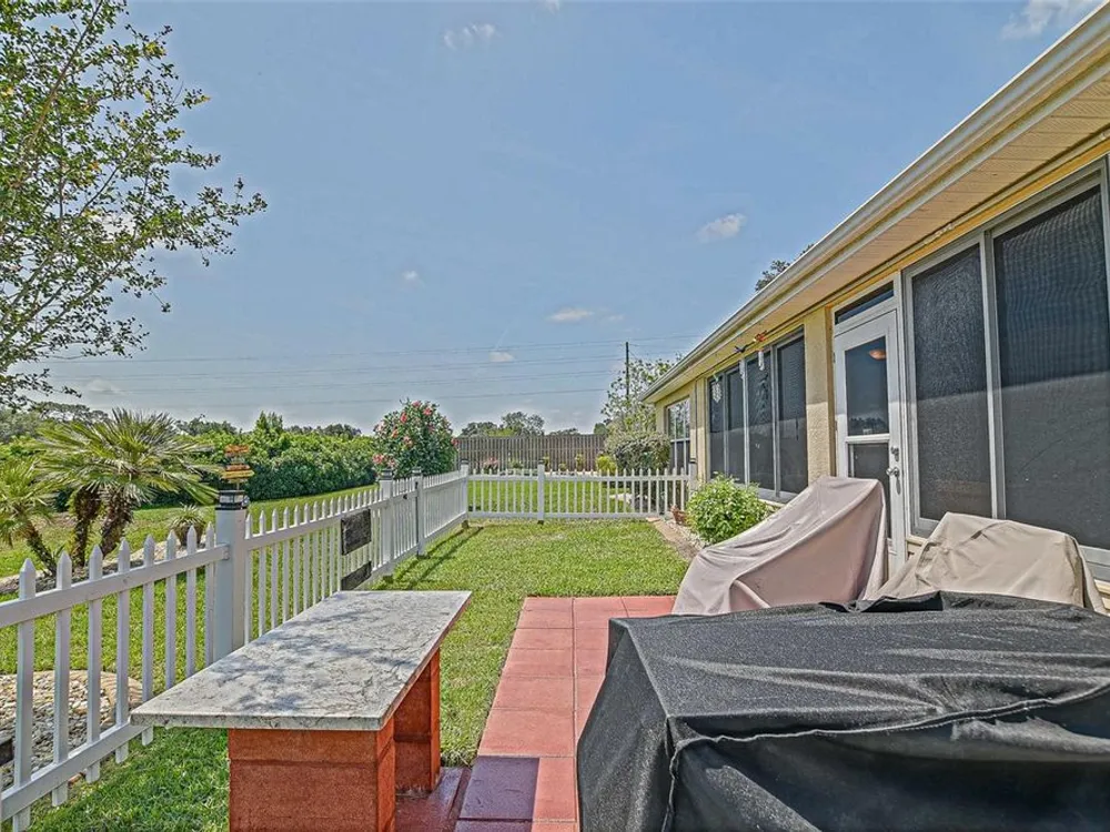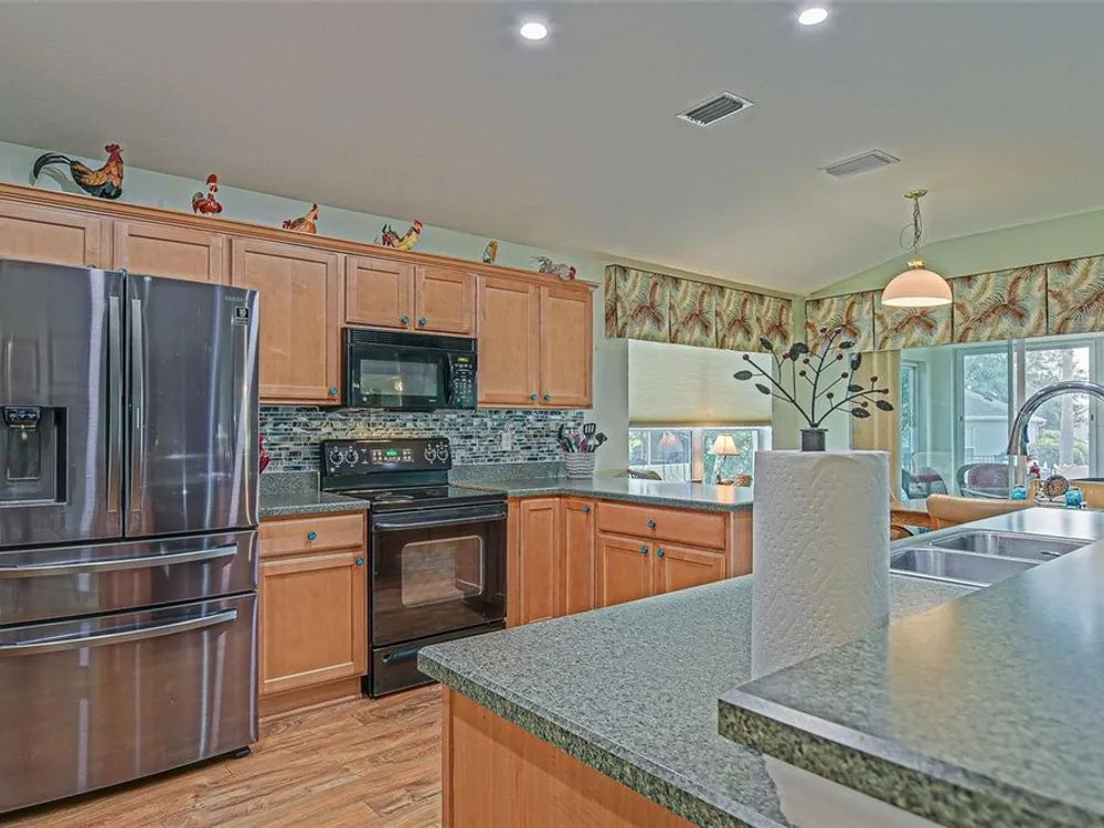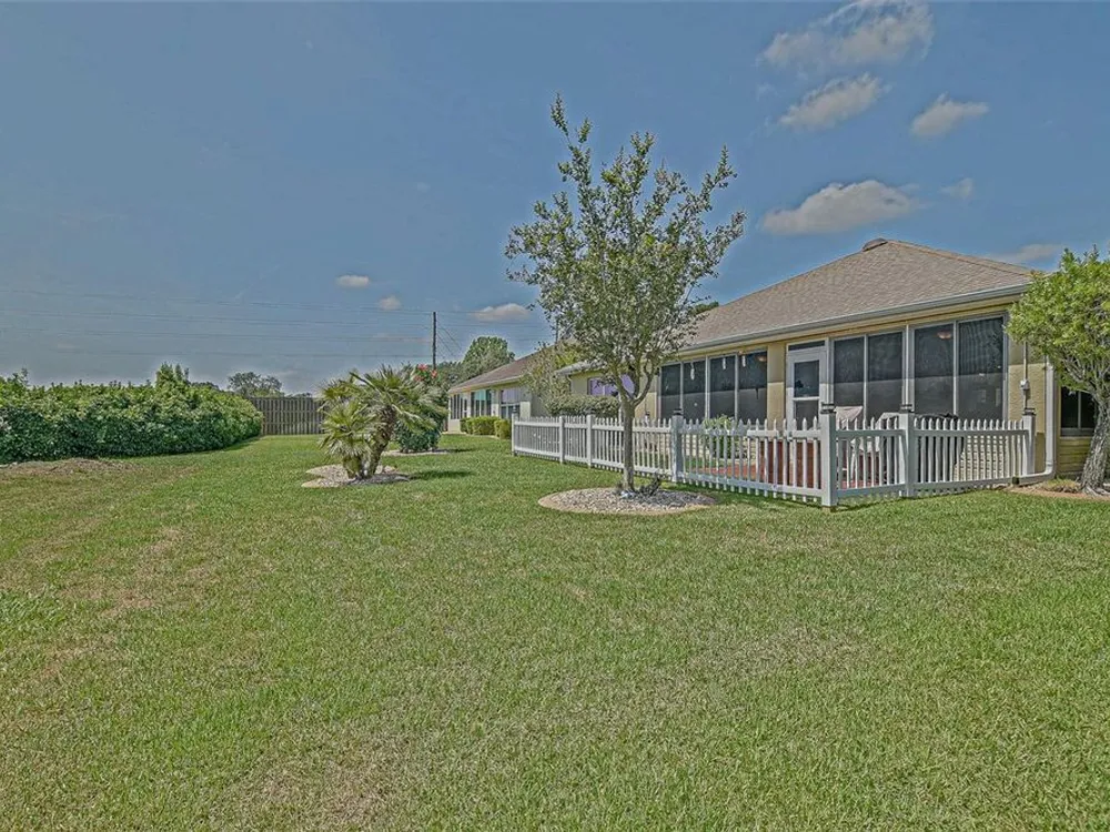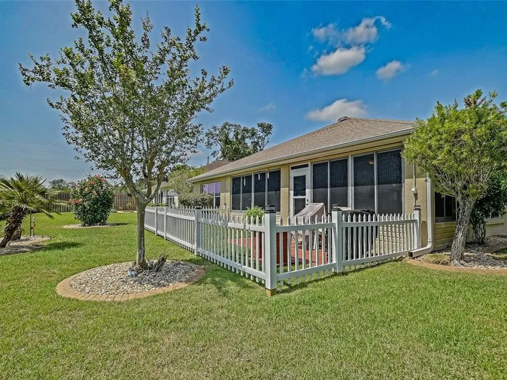 Wonderful Elkridge model located on a cul-de-sac 3 bedroom and 2 bath open floor plan on a semiprivate serene lot, centrally located in the community. Enclosed lanai is under heat and air for year-round use adding an extra 280 sq ft of living space (not included in heated sq footage ) . Backyard has a fenced area for your pet. Upgraded Maple cabinets with newer appliances. Inside laundry. No carpet in the house, either luxury vinyl laminate or ceramic tile. Roof re-shingled 2021 and HVAC replaced 2019. and so much more! Wonderful home in a superb location.