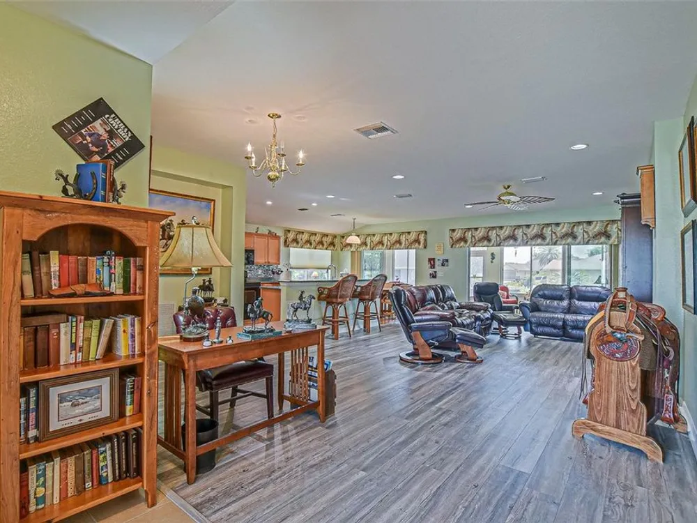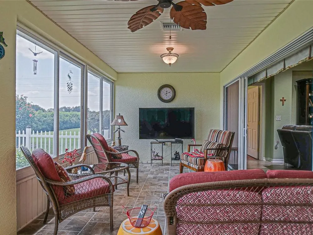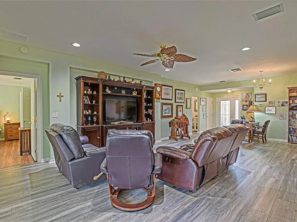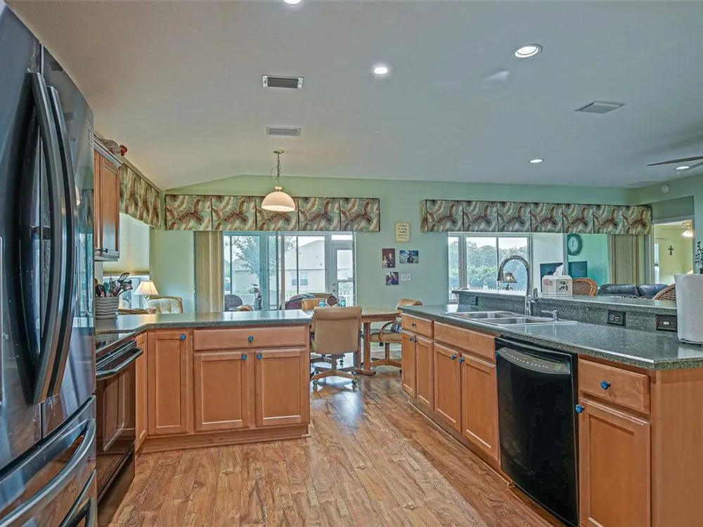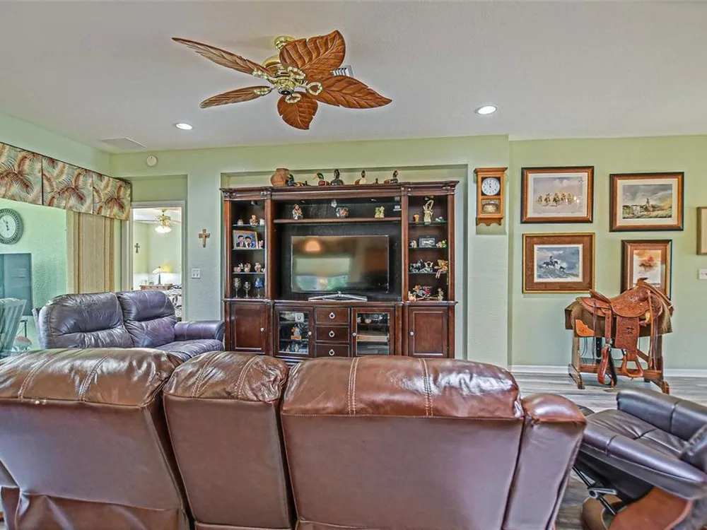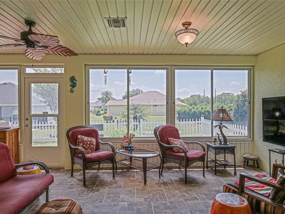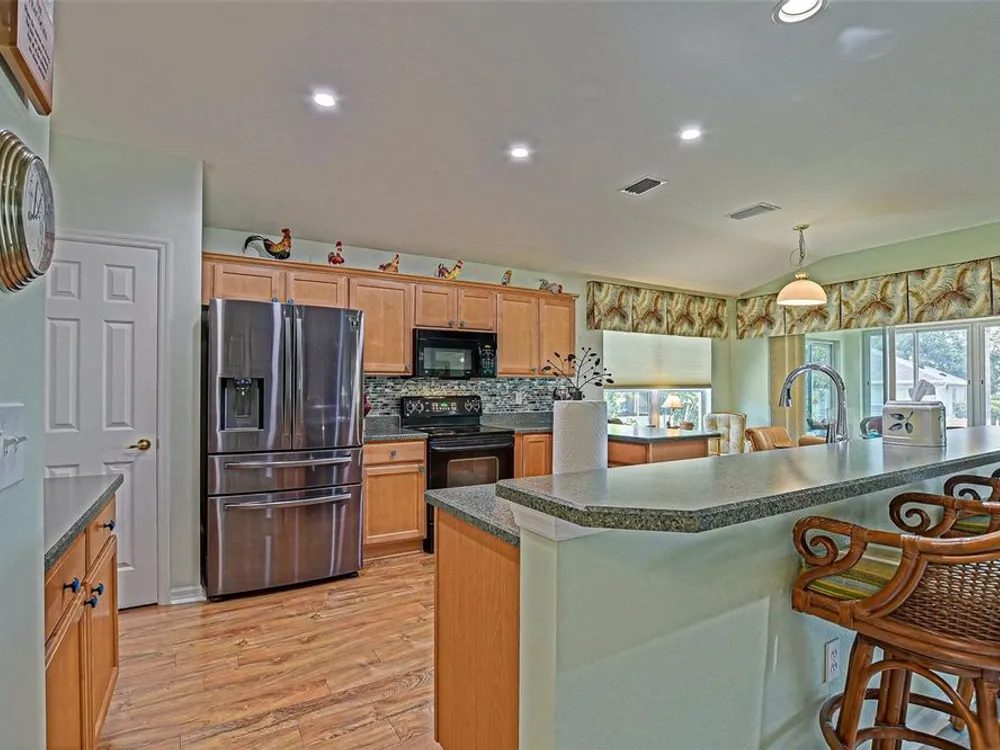 Wonderful Elkridge model located on a cul-de-sac 3 bedroom and 2 bath open floor plan on a semiprivate serene lot, centrally located in the community. Enclosed lanai is under heat and air for year-round use adding an extra 280 sq ft of living space (not included in heated sq footage ) . Backyard has a fenced area for your pet. Upgraded Maple cabinets with newer appliances. Inside laundry. No carpet in the house, either luxury vinyl laminate or ceramic tile. Roof re-shingled 2021 and HVAC replaced 2019. and so much more! Wonderful home in a superb location.