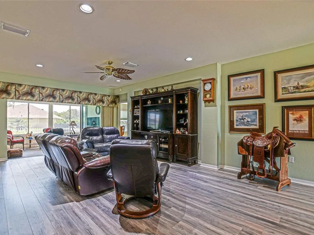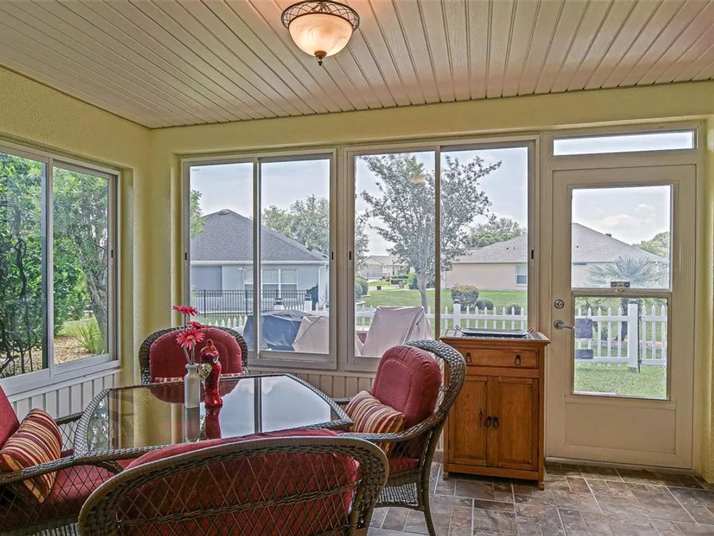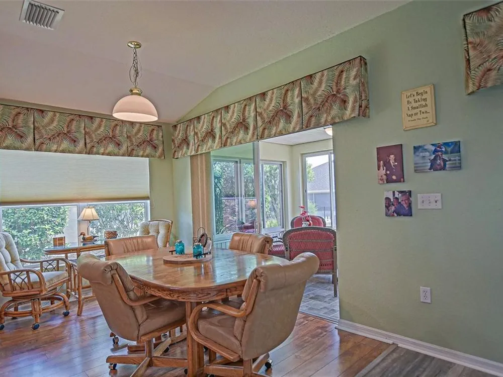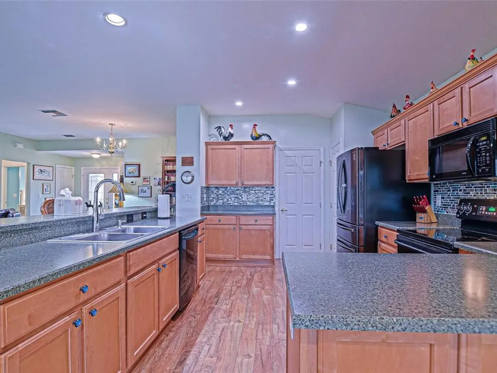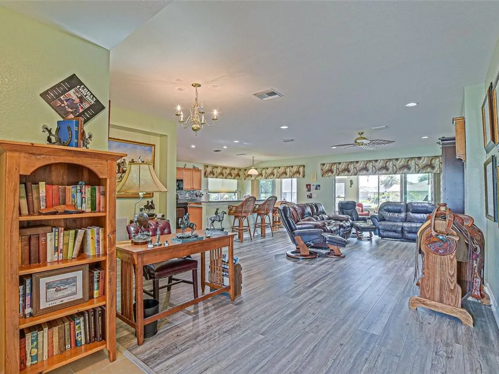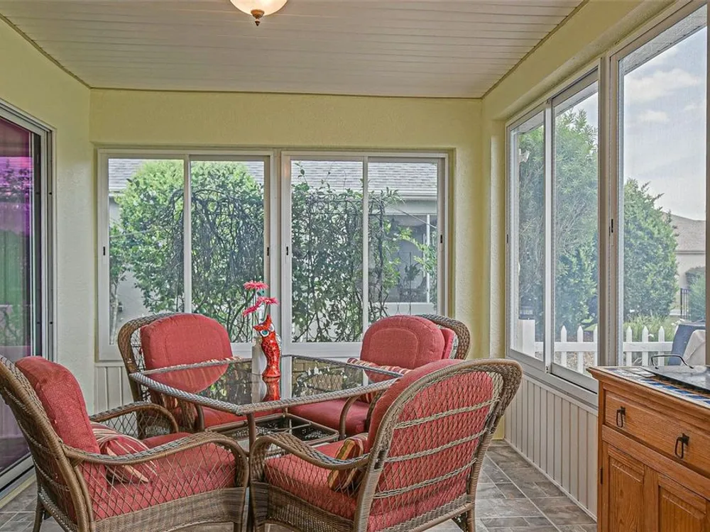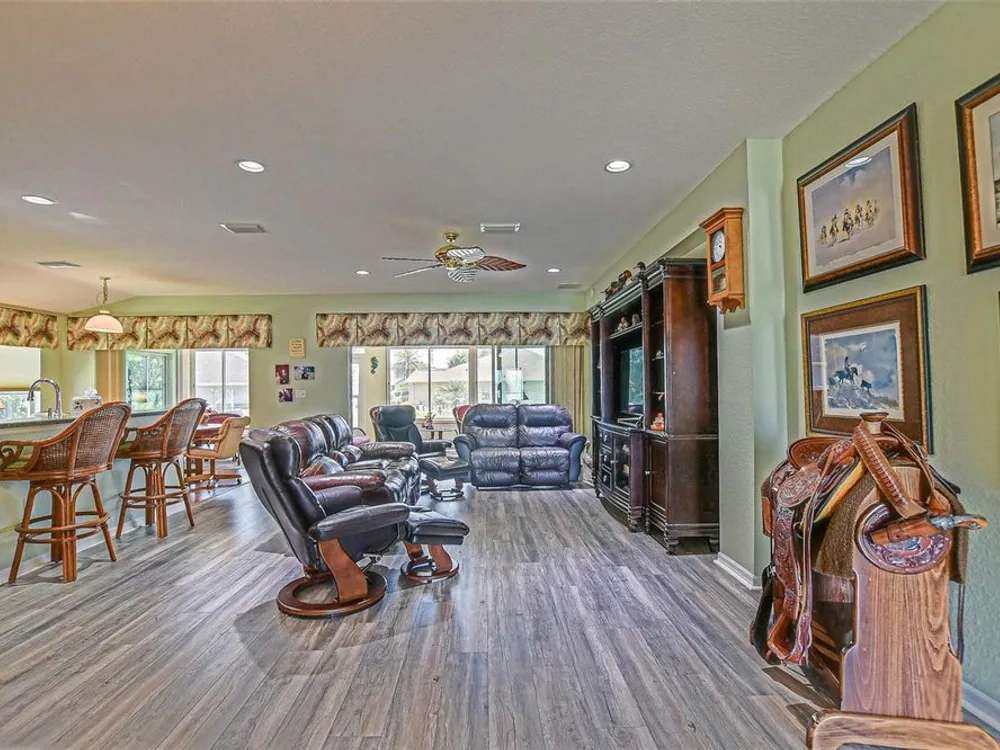 Wonderful Elkridge model located on a cul-de-sac 3 bedroom and 2 bath open floor plan on a semiprivate serene lot, centrally located in the community. Enclosed lanai is under heat and air for year-round use adding an extra 280 sq ft of living space (not included in heated sq footage ) . Backyard has a fenced area for your pet. Upgraded Maple cabinets with newer appliances. Inside laundry. No carpet in the house, either luxury vinyl laminate or ceramic tile. Roof re-shingled 2021 and HVAC replaced 2019. and so much more! Wonderful home in a superb location.