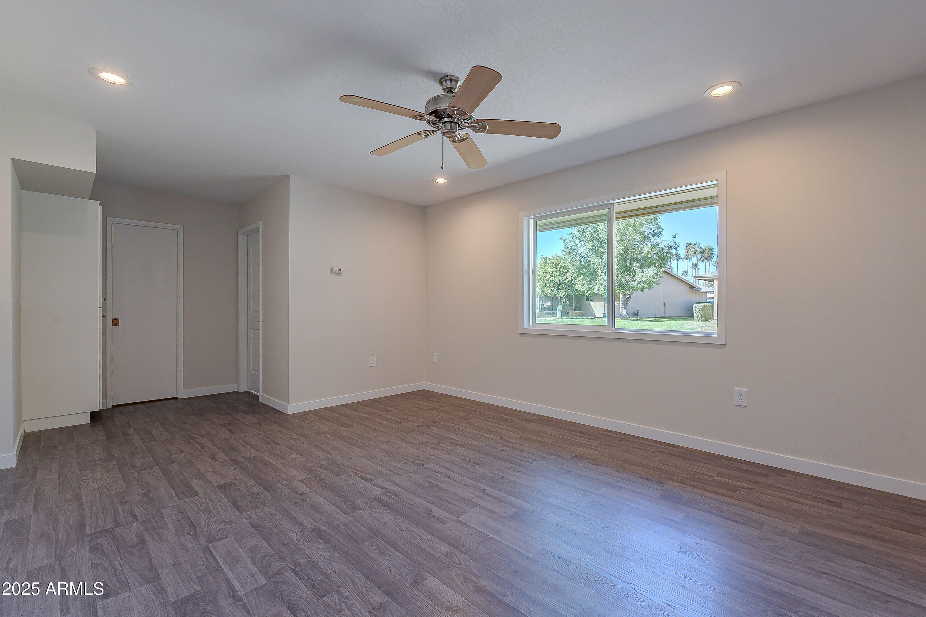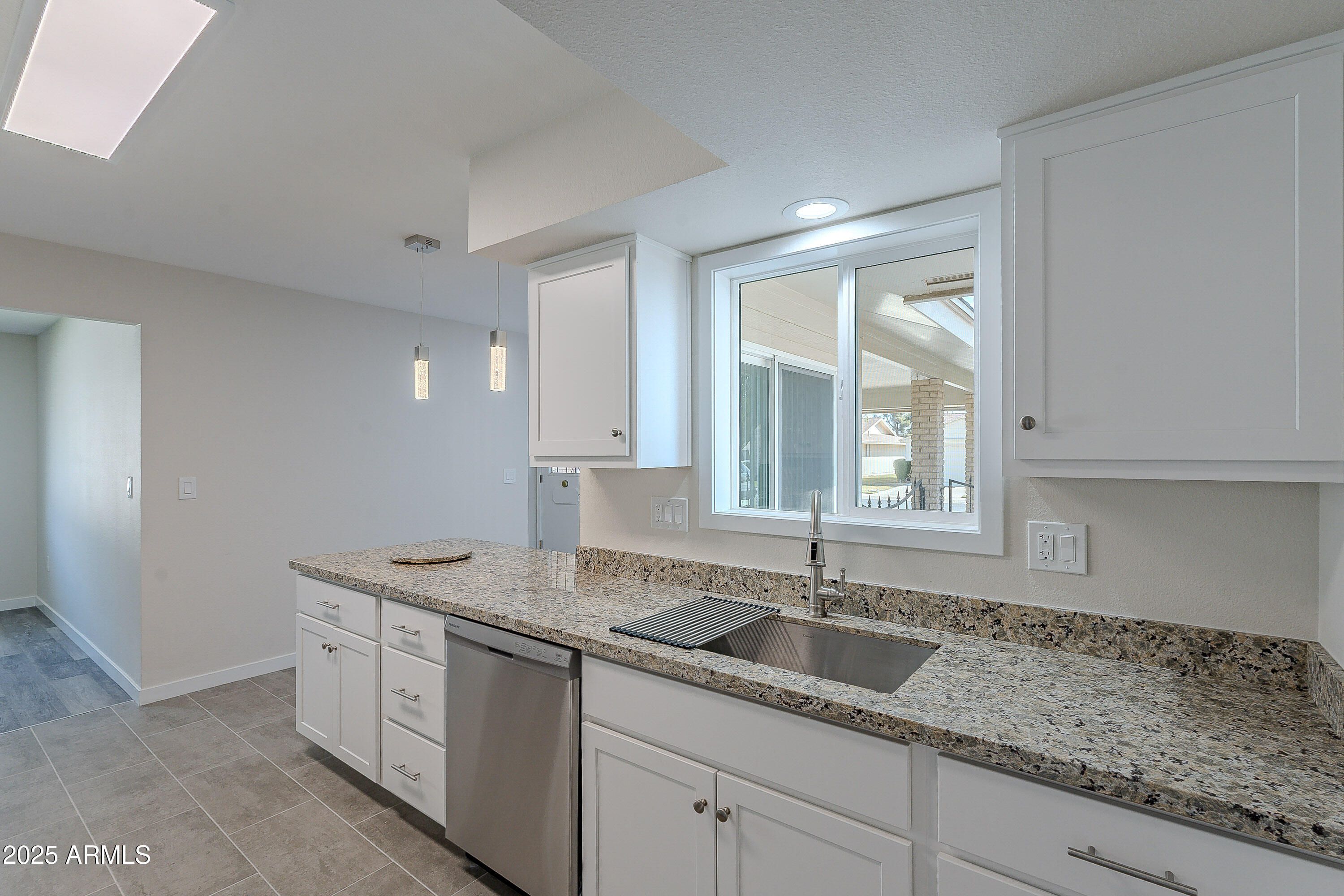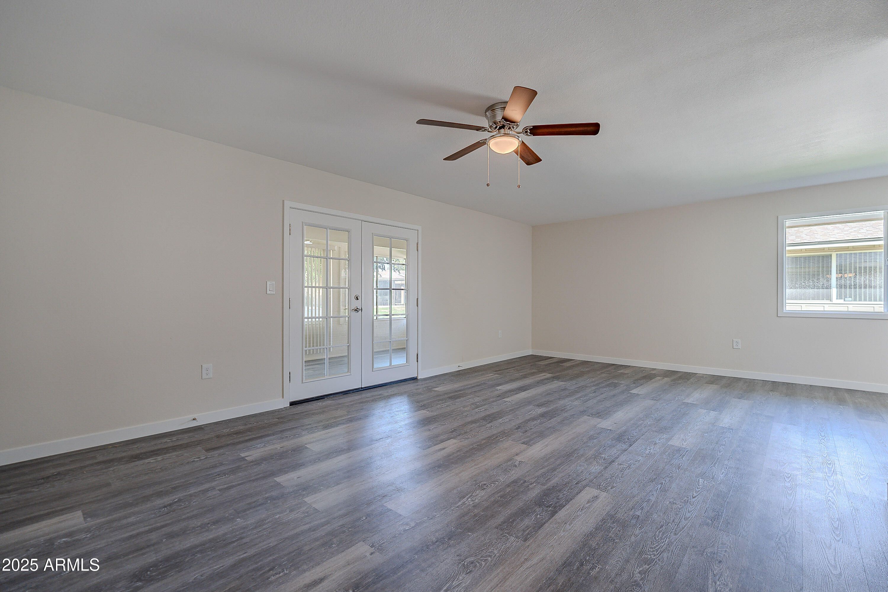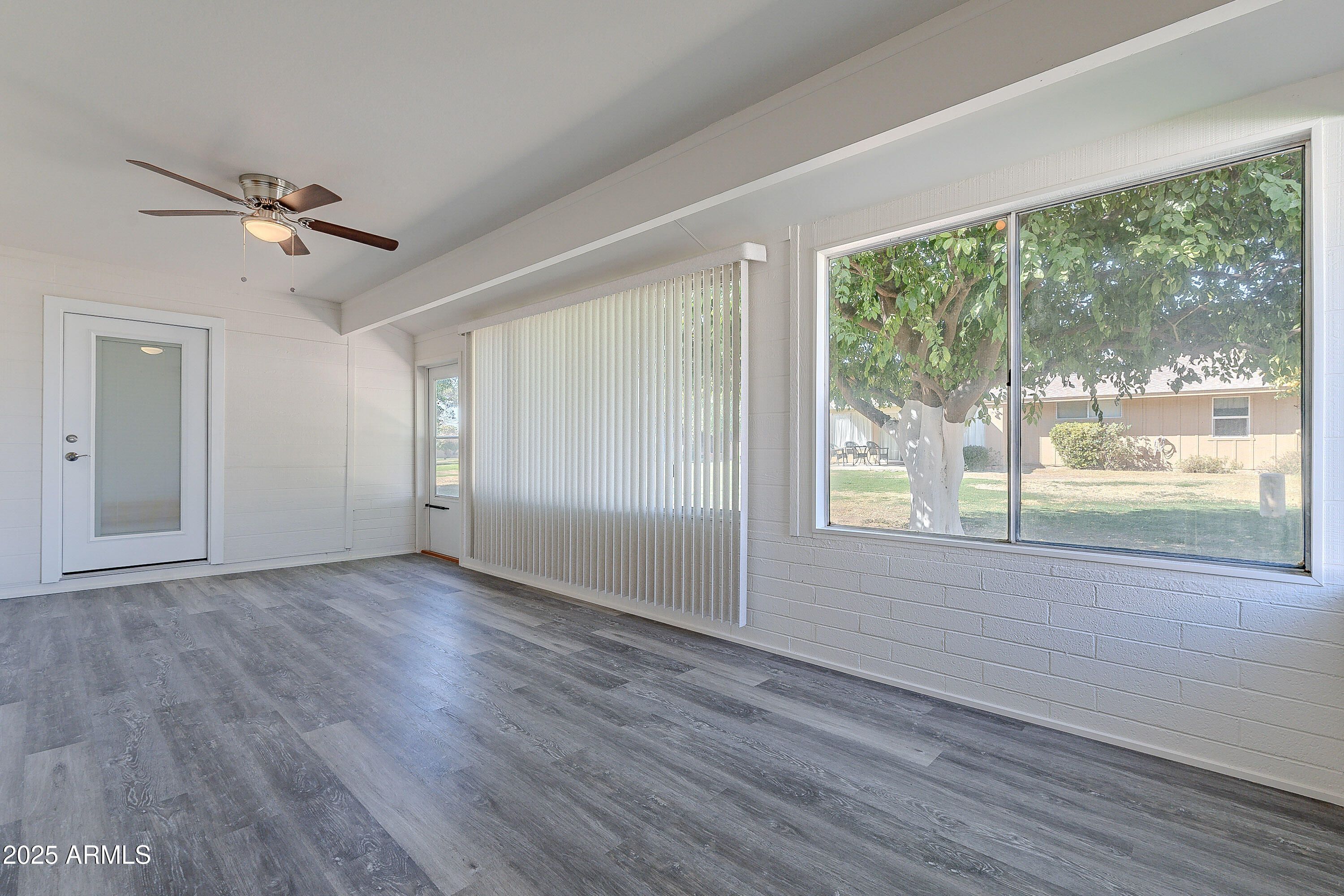 Welcome to the Coziest Home in Sun City! Wonderfully Updated: Enter into a Great Space for Entertaining in a Picturesque and Quiet neighborhood. Phenomenal Layout with an Eat-In Kitchen, Granite Counters, Newer Cabinets and Appliances (2024). Newer Windows (2024) including carving out a window (permitted) in the Main Bedroom for much needed natural light, and a Private Exit to the Expanded and Enclosed Arizona Room. Updated Bathrooms (2024), Newer Floors (2024), Lighting and Wiring (2024), Newer Doors (2024). NO popcorn ceiling. Indoor Laundry Room, and more. Prime location. Have a look for yourself!