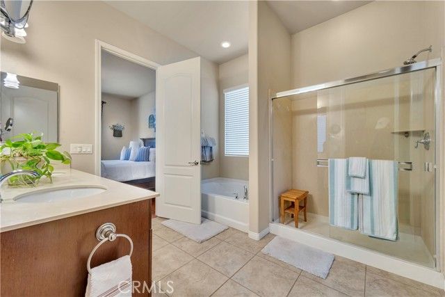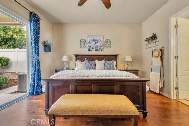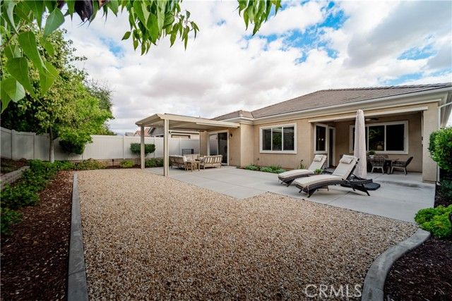 Located in the highly sought-after gated 55+ community of Solera at Rio Bravo, this stunning home features 3 spacious bedrooms, 2 full bathrooms, and a rare 3 car tandem garage. Enjoy an open concept layout with beautiful wood flooring, plantation shutters, and a gourmet kitchen with granite countertops, a breakfast bar, and a huge walk-in pantry with custom shelving. The primary suite offers private patio access, a large walk-in closet, and a large bathroom with dual vanities and a walk-in shower. Energy efficient upgrades include solar and a tankless water heater. The backyard is beautifully landscaped and features two covered patios perfect for relaxing or entertaining. Community amenities include a clubhouse, pool, spa, gym, and HOA covered trash service. This home is move in ready. Call for your appointment today!