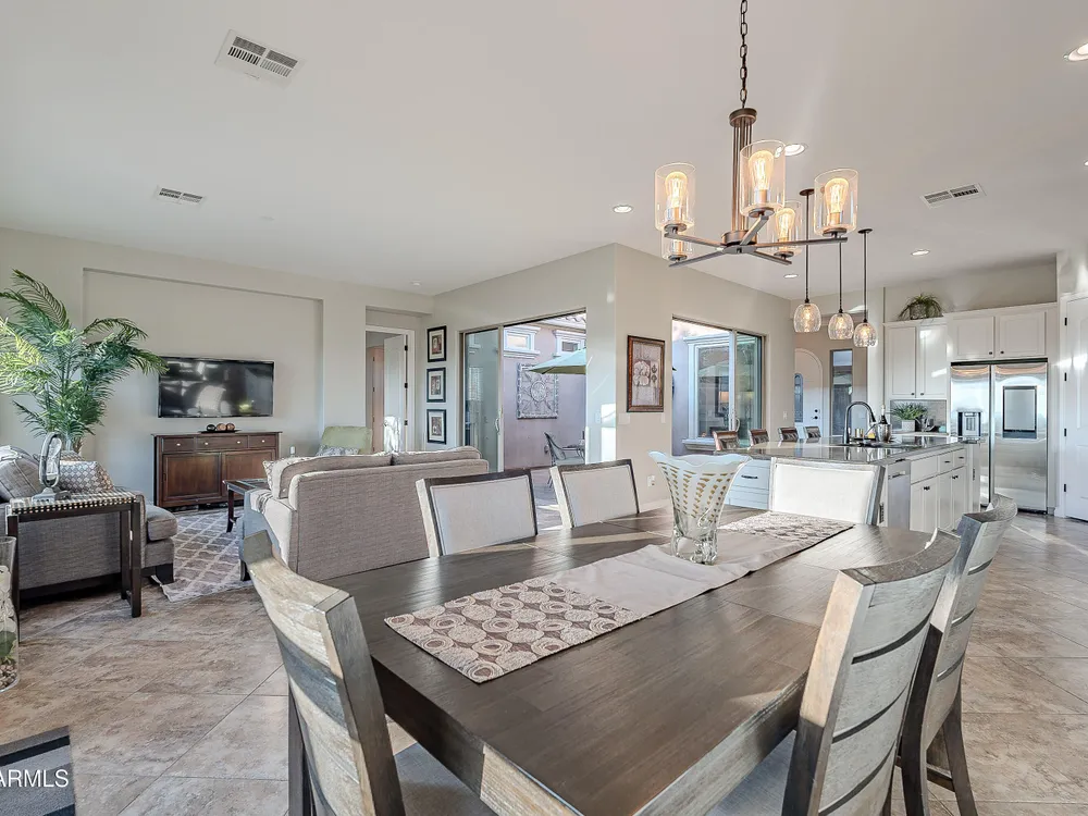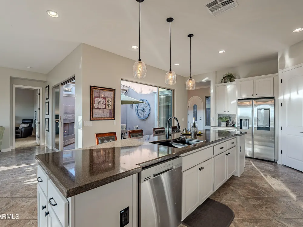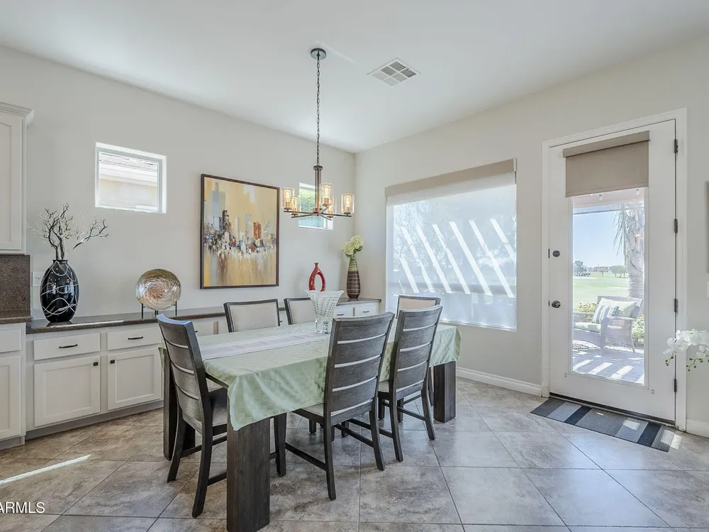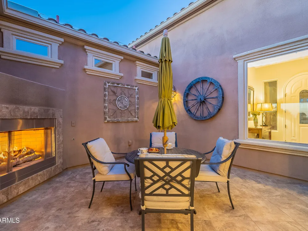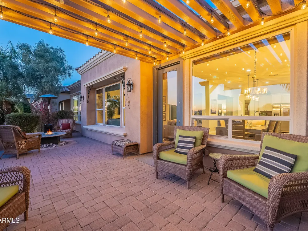This Positano floorplan home with 180-degree views from the 13th hole of Encanterra Country Club is for that discerning buyer who values the view, as this is one of the best in the community! This home has been updated with gorgeous, refinished cabinetry throughout the home, in a stylish warm greige tone. It also features brand new window treatments throughout the entire home. The large kitchen includes an oversized island, two rolling walls of glass to your private courtyard with gas fireplace, a den with French doors that can set up as a third bedroom, and a large smartspace laundry room with plenty of storage! & it's turn-key furnished! A golf membership can be purchased through the club at closing to forgo the waiting list! Also featuring Newer AC/Heat (2023) and newer.... hot water heater (2022). Arizona Living is Right Here Waiting for You!