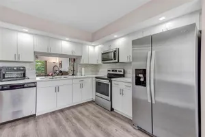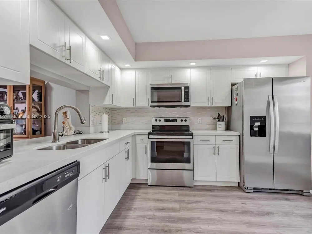 Beautifully updated & move-in ready 55+ 2/2! Modern shaker kitchen with stainless steel appliances & quartz counters, and matching baths, impact windows & accordion shutters. Convenient indoor washer/dryer. Relax with pool & garden views from your screened balcony w/extra storage. Building has reserves, no assessments, & passed milestone inspections. Financing with 5% down available for qualified buyers. Resort amenities—golf, theater, fitness, salon, courtesy bus—plus resident-only entrance and centrally located.