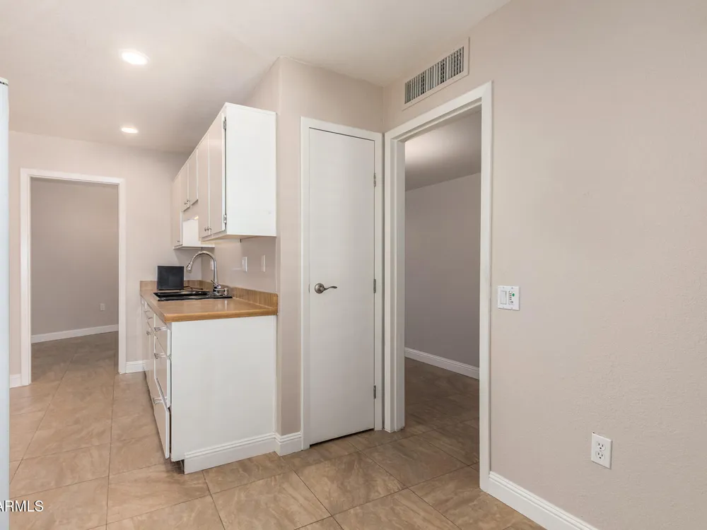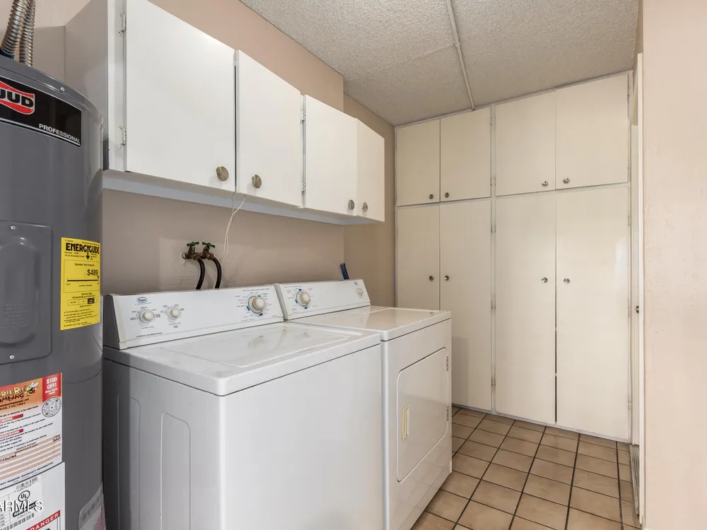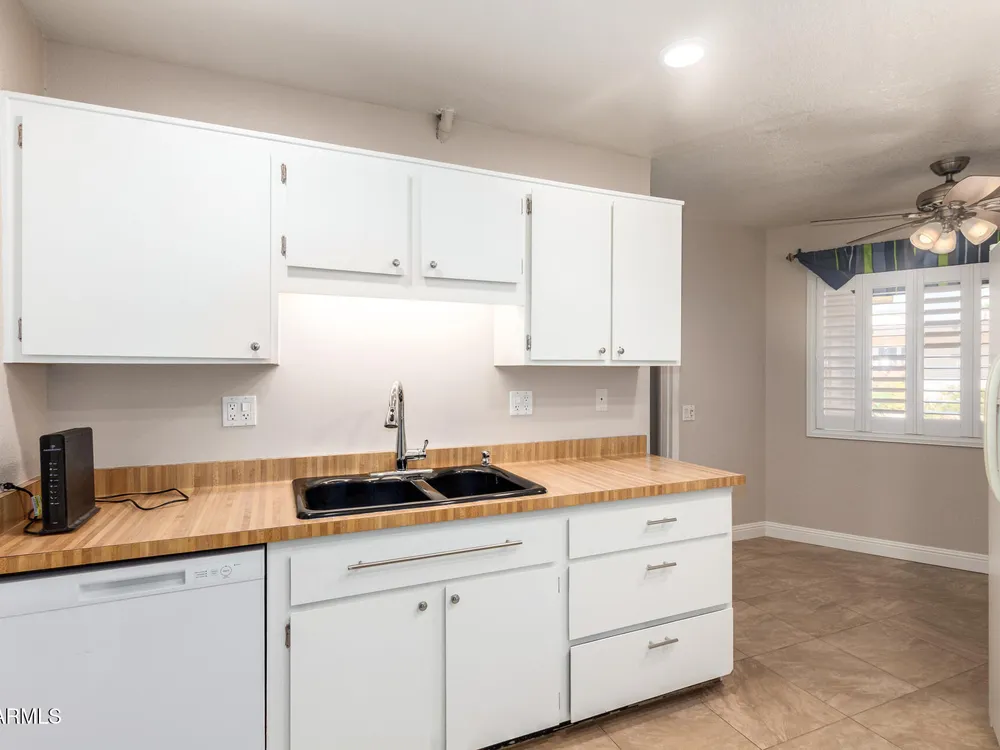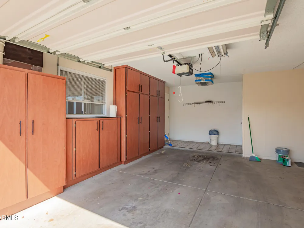 Bright, cheerful, and full of charm—this beautifully maintained Sun City condo has it all! Skylights flood the space with natural light, and the fully insulated Arizona sunroom offers the perfect spot for morning coffee or evening relaxation. You'll love the updated tile floors, 4'' baseboards, stylish lighting, and refreshed bathroom. Enjoy the convenience of inside laundry, newer dishwasher, and a bonus space ideal for an office or hobby room. Storage is plentiful with hallway closets, garage cabinets, and built-ins in the laundry room. Newer roof (2020) and exterior paint (2018).