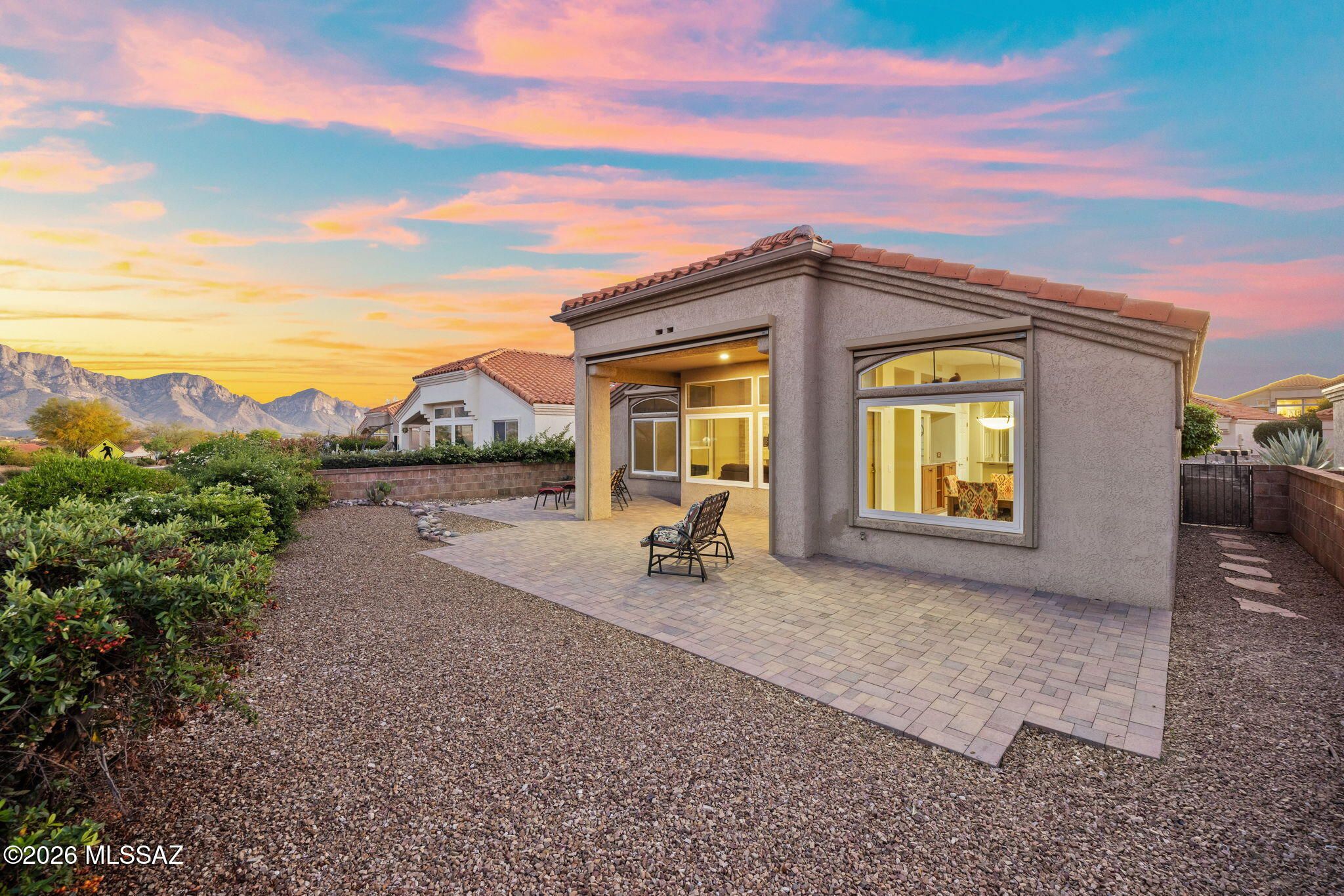 Bright & Beautiful Sun City Mariposa Model w/ Panoramic Catalina Mountain Views. This Top Quantity 2BR / 2 BA 1,190 sq. ft. home boasts Magnificent Catalina Mountain Views from the Family Room, Kitchen, Owner's Suite & Back Patio! Enter into the XL Living Room w/ a Gorgeous New Stack Stone Fireplace. The Living Room is Open to the Updated Kitchen w/ Breakfast Bar & Dining Area w/ Views. Owner's suite is large w/ an en-suite walk-in shower, dual sink vanity & walk-in closet w/ built-ins. Outdoors, relax & enjoy the Outstanding Views from the Covered Patio w/ new Paver Extension! New Roof 2022, New Windows & Slider 2025, New E-Blinds & Rolling Shutters 2025, HVAC 2016. Sun City Community Amenities: 18 Hole Golf Course, Pickleball, Pools, Tennis, Fitnes Ctr., Art Ctr., Clubs to Join & more!