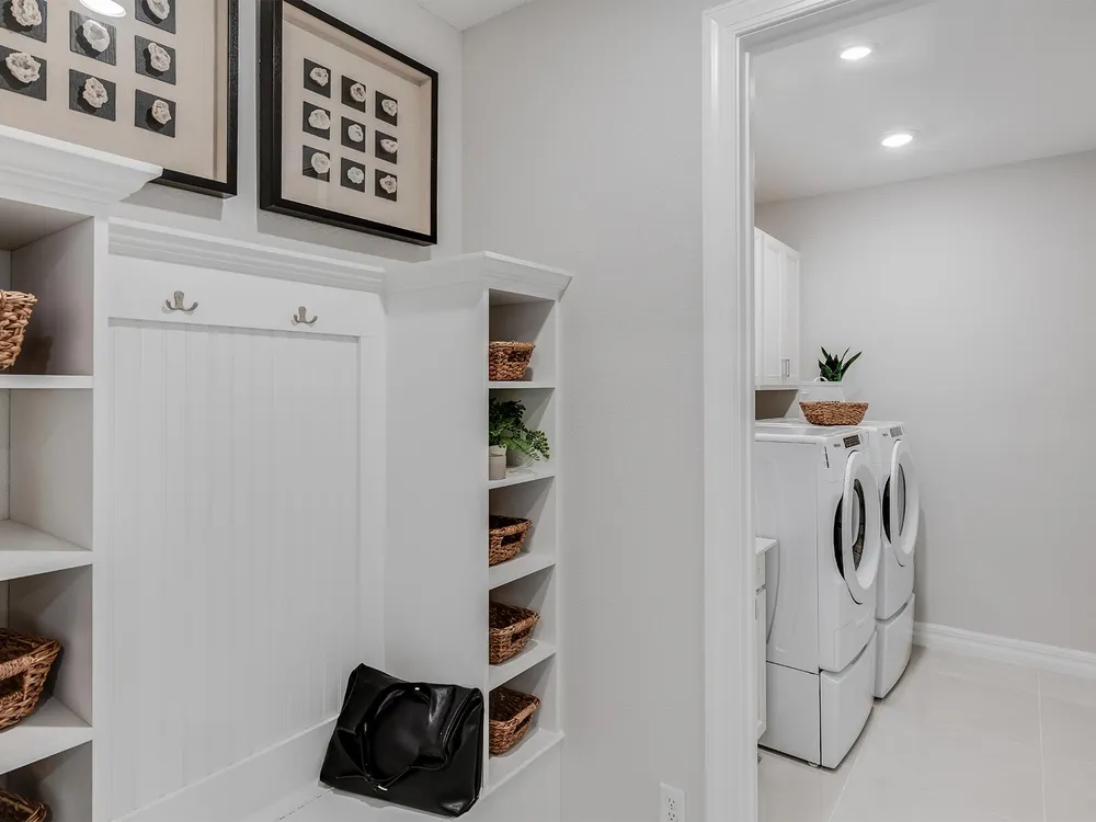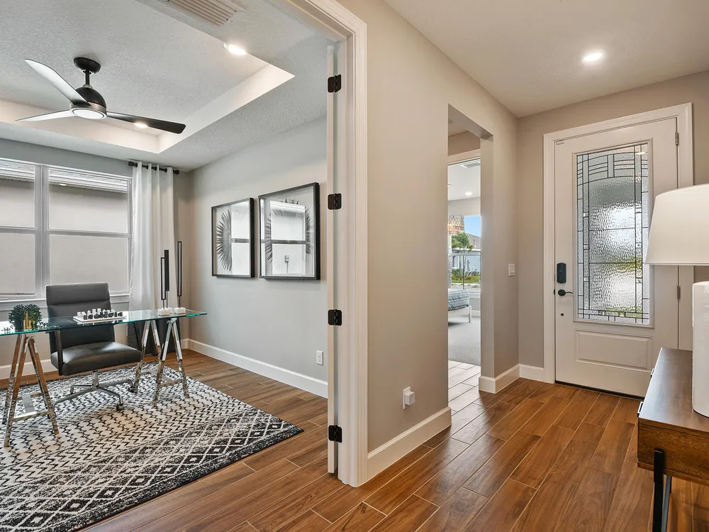- Entrance Foyer, Kitchen Island, Pantry, Split Bedrooms, Walk-In Closet(s), Home Office, Great Room, Storage, Family/Dining Room, Eat-in Kitchen, Impact Glass, Dual Sinks, Primary Downstairs