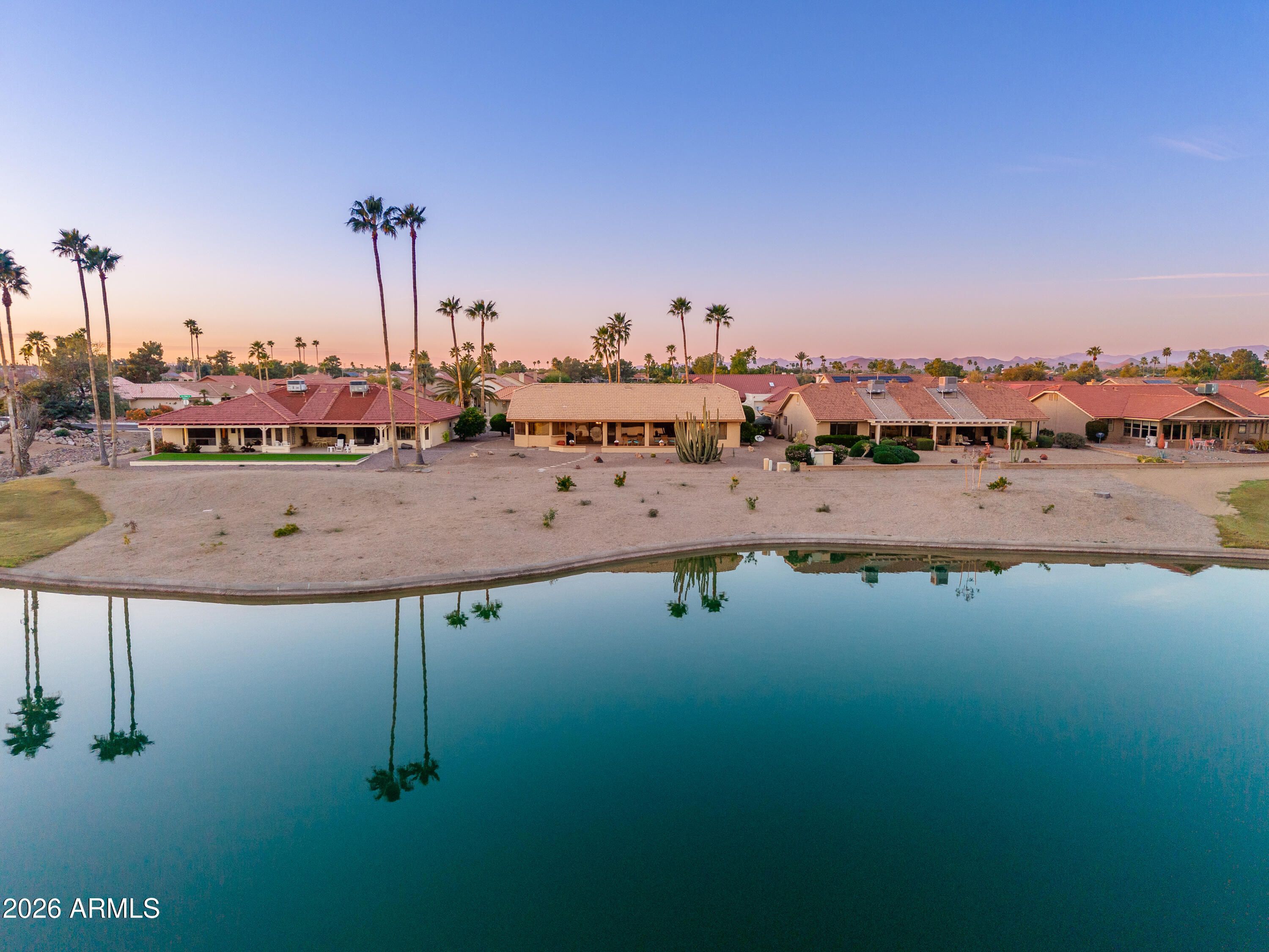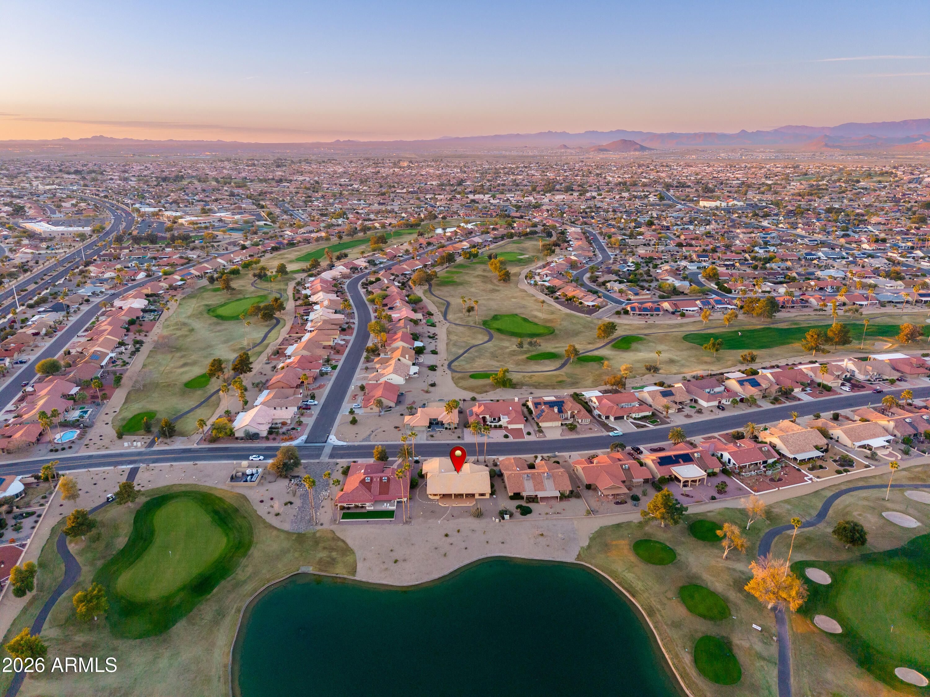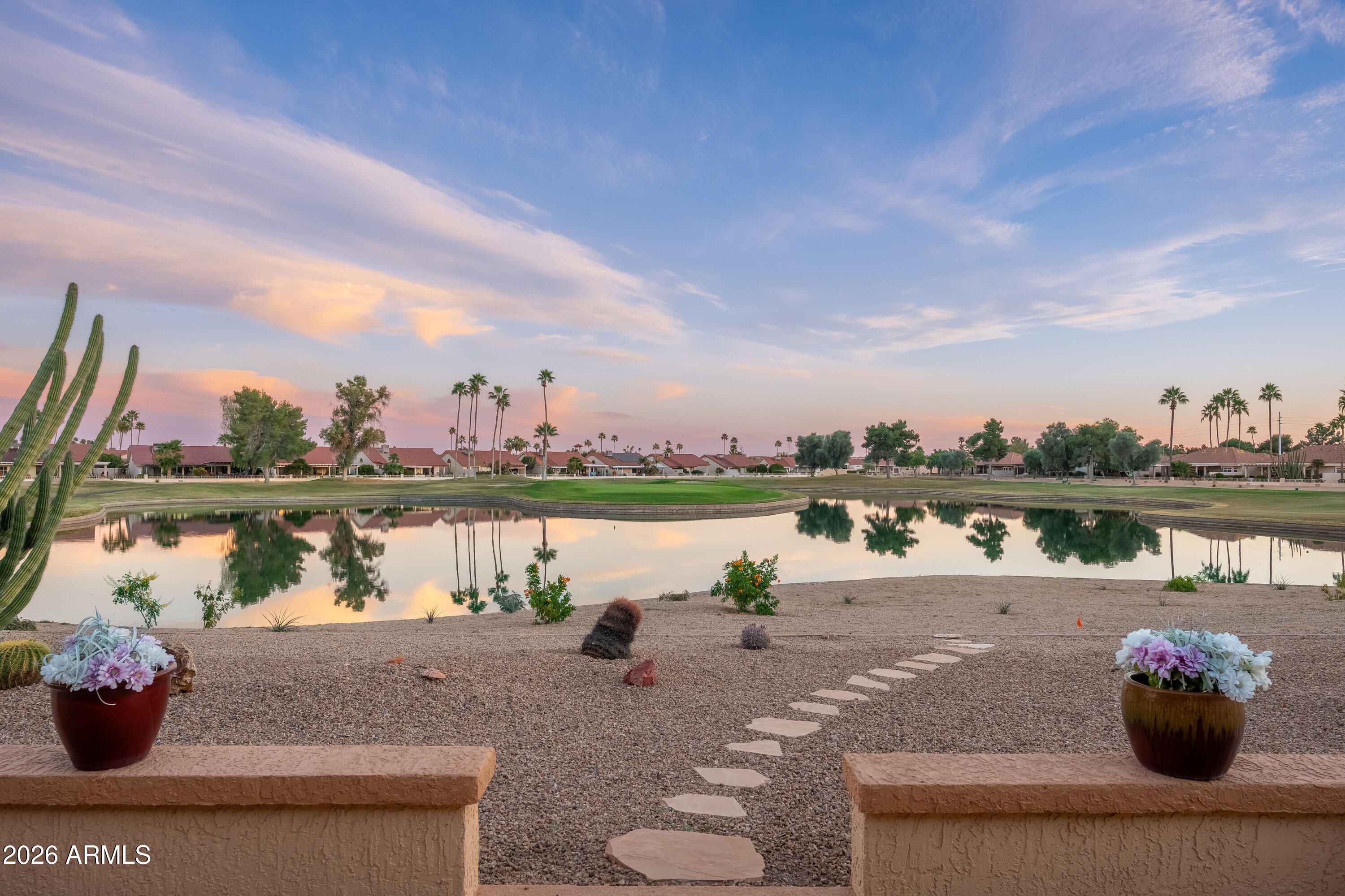 There are many really nice golf course lots in Sun City West. But this one is one of the three best and the other two are right next door. You have the center view of the 11th island green on Echo Mesa GC surrounded by a stunning lake. You can see the golfers tee off, putt and watch them putt on #12 as well. The home is a custom built San Simeon model modified by Del Webb at time of construction. The buyers turned the home into a great room with large picture windows showcasing the fantastic view. The kitchen is open to the great room as well. The home has 3 bedrooms and a 3 bay garage, newer A/C and roof underlayment. Come and see this great property. You won't be disappointed.