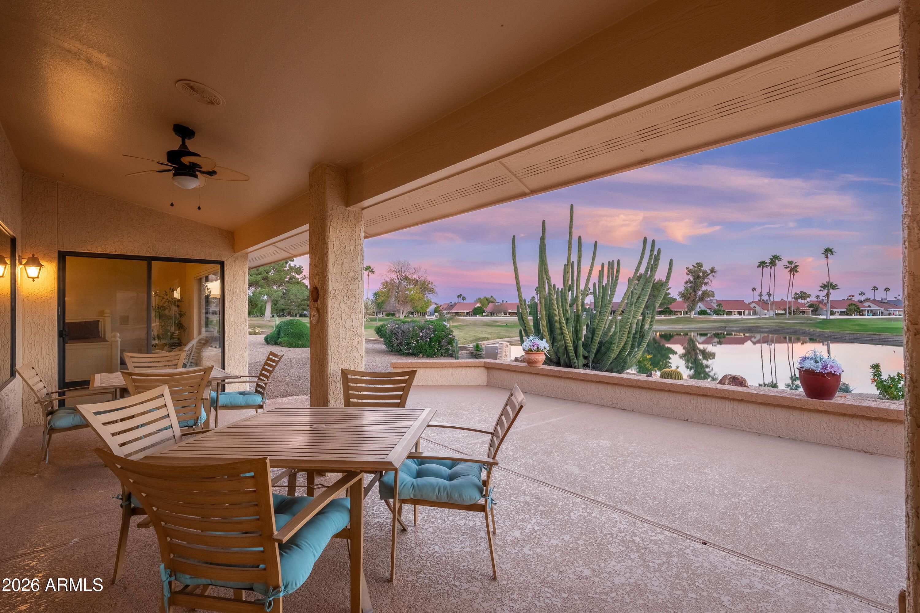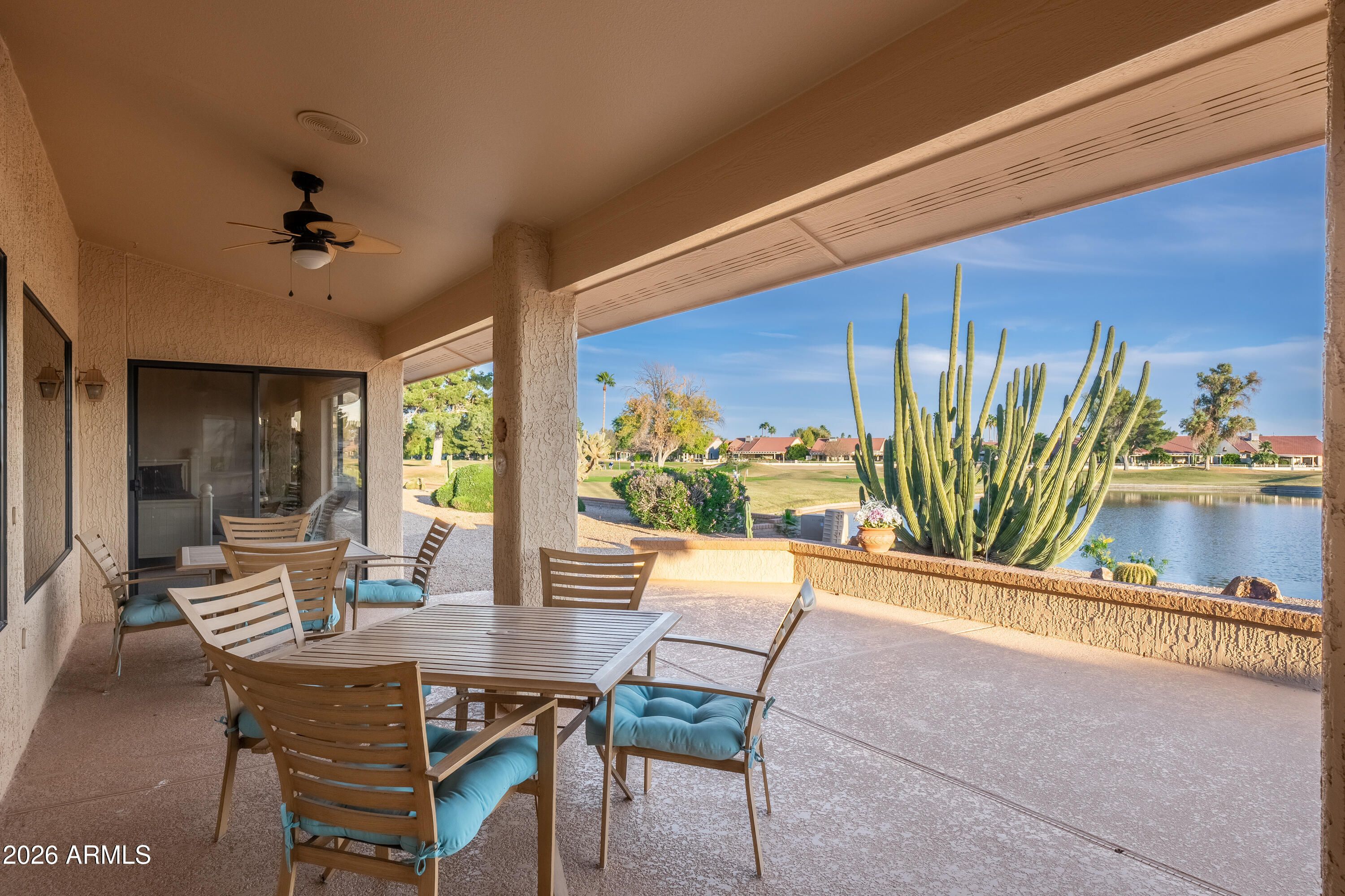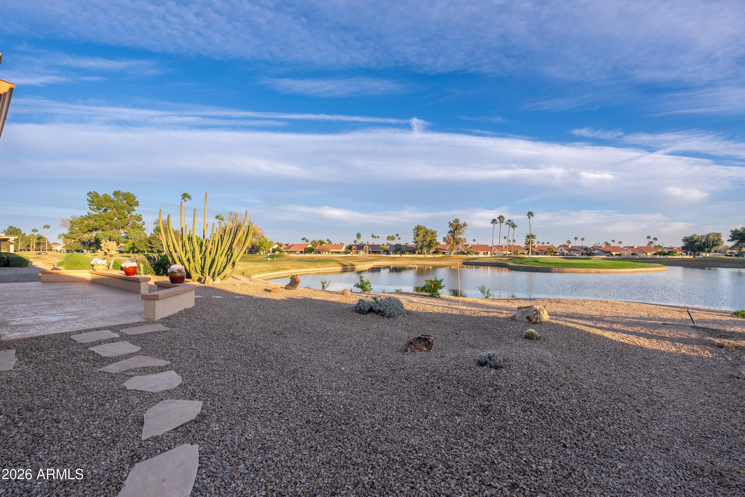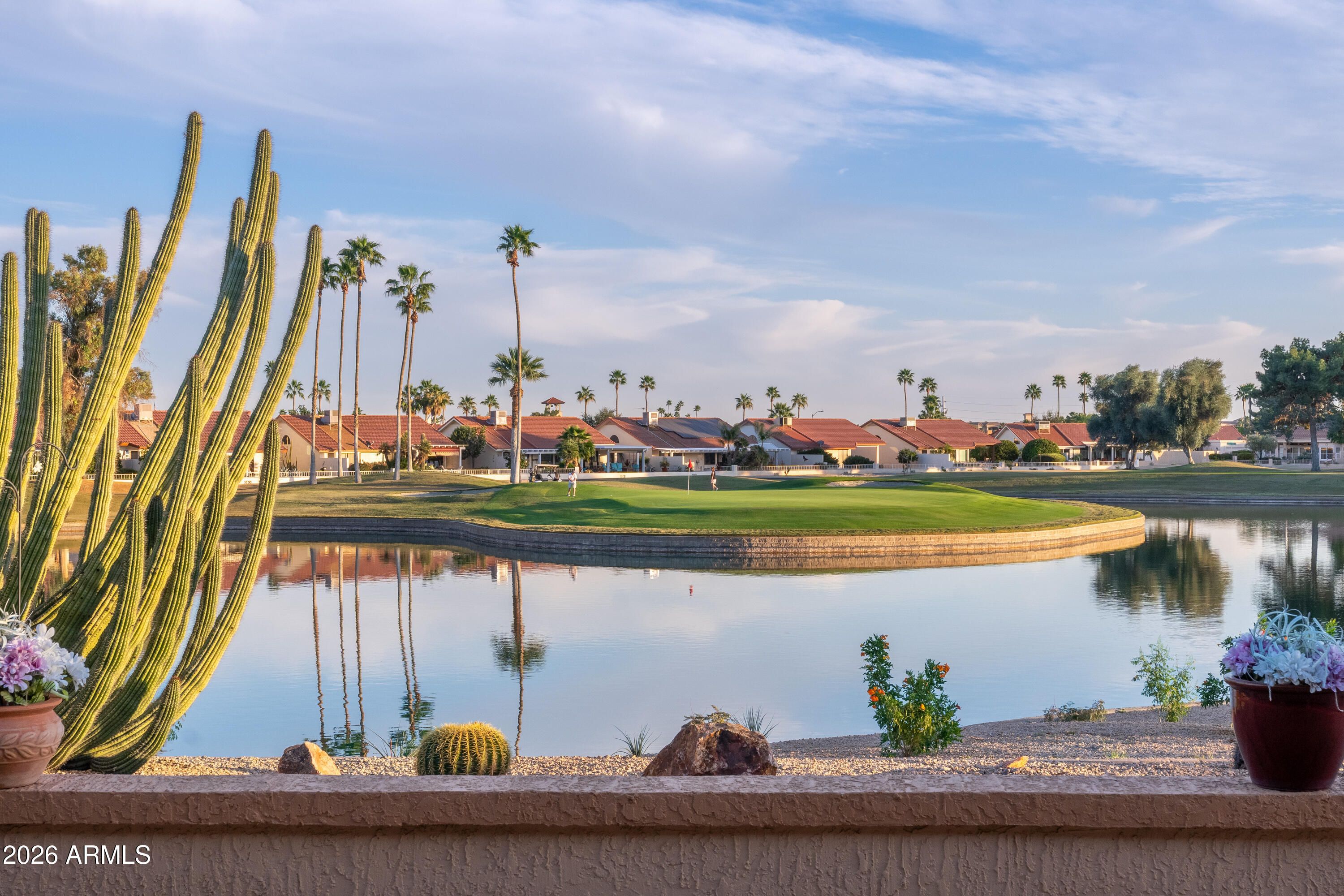 There are many really nice golf course lots in Sun City West. But this one is one of the three best and the other two are right next door. You have the center view of the 11th island green on Echo Mesa GC surrounded by a stunning lake. You can see the golfers tee off, putt and watch them putt on #12 as well. The home is a custom built San Simeon model modified by Del Webb at time of construction. The buyers turned the home into a great room with large picture windows showcasing the fantastic view. The kitchen is open to the great room as well. The home has 3 bedrooms and a 3 bay garage, newer A/C and roof underlayment. Come and see this great property. You won't be disappointed.
