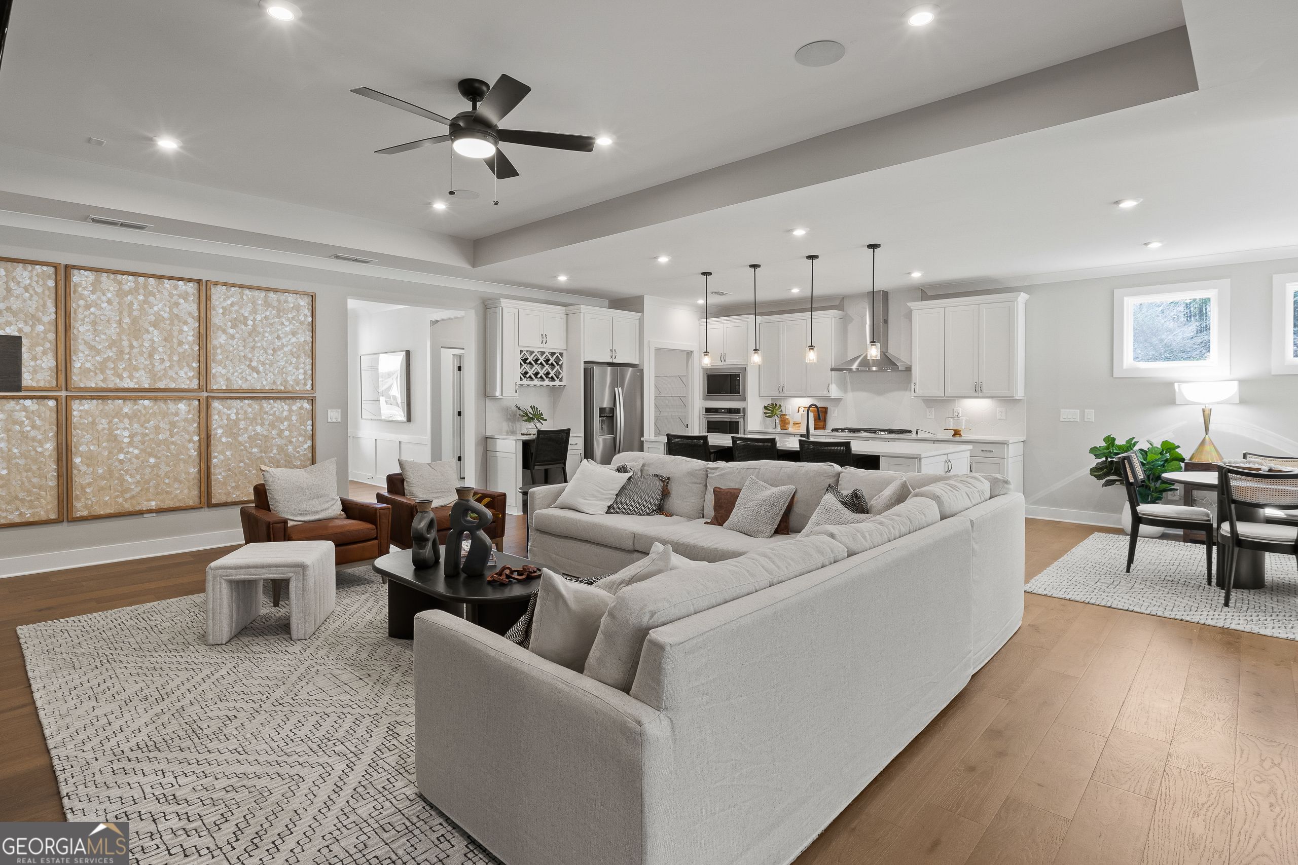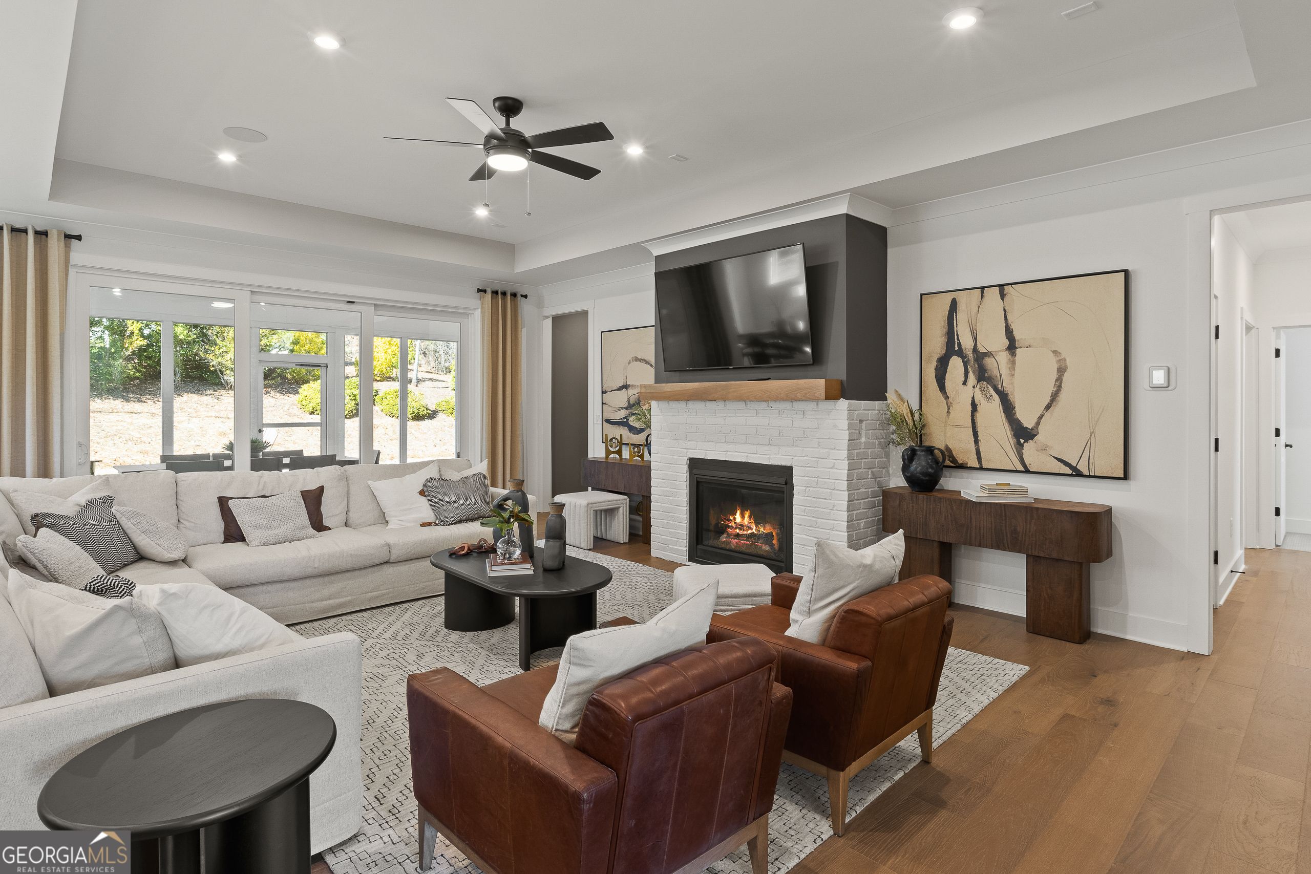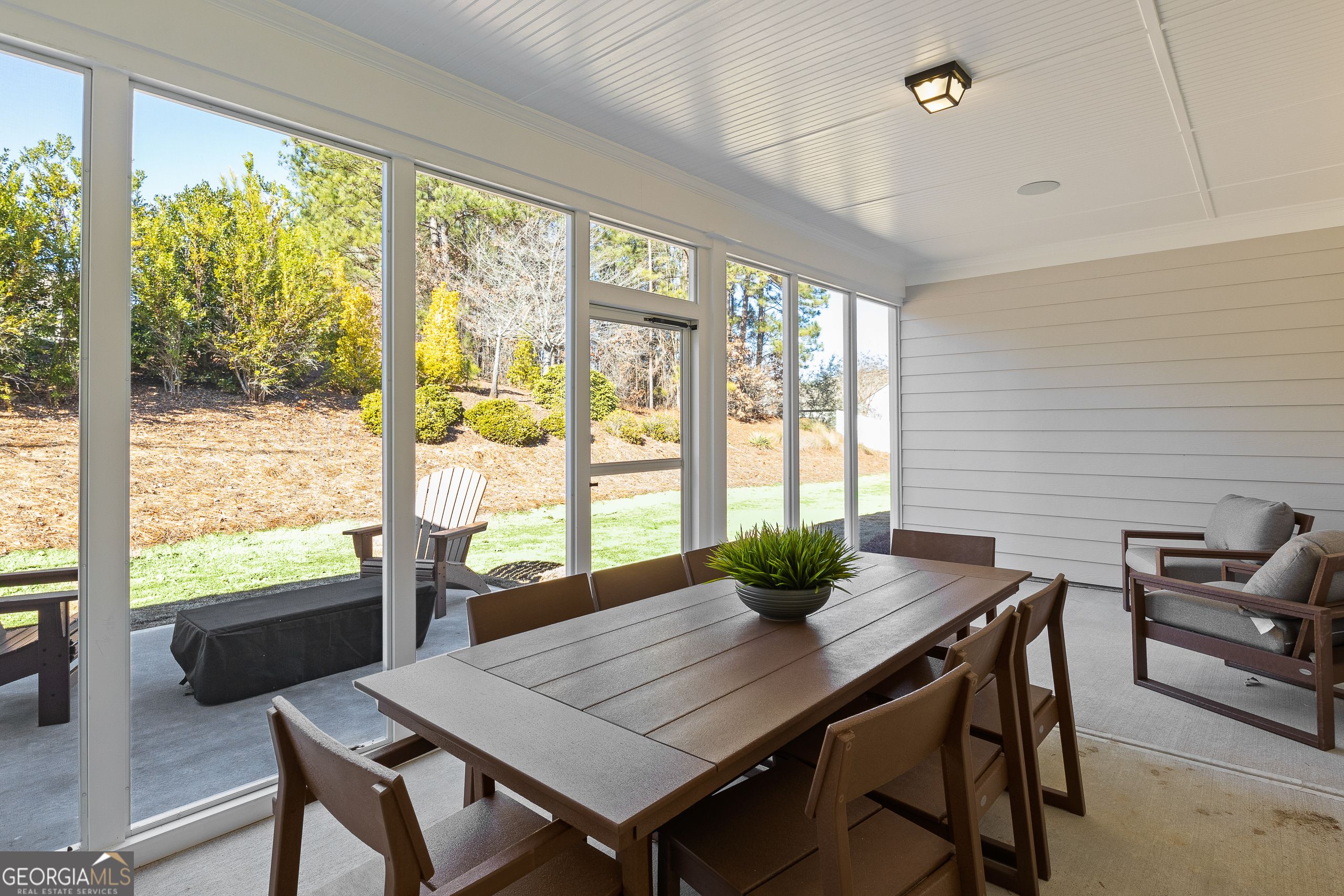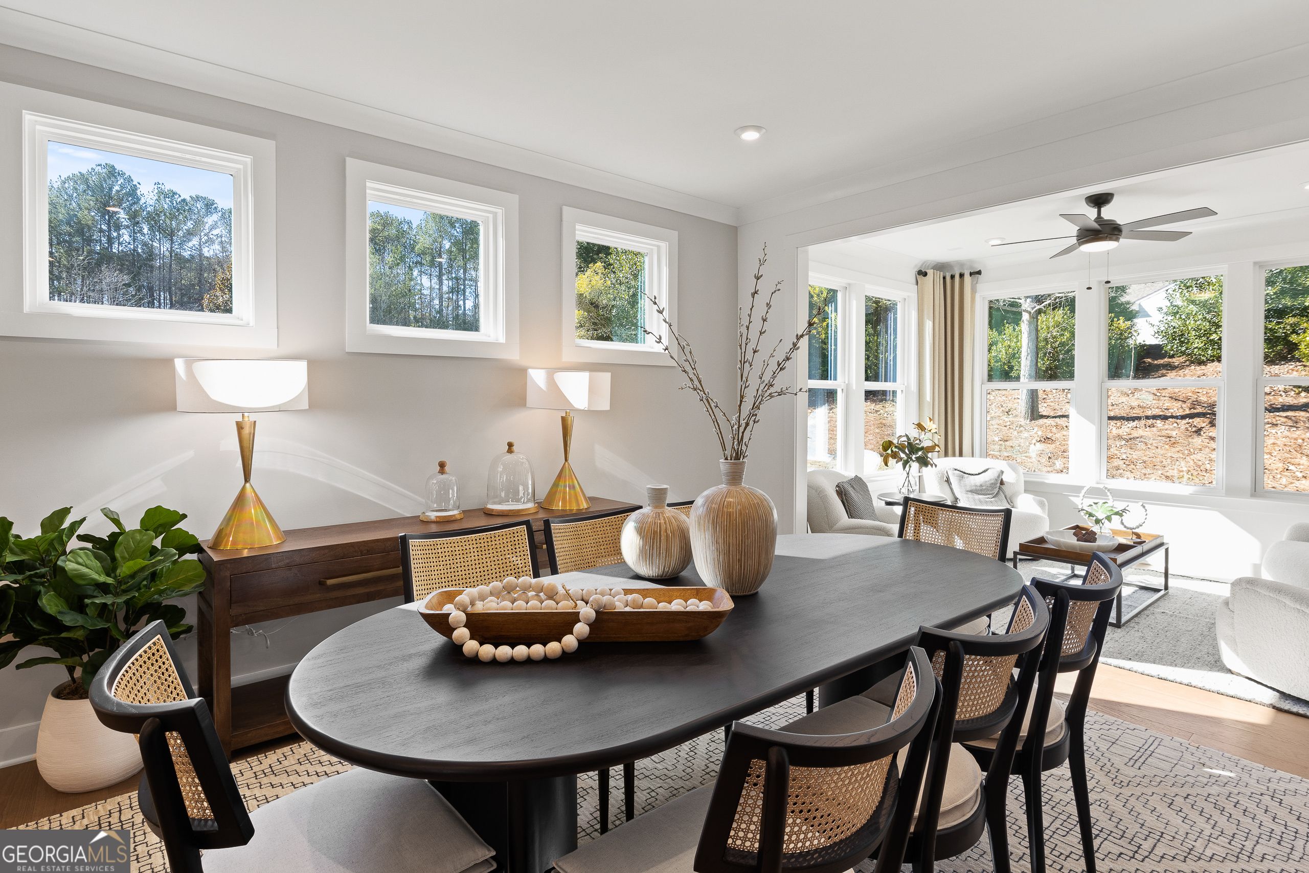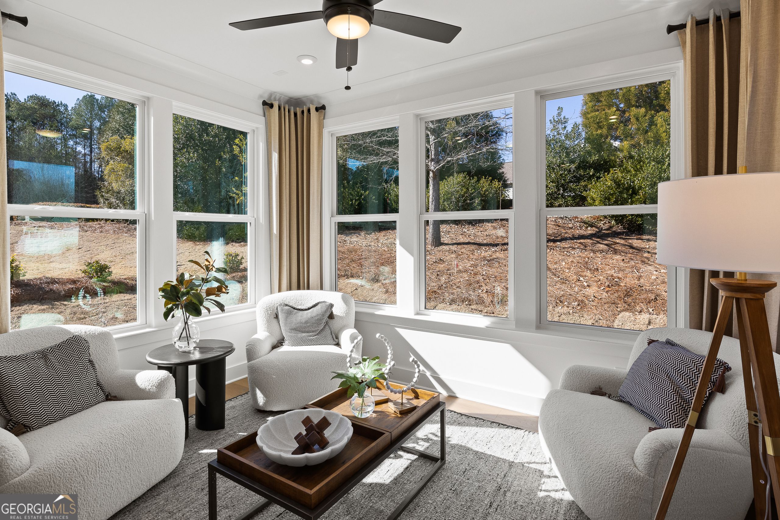 Stunning Stellar Floorplan Now Available in Sun City Peachtree - A Premier 55+ Active Adult Community Step into this beautifully designed open-concept home, where sightline views stretch from the front door all the way to the inviting gathering room. The classic white gourmet kitchen features sleek Silestone countertops, built-in stainless steel appliances, and a layout perfect for entertaining. Enjoy the bright and airy sunroom just off the gathering room-ideal for hosting guests or curling up with a good book on a rainy afternoon. The spacious primary suite offers a spa-like retreat, complete with a luxurious walk-in shower and generous walk-in closet. A versatile flex space provides the perfect spot for a home office, craft room, or hobby area. Situated on a lush green lot, this home offers low-maintenance living in a vibrant, amenity-rich community. Sun City Peachtree boasts an impressive array of amenities, including: An 18-hole ClubCorp golf course Indoor and outdoor Courts for tennis, pickleball, and bocce ball/softball field Scenic walking trails and much more Experience the lifestyle you've been waiting for at Sun City Peachtree. Please note that pictures are of model representation.