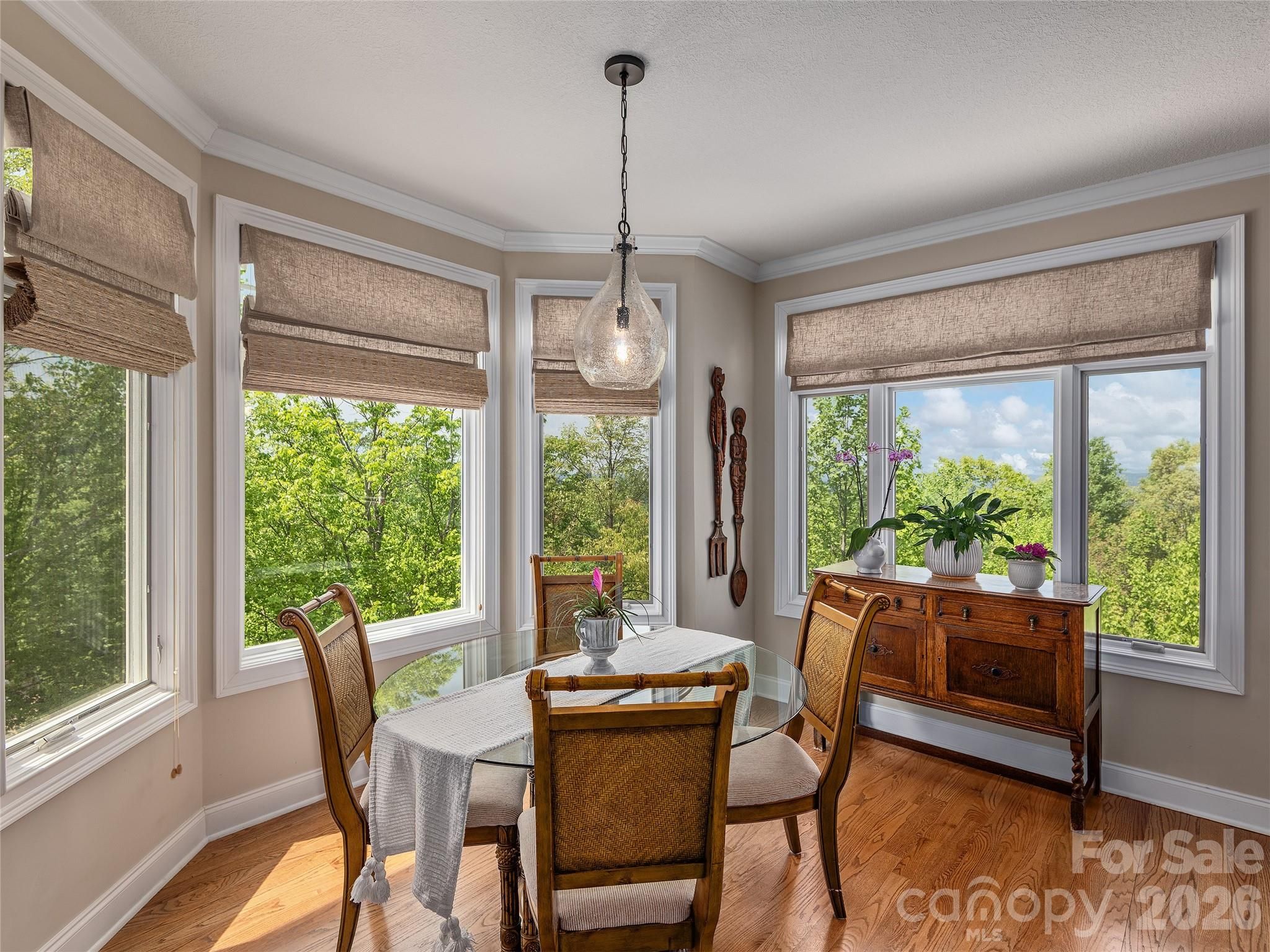 Enjoy year-round mountain views and luxurious comfort in this elegant mountain retreat located in the prestigious Carriage Park Gated Community. Featuring spacious interiors, soaring tray ceilings, elegant crown molding, custom cabinetry, stunning wood column accents, and premium 3 inch oak hardwood floors, this residence exemplifies quality and sophistication. Indulge your culinary passions in the gourmet kitchen, ideal for both daily meals and entertaining guests. Relax in the grand great room with panoramic mountain vistas and abundant natural light, or retreat to the luxurious primary suite with a spa-inspired bath, including a frameless glass walk-in shower and a Jacuzzi soaking tub. Private offices and guest spaces provide flexibility for your lifestyle, while the lower level offers a complete in-law suite with its own patio entrance. Exceptional home systems include an elevator for convenience, zoned HVAC with humidity control, circulating on-demand hot water, whole-house water filtration, and an automatic generator for peace of mind. Carriage Park residents enjoy an active lifestyle with access to a social clubhouse, year-round indoor pool, tennis and pickleball courts. Located just 3 miles from downtown Hendersonville, you're close to top restaurants, shopping, entertainment, and excellent medical facilities. Don't miss the opportunity to experience this extraordinary mountainside sanctuary designed by Stephen Fuller, one of the most prominent residential designers in the United States. View the video virtual tour for a closer look and schedule your private tour today!