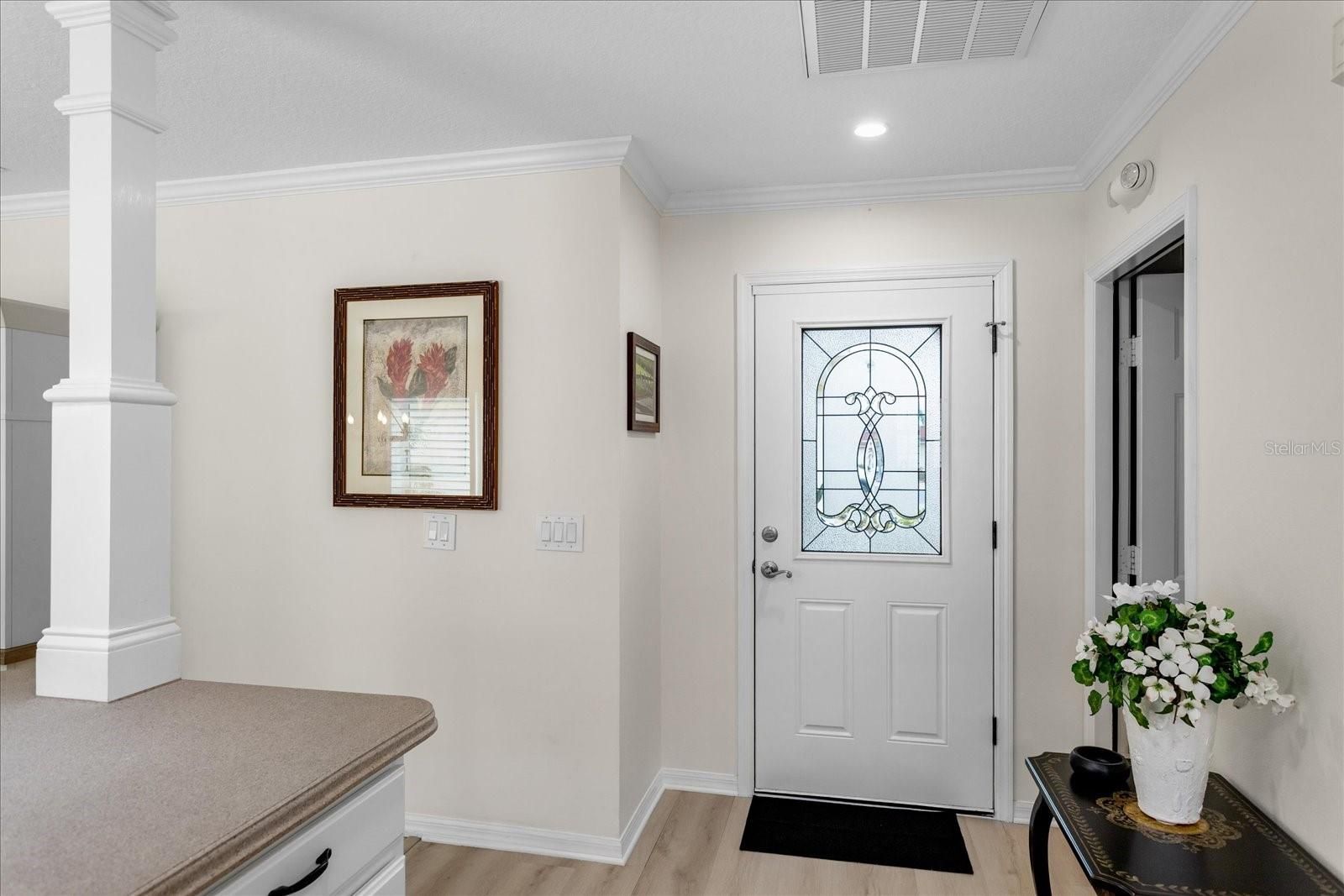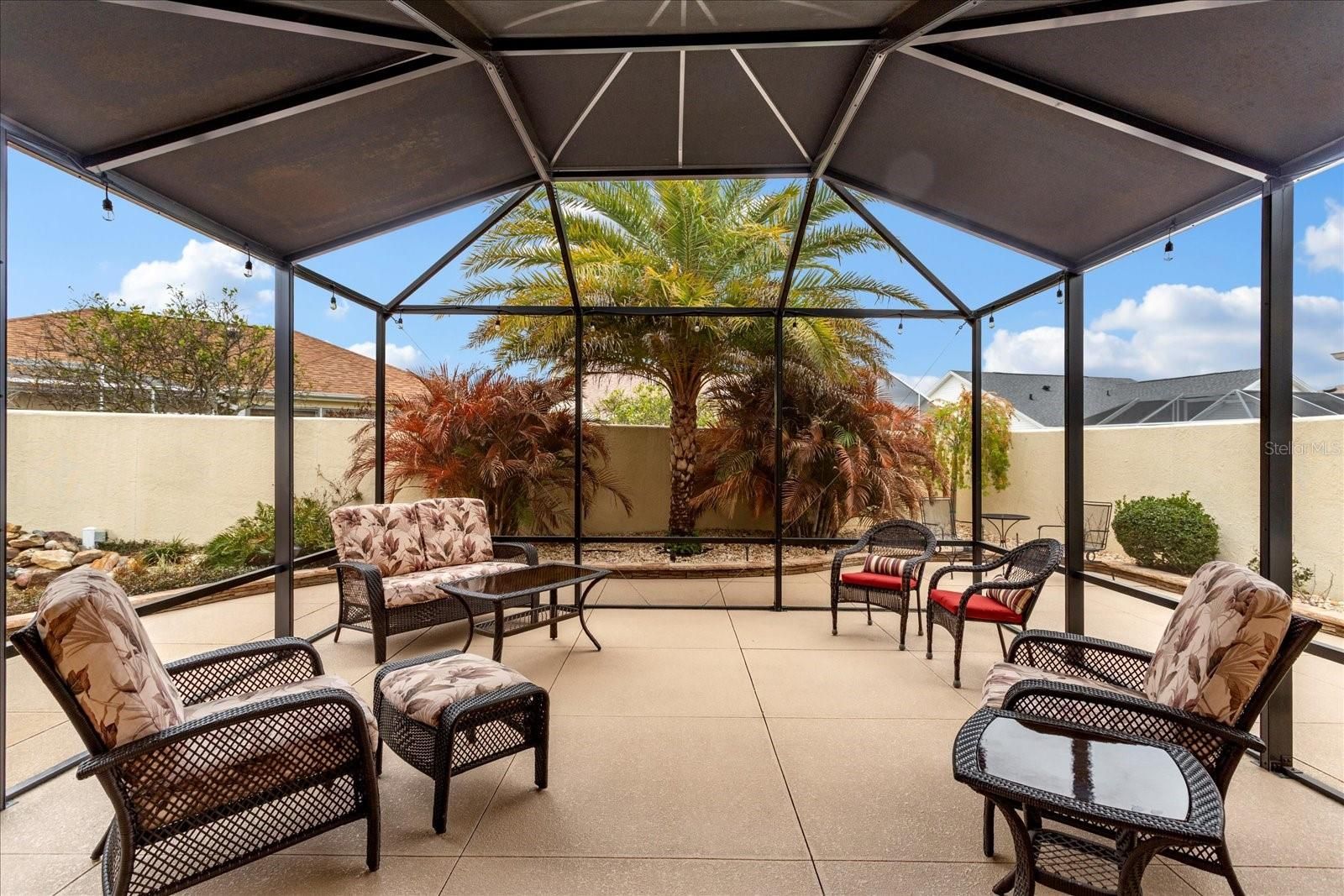 ABSOLUTELY STUNNING! NO BOND! TURNKEY! 2/2 Courtyard Villa with OVER 50 THOUSAND DOLLARS of UPGRADES, a Truly ONE-OF-A-KIND Home with the Designer Look & Feel of an Upscale Resort. Before you even enter this Inviting Villa, Look at all the Enhanced Landscaping, Rock Gardens & Fountain, Drawing you in through the Screened Front Entrance with New Black Leaded Glass Door Insert & Door Hardware, to the Expansive Kitchen w/lots of Bright White Solid Wood Cabinets w Crown/Pull-Outs & Soft Close Doors (painted 2026) New Black Hardware, New LVP Flooring (2026) New Recessed Lighting, Enhanced & Abundant Neutral-Toned Countertops & Soft Close Cabinet Doors w/Separate Pantry for Ultimate Storage. NO POPCORN! NO CARPET! New Lighting & Fans. Beautiful Designer Furnishings Throughout! New Plantation Shutters & Crown Molding! Interior Painted Throughout! Open Concept Living/Dining w/Light Creamy Toned 18x18 Porcelain Tile, Multiple Comfortable Seating Areas for Entertaining Both Large & Small Gatherings of Friends & Family! Next to the Dining Room, the White Etagere is also an Enclosed Desk! Check Out The Totally Remodeled Guest Bath & Beautifully Appointed Guest Bedroom w/Gorgeous Solid Wood Queen Bed Set, Custom Bedding, LVP Flooring & Large Closet. Guest Bath *ALL NEW* Exquisite 24x24 Designer Porcelain Tile, Custom White Vanity w/Granite Top, Deep Soaker Tub, Lighting, Tile w/Accent Glass Tile Border, Frameless Glass Shower Doors & Hardware. Large Hall Linen Closet. Master Bedroom Boasts Classic Solid Wood/Metal King Bed Set, LVP Flooring, Custom Walk-In Closet for Increased Storage, Master Bath *ALL NEW* Exquisite 24x24 Designer Porcelain Tile, White Custom Vanity w/Granite Top, Enlarged Shower, Lighting, Tile, Fixtures, Frameless Glass Shower Doors & Hardware. And Now-the Piece De Resistance! The EXPANSIVE, New, Breathtaking, One-of-a-Kind Outdoor Oasis. Covered/Canvas/Open Lanai w/Birdcage & Exterior Landscaping w/Open Air Options for Seating/Barbeque Areas, Multiple Amazing Palm Trees, Florida Friendly Shrubbery, Flowering Plants, Color Coordinated Rock Gardens, Meandering Walkways, Stacked Stone Landscape Curbing, Outdoor Lighting and the Beautiful Statement Piece, a Serene Flagstone Waterfall and Pond. This is What an Outdoor Garden of Eden Should Be! Imagine Yourself Enjoying Morning Coffee or An Early Evening Glass of Wine, Listening to the Calming Waters of the Tumbling Flagstone Fountain Feature. This is the Optimal Entertainer’s Paradise. THIS VILLA IS SPECIAL, DON’T WAIT or YOU WILL MISS OUT! Exterior Back Yard Walls and Floors Freshly Painted. Even the Garage Boasts Custom Gray Cabinetry, Newer Matching Gray Frontload W/D, Painted Floors, a Truly Meticulously Maintained Property. Roof 2017, HWH 2020, HVAC 2010.