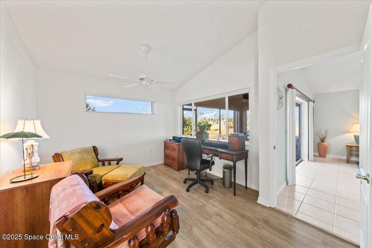 Nestled on a corner lot in prestigious Grand Isle, this idyllic abode provides picturesque estuary views, low-maintenance living and amenities galore. Built in the popular Grand Villa floor plan, this home offers generous living space and clean finishes like newer luxury vinyl flooring-NO CARPET. The open, bright kitchen includes a breakfast bar, pantry, and built-in desk space, and the primary bedroom ensuite features an attached den, office/sitting space, and a generous walk-in closet. The screened patio feels perfect for slow mornings or afternoon unwinding while taking in the water views. The community provides a resort-style pool and an elaborate clubhouse, housing social and wellness activities: dinners, yoga, pickleball, book clubs, cards, and more. Prefer a more relaxed pace? Enjoy stunning spaces to walk, and take in the natural surroundings. Conveniently located near to plenty of dining and entertainment options, about 15 minutes from the beach and under an hour to Orlando.