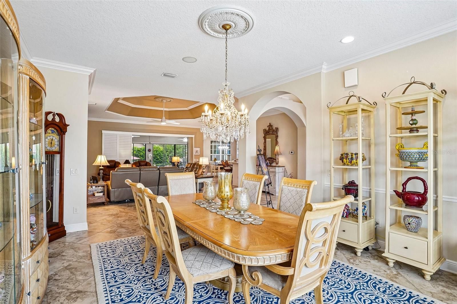 Welcome to refined Florida living in the highly sought-after Village of Bridgeport at Laurel Valley. Where elegance, comfort, and thoughtful upgrades come together in this stunning four-bedroom, three-bath Sanibel Model residence. From the moment you step inside, you’re greeted by soaring ceilings, abundant natural light, and exquisite crown molding that elevate every space. The heart of the home is the custom chef’s kitchen, complete with rich wood cabinetry, gleaming granite countertops, and a gas stove. Perfect for culinary enthusiasts and entertaining alike. The living room has a custom built feature wall with shelving, lighting and an electric fireplace. The dinette area has another custom built wall area providing, storage and lighting. The spacious primary suite is a true retreat, featuring a tray ceiling, elegant French doors leading to the Florida room, and a beautifully designed ensuite bath with dual vanities, makeup area, glass shower, and custom closet organizers that maximize both style and function. Designed with convenience in mind, this home offers a well-appointed indoor laundry room with a utility sink, built-in desk, and ample wood cabinetry and granite counter tops. Storage is abundant throughout, including clever bench storage in the dining area and an impressive garage setup featuring built-in wood cabinetry, "Majic Stairs", and a Versa Lift system for easy attic access. Let's talk about this attic!! It has over 200 square feet of storage space... you can stand and walk around! An electric screen enhances the double-bay portion of the garage, while a whole-house generator provides peace of mind year-round. There is also a whole house water filtration system. The Florida room is a standout feature, outfitted with electric blinds for added privacy and heat control, and the outdoor kitchen area with grill is ideal for indoor-outdoor living. Step outside to your private screened enclosure, where a multi-level concrete entertaining space awaits! Complete with ambient lighting, a relaxing jacuzzi, and dedicated garden spaces. This exceptional property blends luxury, practicality, and Florida charm. Offering the perfect setting for both everyday living and unforgettable entertaining. This community only has 53 Premier homes. A very exclusive place to call HOME! Lake Sumter Landing is the nearest town square for evening entertainment, shopping and dining.