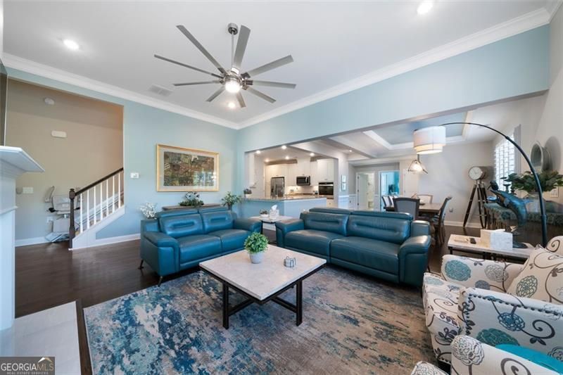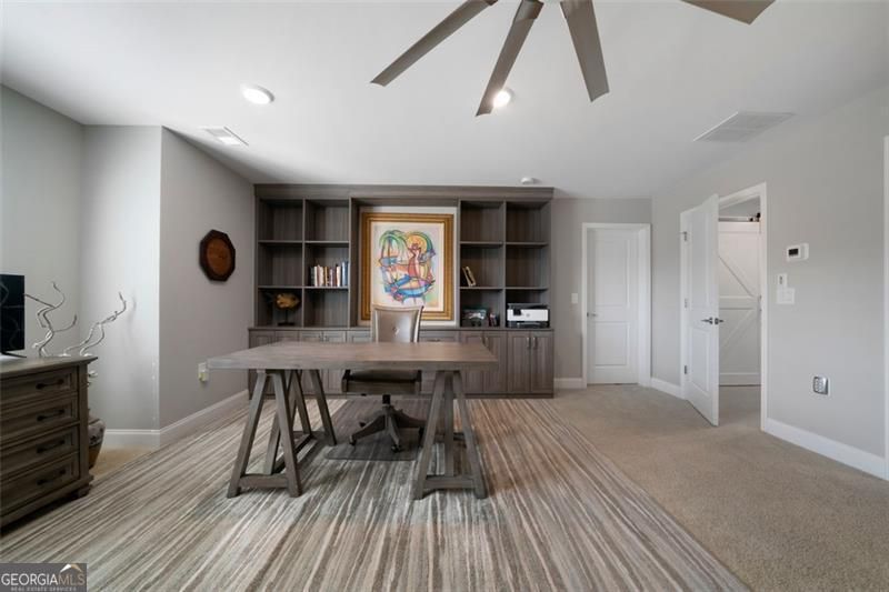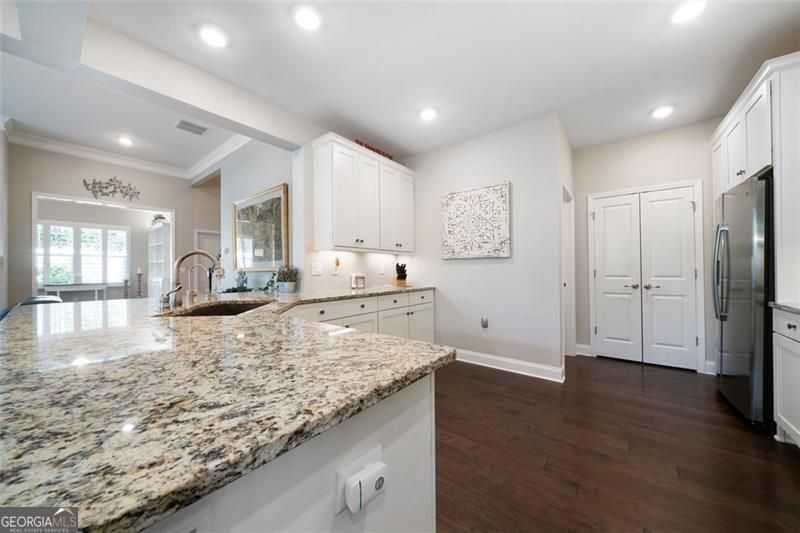 Highly Desired 55+ COMMUNITY! ***LUXURIOUS HOME Looks And Feels Like Brand New!! Ultra Private End-Unit With a Grand Entry Opening to an Airy, Open-Concept Layout Perfect For Entertaining. The upper level is perfect for a live-in caregiver or guest. *Over $50K in UPGRADES, including epoxy garage floor, EV charger, reverse-osmosis drinking water system, whole-house chlorine filtration, custom pantry shelving, plantation shutters, and hardwood floors throughout, plus custom closet systems. Custom bookcases flank the main-level fireside family room, while a private study provides a flexible workspace. Enclosed sunroom/screened porch features a vertical four-track window system. Chairlift to a massive upper level featuring a second entertaining room, bedroom, full bath, and heated/cooled storage. Discover the Epitome of Modern Living in this Gorgeous Home with Tons of Nearby Amenities! Boasting pristine condition, this home features a seamless flow from one room to the next, creating a harmonious living space. HOA COVERS ALL EXTERIOR PAINT, ROOF REPLACEMENT, AND WEEKLY LAWN MAINTENANCE* Too many upgrades to list - a must-see. Complete with a 2-car garage, a grand clubhouse, and a saltwater pool, this home offers both convenience and luxury. The clubhouse features several rooms, including a main room with an open-plan kitchen, a private meeting room, an exercise room, and a pool changing/shower area-plus plenty of open, grassy areas for dog walking. ***ABOUT the Orchards of Central Park, with its proximity to GA 400, offers tremendously easy accessibility. This community has it all, whether it is local restaurants, shopping, medical facilities, or entertainment. It is adjacent to Central Park, one of North Atlanta's most exciting and comprehensive municipal parks. To make this amenity even more accessible to our homeowners, there is a sidewalk from the community directly into the park, so there is no need to drive! A complete recreation center with all sorts of instructional classes, pickleball courts, walking and bike trails, tennis, athletic fields, children's playground, and so much more. Having this fantastic park so conveniently located is just one more reason The Orchards of Central Park should be high on your list for Active Adult Living along the GA 400 corridor. **Close to the Grocery Stores, restaurants, and shopping**Better hurry before this home is snatched up!**$10,000 Seller Concession and several items will be conveyed with property**
