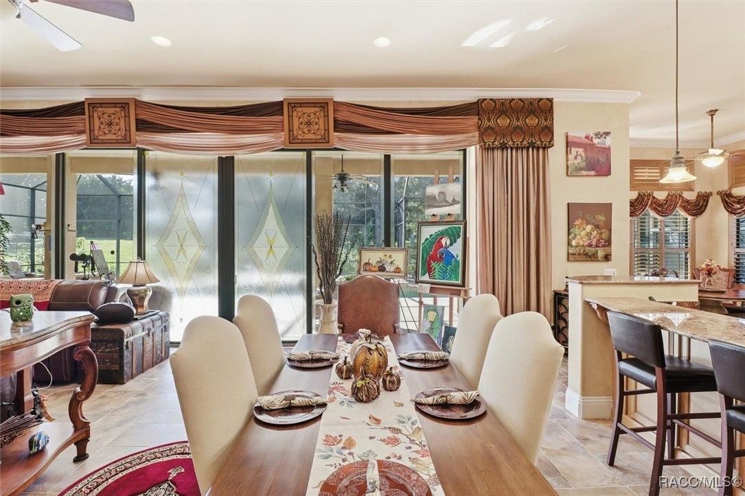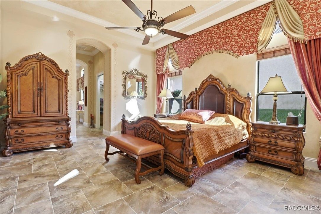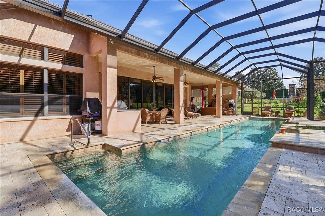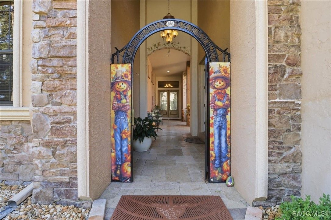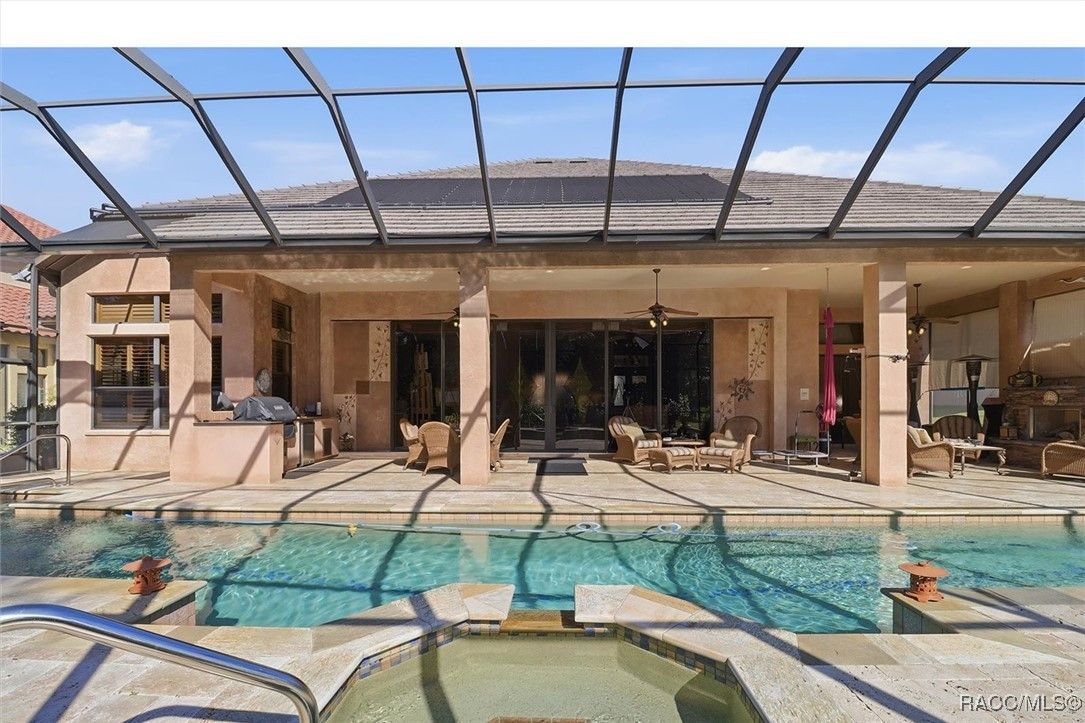 Come home for the holidays in the prestigious, gated community of Terra Vista. This former builder’s model home in Bellamy Ridge showcases 4,231 sq ft of refined living space with 4 bedrooms, 4.5 baths, and stunning hand-crafted murals and custom textures throughout. Designed for luxury and comfort, the home features an in-law suite, an extended primary suite with large closets and an extended bath area including a fireplace, sauna and steam bath, tiled floors throughout the home, a courtyard, travertine pavers, exotic granite, and designer window treatments. The chef’s kitchen offers beautiful Bentley maple cabinetry, a gas cooktop and Tuscan-style vent hood, new microwave/oven combo (2023) and new refrigerator (2021), while soaring 12-ft tray ceilings add elegance in every direction. The outdoor space is exceptional with a solar heated saltwater lap pool on an expansive lanai that includes an outdoor kitchen and fireplace. Lush, updated landscaping includes a pleasant variety of fruit trees: apple, avocado, Meyer lemon, grapefruit, orange, banana, and nectarine. Escape to pure peace and serenity. The property includes a 2-car garage with epoxy floors and storage cabinetry, two AC systems (2015 & 2018), whole-house water filtration (2023), tinted windows (2024), and a whole-house generator with upgraded panel (2024). Located on a beautifully maintained .28-acre lot, this home exemplifies quality, craftsmanship, and the Terra Vista lifestyle. Residents enjoy world-class community amenities, including a spa, fitness center, indoor and outdoor pools, indoor hot tub, on-site dining, shopping, and more. Contact us for your private showing! Your new home awaits just in time for the holiday season.