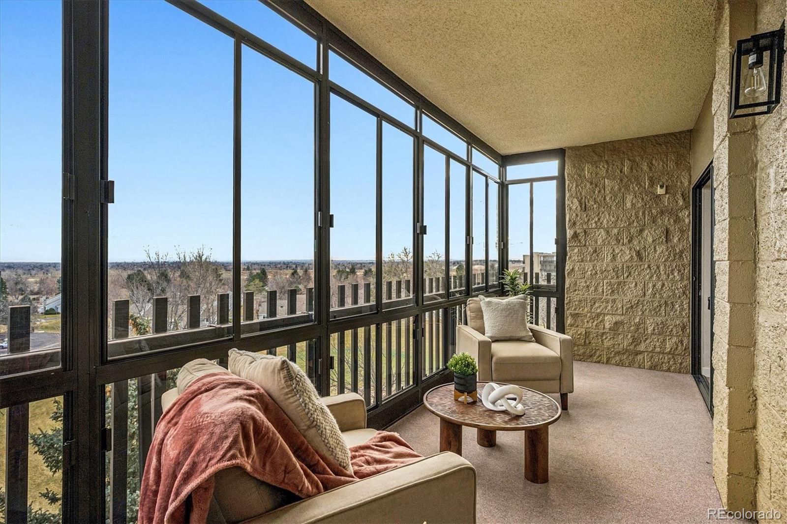 Sunny corner location fills this penthouse level home with natural light and offers spectacular golf course and mountain views. Just remodeled from top to bottom with high quality finishes. Heather Gardens, Aurora's premier 55+ community offers the lifestyle you've been looking for. 2 bedrooms plus 2 baths, 2 spacious enclosed lanais add multi-season living space and a great vantage point for the greenbelt, golf course and mountains, you will never get tired of these views! 1 underground parking space with direct elevator access to your residence floor is so convenient. Large open great room with contemporary linear fireplace, separate dining room plus open kitchen with eating bar (dining room could be used as a den area). Engineered wood flooring throughout the living areas. New soft close cabinetry in the kitchen along with quartz counters and stainless appliances. New baths with new fixtures, tile, cabinets and counters. New paint throughout. New carpet. New hardware and lighting. In-unit laundry. Enjoy this beautifully re-designed home surrounded by amazing amenities including a multi-million dollar clubhouse, executive 9-hole golf course, indoor and outdoor swimming pools, fitness center, tennis courts and countless community activities. Live a great retirement lifestyle at Heather Gardens!