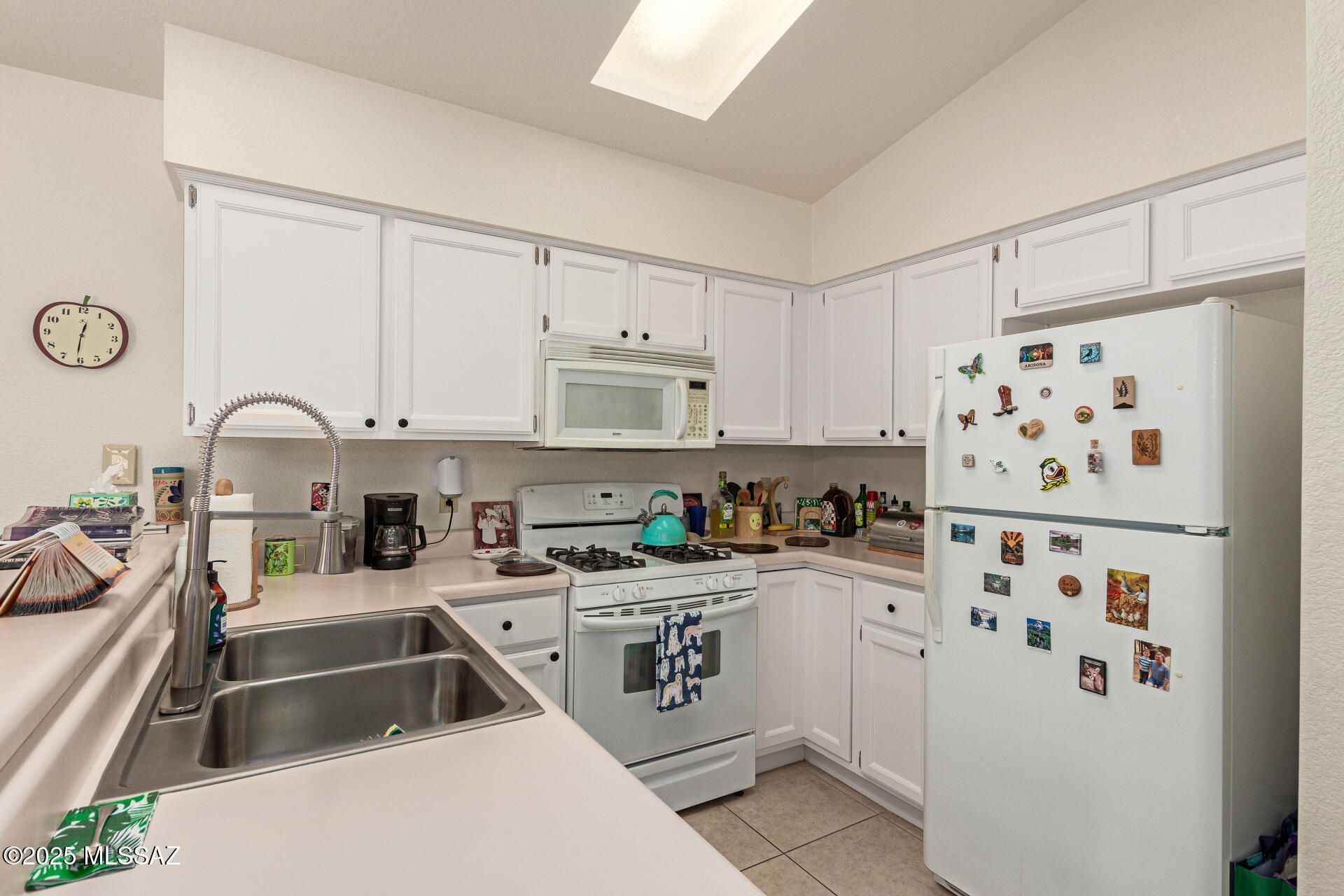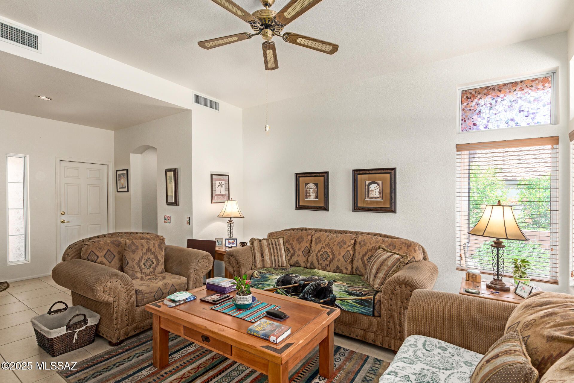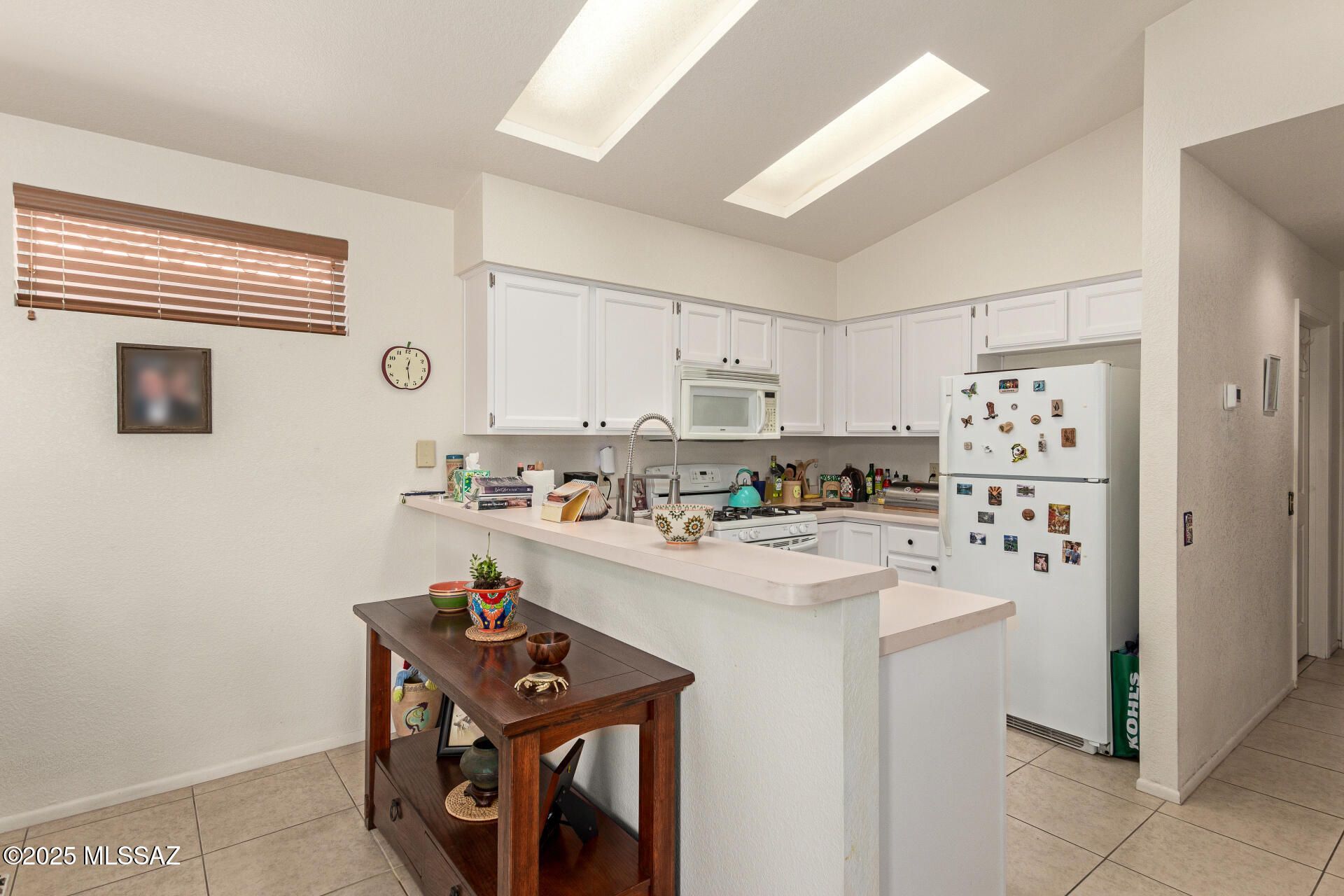 Welcome to this well-maintained 2-bedroom, 2-bath home located in the highly desirable 55+ community of Sun City Oro Valley. This property offers a functional layout with thoughtful upgrades, including a new roof in 2021 and tile flooring throughout high-traffic areas. The spacious kitchen features ample cabinet storage, built-in appliances, a two-tier breakfast bar, and a bright dining area that opens to the backyard through sliding glass doors. The primary suite includes vaulted ceilings, wood-look flooring, a walk-in closet, and a dual-sink bathroom. Step outside to a low-maintenance desert backyard complete with a covered patio perfect for relaxing or entertaining.
