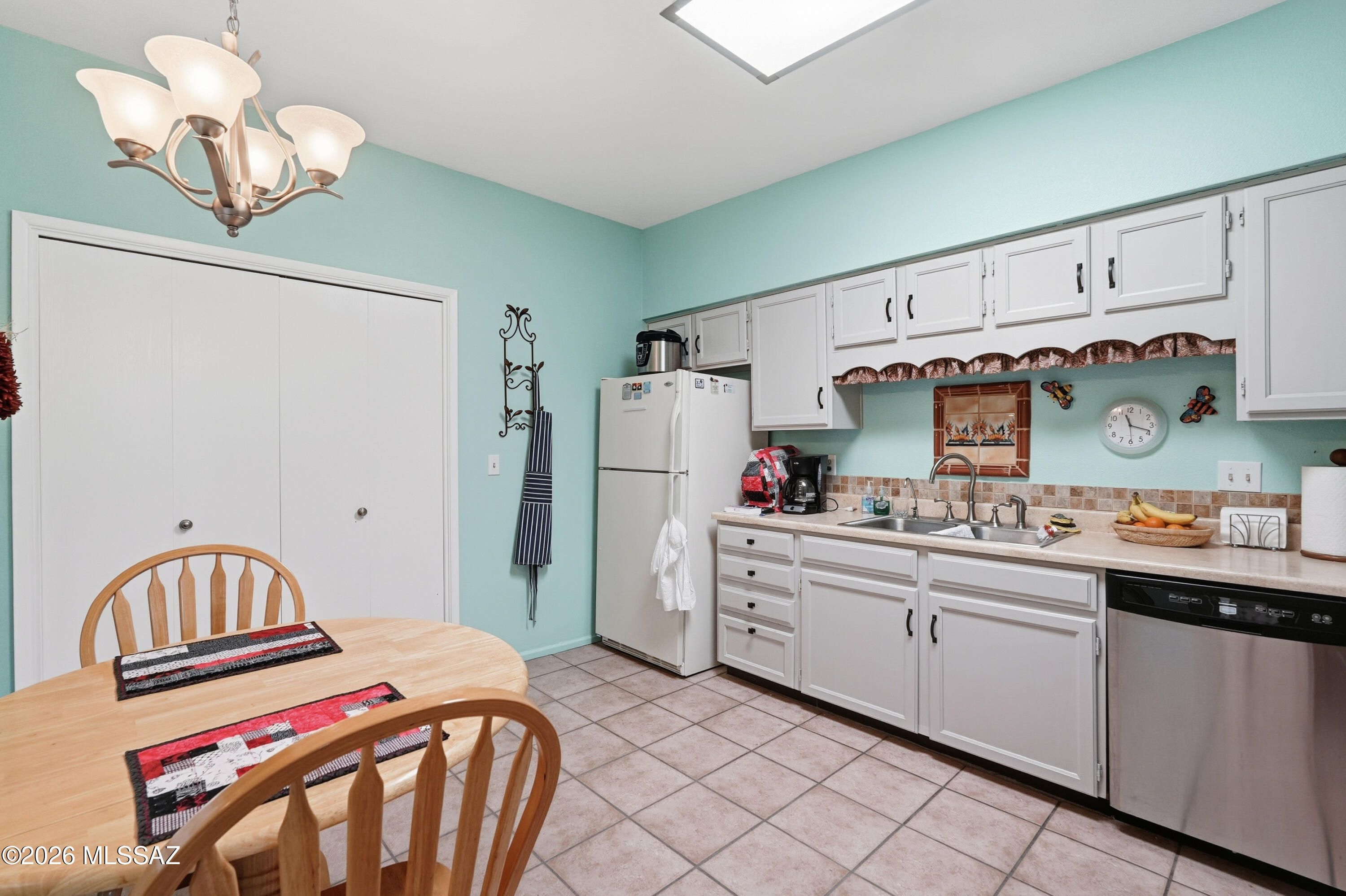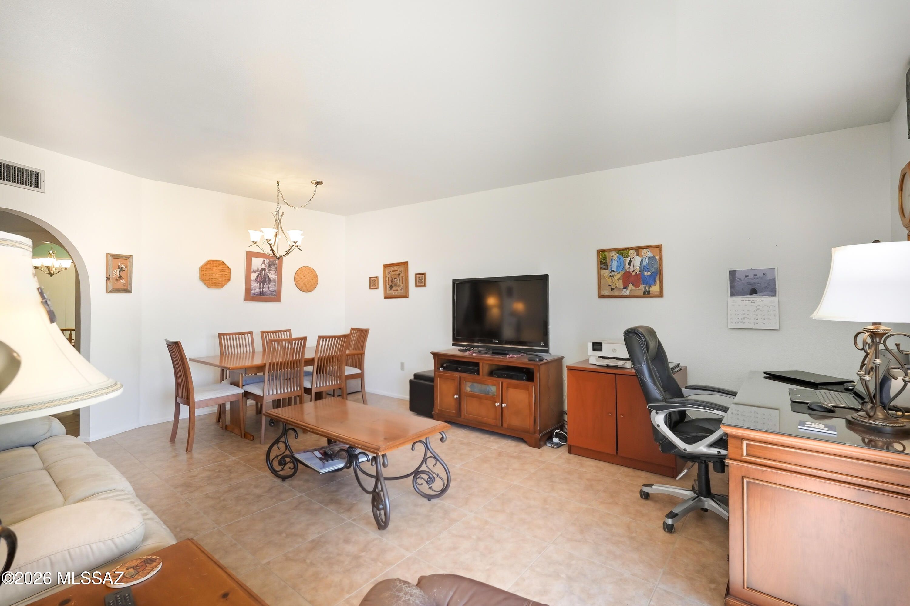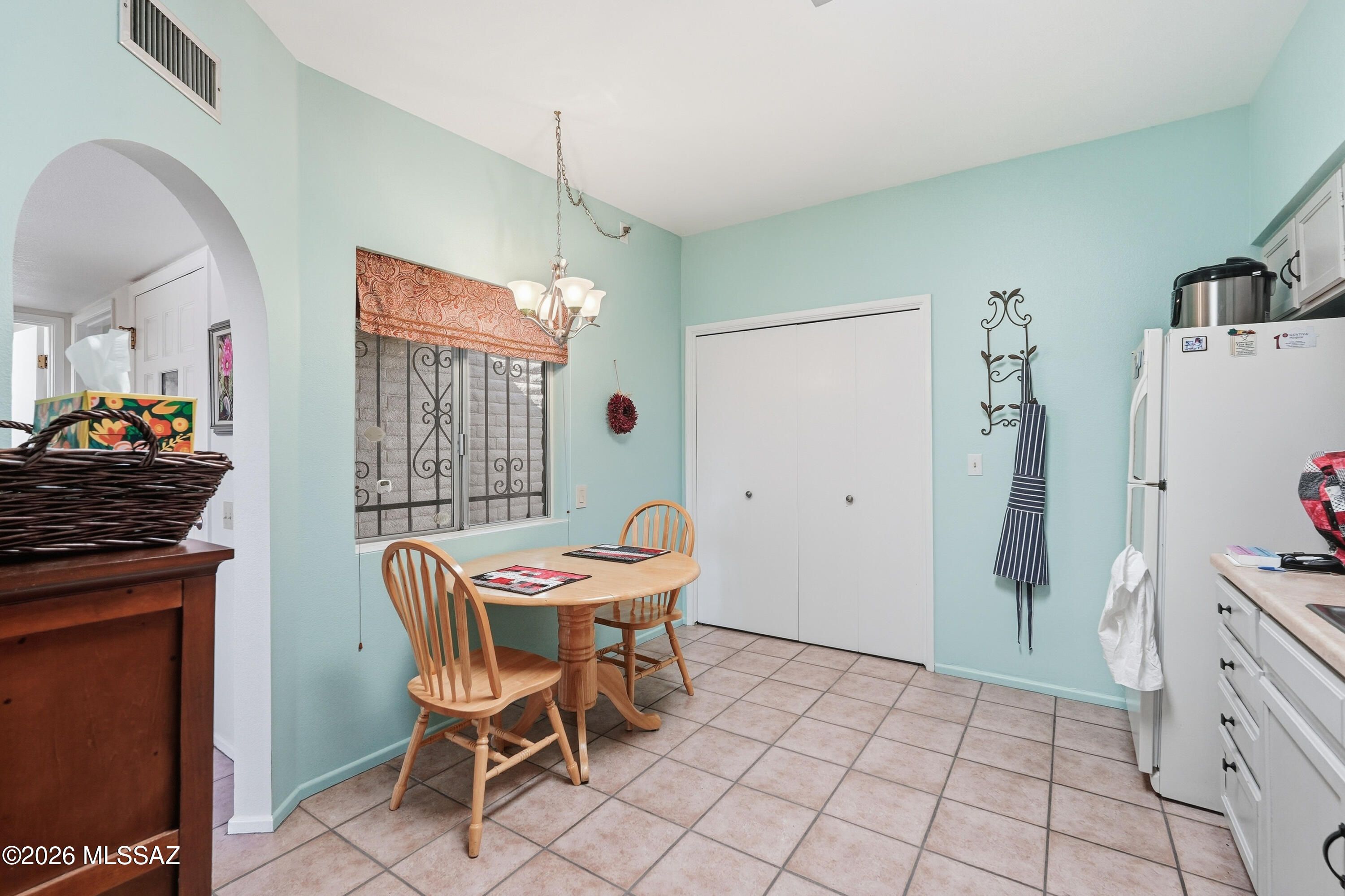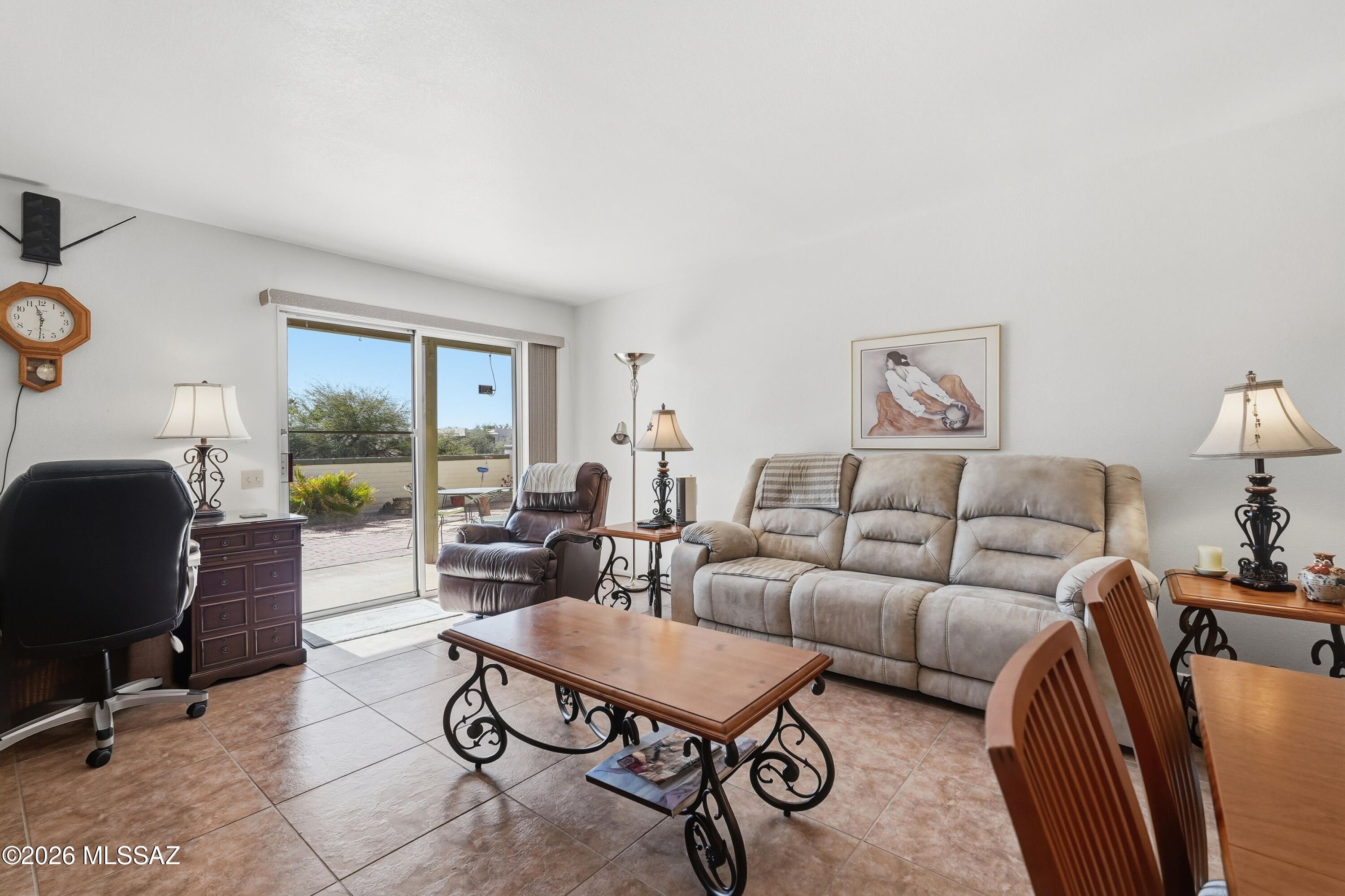 Enjoy peaceful desert living with breathtaking views of the Santa Rita Mountains. Start your mornings sipping coffee as the sunlight moves across the mountains and end your days with quiet, colorful sunsets. This inviting townhome features beautiful tile flooring throughout, updated primary bathroom and kitchen. And a new HAVAC unit.The layout is practical and welcoming, with light-filled living spaces that flow easily for everyday living or entertaining. The bedrooms provide comfortable retreats, making the home ideal as a full-time residence or seasonal getaway. Furniture can stay with the unit allowing you to move right in.