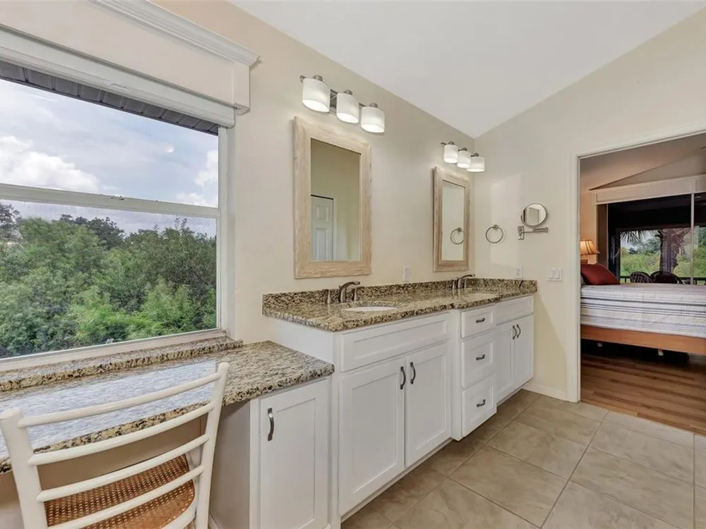 - Ceiling Fan(s), Living/Dining Room, Stone Counters, Thermostat, Vaulted Ceiling(s), Walk-In Closet(s), Window Treatments