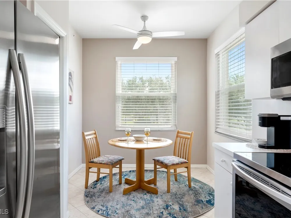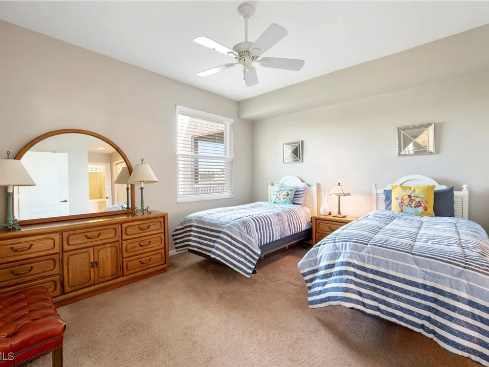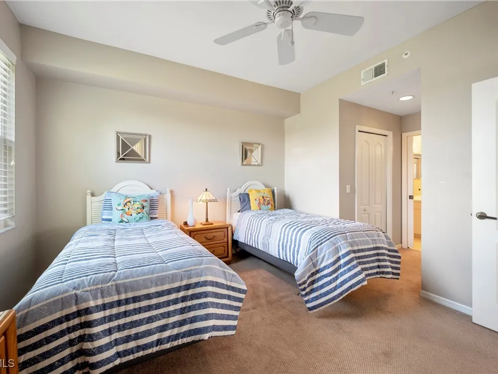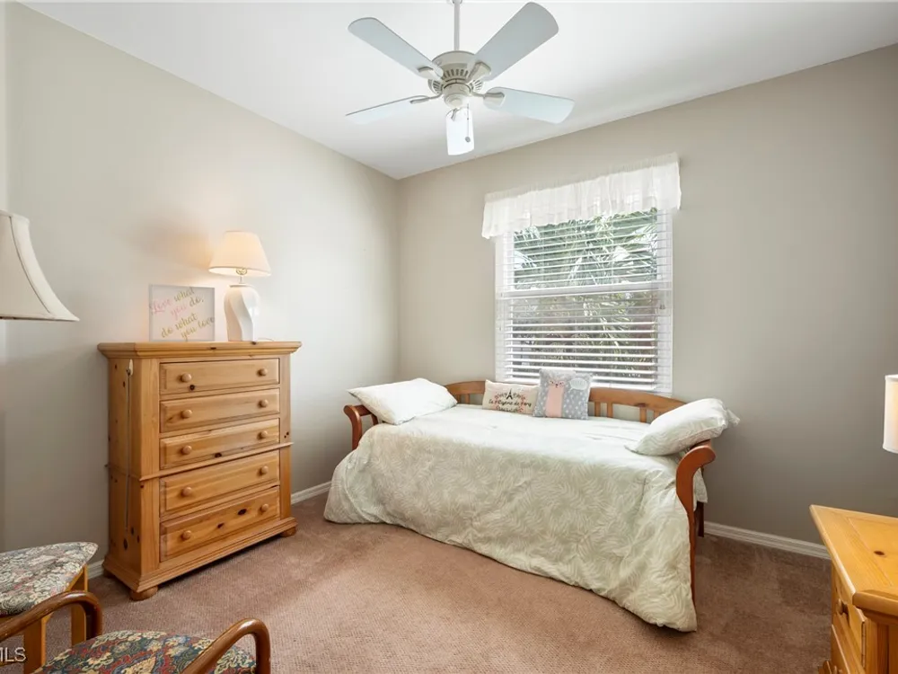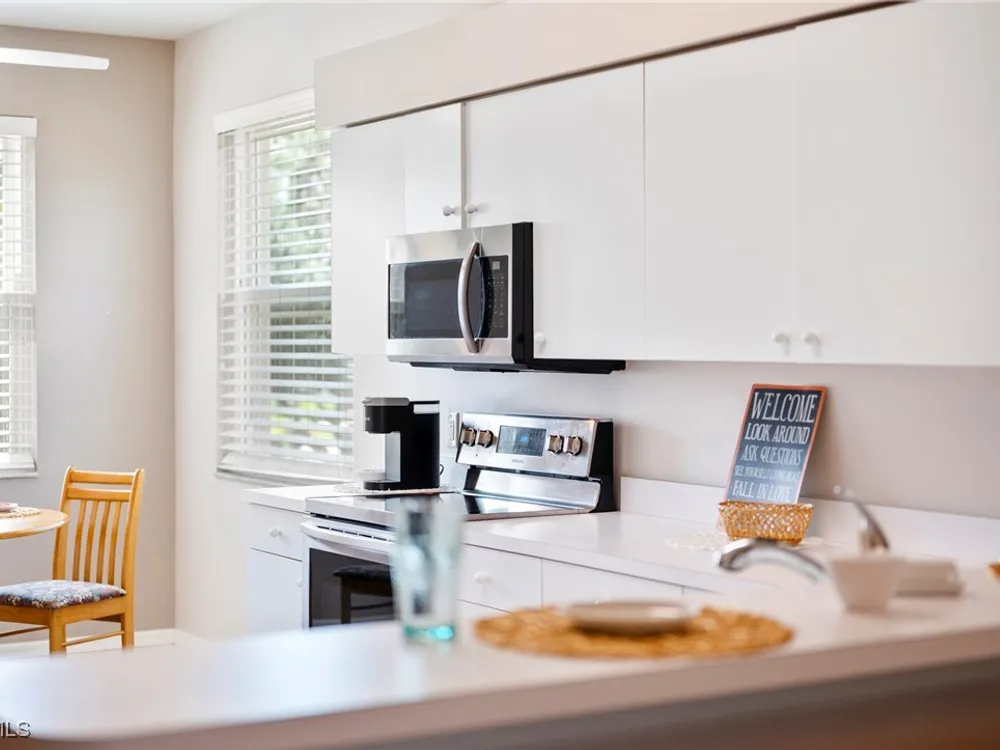 TURNKEY, FURNISHED CORNER UNIT WITH LAKE VIEWS IN HERITAGE COVE 55+ COMMUNITY! Welcome to your Florida dream lifestyle! This rarely available, spacious 2-bedroom + den, 2-bath corner-unit condo is located in the highly desirable, gated Heritage Cove community—just off scenic McGregor Blvd, the gateway to Sanibel and Fort Myers Beach. Beautifully furnished and fully turnkey, this second-floor unit offers serene lake views from your private, screened lanai—perfect for morning coffee or sunset relaxation. Inside, you'll find a bright, open living area with an adjacent den ideal for a home office, media room, or reading nook. The primary suite boasts two walk-in closets and an updated ensuite bath with a walk-in shower. A split floor plan provides privacy for guests in the second bedroom, which also features its own walk-in closet and full bath. Enjoy a large, eat-in kitchen with stainless steel appliances, a breakfast bar, and plenty of cabinetry—plus an in-unit laundry room with full-sized washer and dryer for added convenience. This unit comes with covered parking, a private storage closet for all your beach and sporting gear, and a screened front entry that welcomes the Gulf breeze. The HOA includes cable TV, Wi-Fi, water, lawn care, and more—plus full access to the resort-style pool, clubhouse, fitness center, bocce ball, clay tennis courts, and beautifully maintained grounds. Whether you're a full-time resident or seasonal snowbird, this gem offers low-maintenance living in an unbeatable location. Don’t miss this opportunity to own one of the best units in Heritage Cove—corner unit, lake view, turnkey and ready for you!