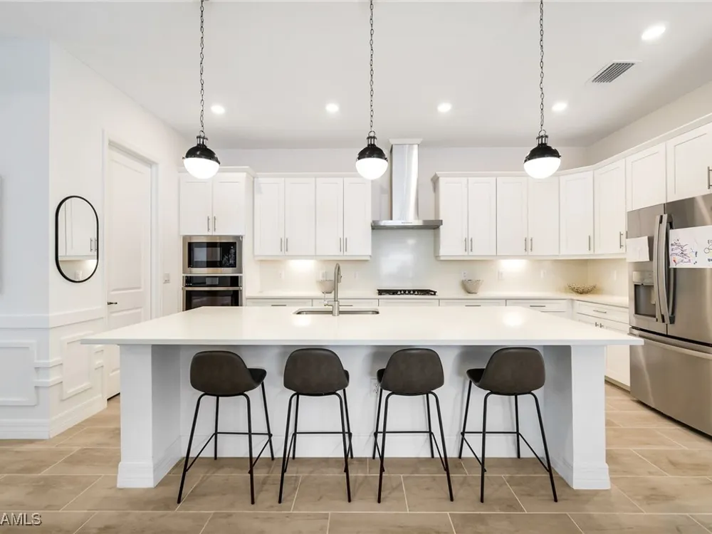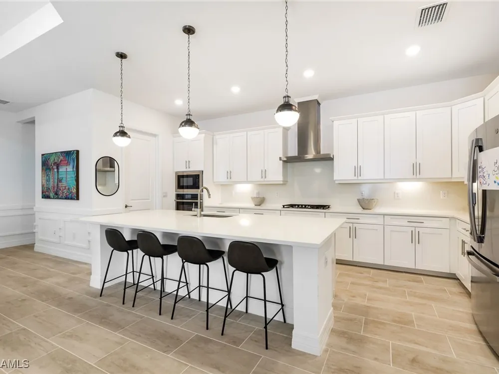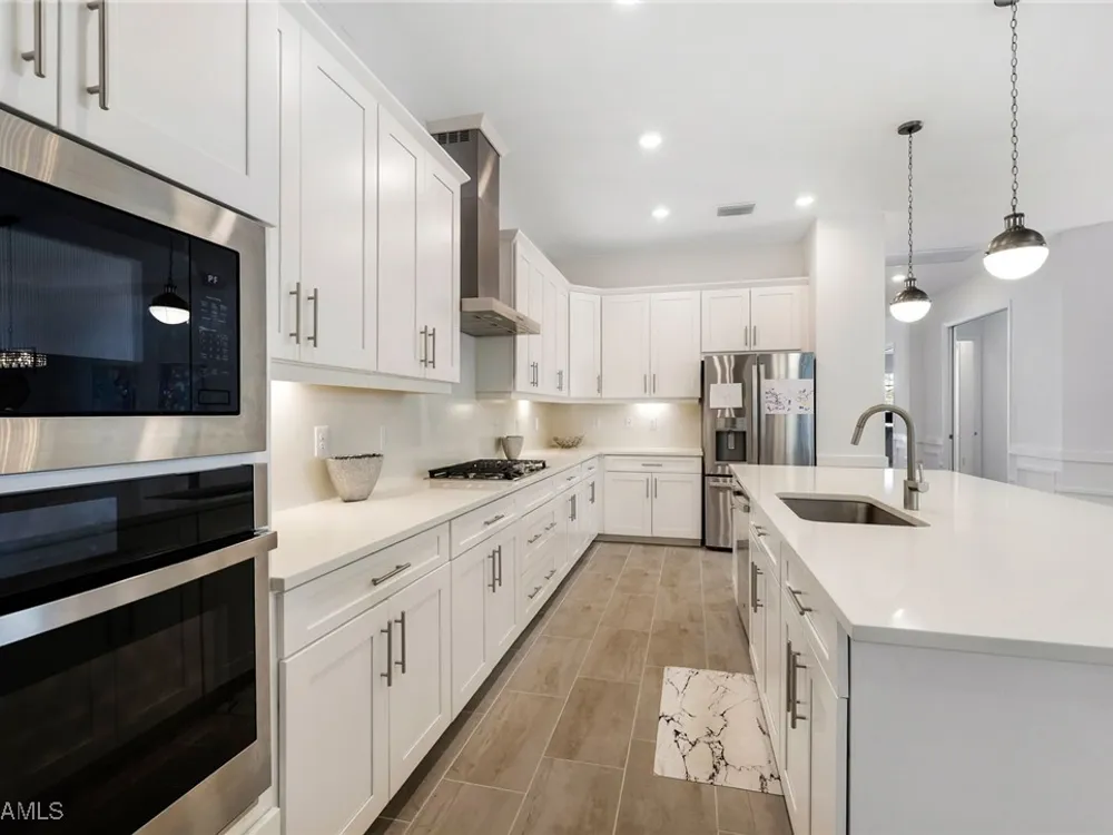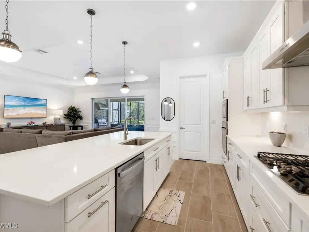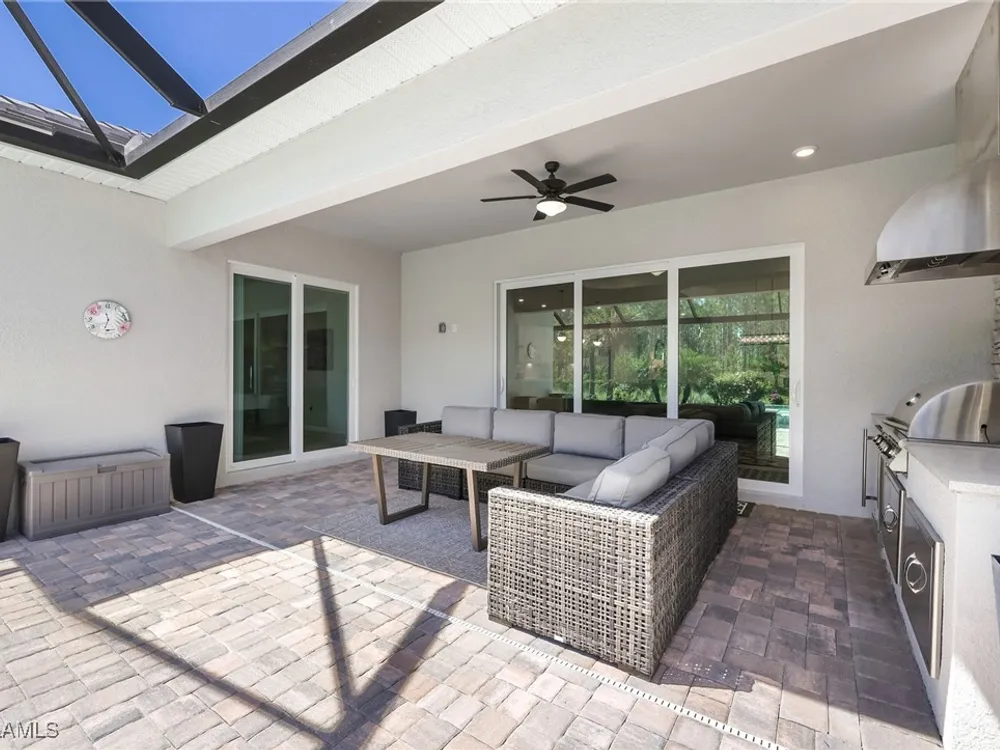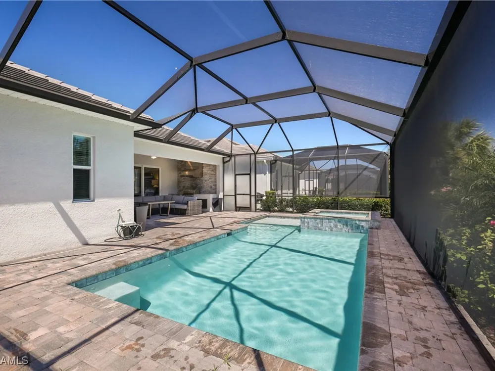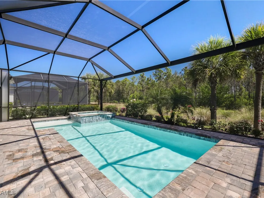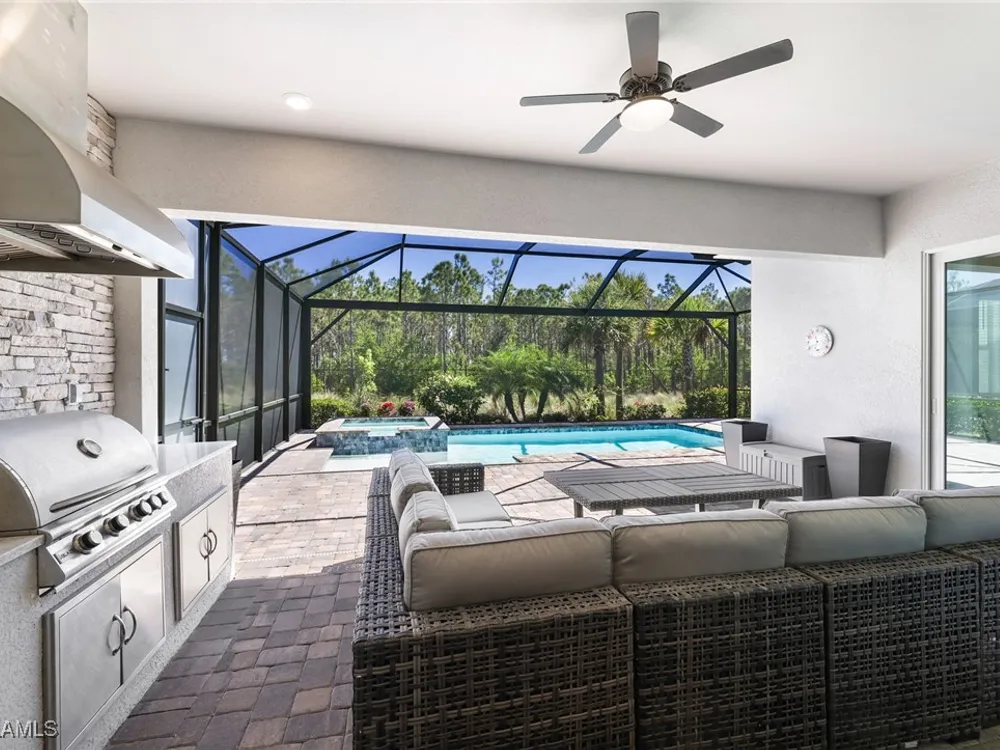 Lowest priced pool home in WildBlue! Indulge in refined coastal living at 14095 Blue Bay Circle, nestled in the sought-after WildBlue community. This extensively upgraded residence with negotiable furnishings showcases a bright, open layout while maintaining a "homey" feel. The chef’s kitchen is a standout, boasting custom solid wood shaker cabinets, sleek quartz counters, premium stainless steel appliances, and a natural gas cooktop. The spacious primary suite is bathed in natural light and includes dual walk-in closets along with a luxurious bathroom featuring double vanities and a large glass-enclosed shower. Step outside to your private oasis—a covered lanai with serene preserve views, a heated pool and spa, and a fully-equipped natural gas outdoor kitchen. Enjoy peace of mind knowing your home is in the lowest risk flood zone in Southwest Florida, and is equipped with impact window and doors all the way around. WildBlue's amenity peninsula provides panoramic views of the 435-acre WildBlue Lake, featuring a resort-style pool, separate lap pool, sandy lakeside beach, fitness center with studios, locker rooms with saunas, spa, a full-service restaurant and bar, poolside bar and grill, tennis and pickleball courts, a pro shop, basketball, boat ramps to over 800 acres of freshwater lakes, boat slip rentals, kayak storage, and more. Don't miss this opportunity, schedule your private tour today.