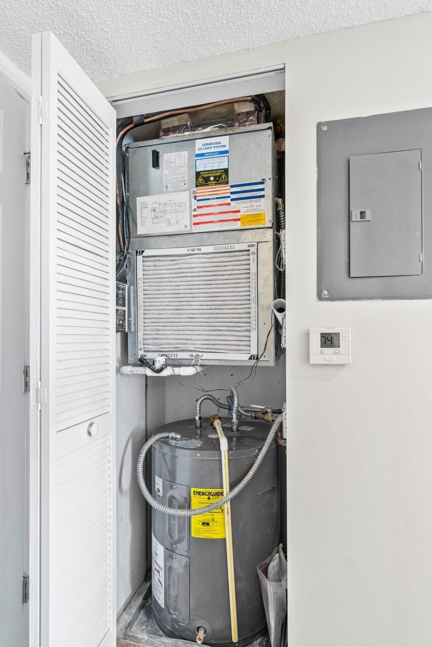 - Electric Water Heater, Dryer, Disposal, Dishwasher, Electric Range, Microwave, Refrigerator, Water Heater, Washer