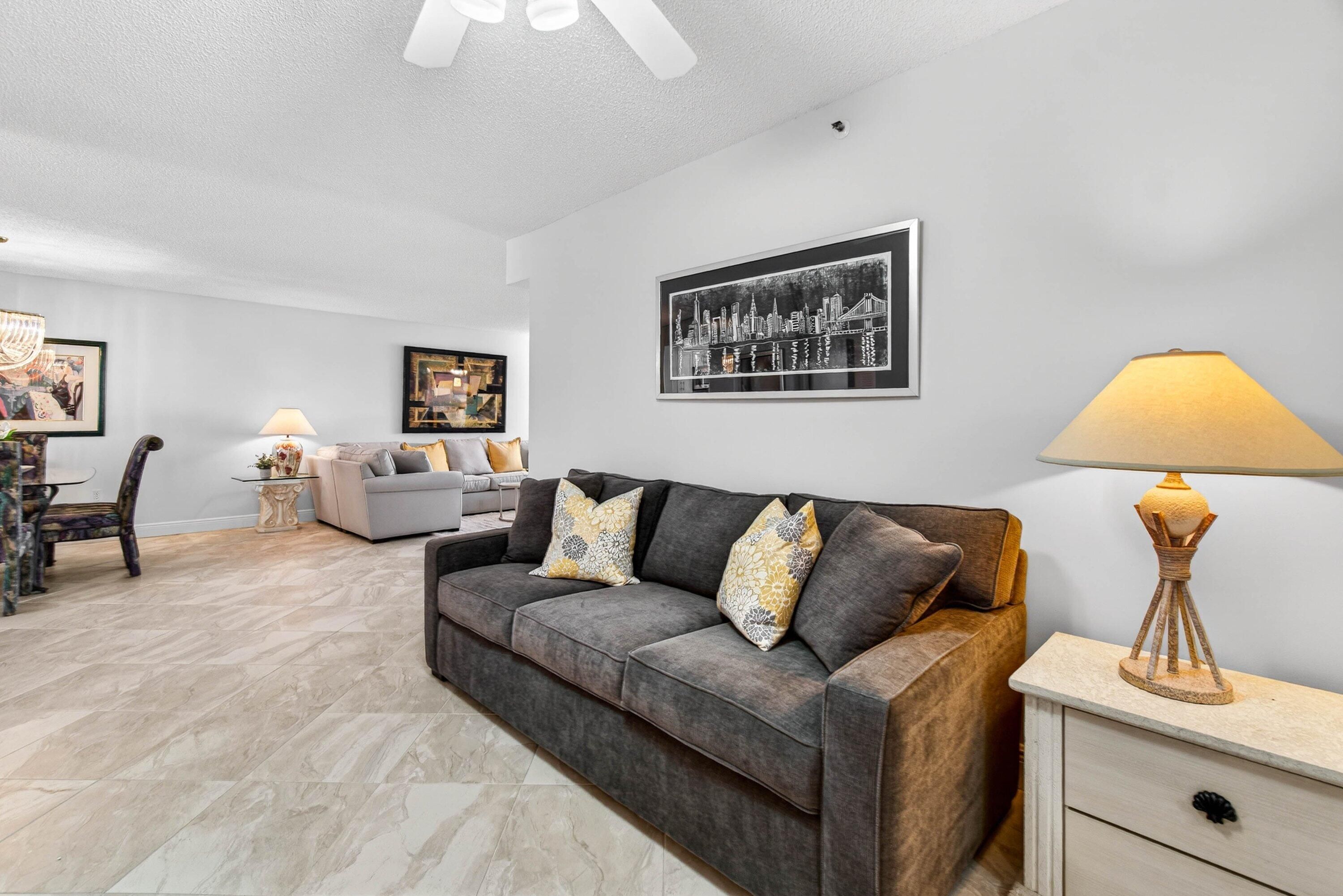 COME JOIN THE FABULOUS ACTIVE FLORIDA LIFESTYLE IN THE VERY DESIRABLE HUNTINGTON POINTE GATED COMMUNITY w/ AN AWARD WINNING NEWLY CLUBHOUSE w/ EVERY ACTIVITY IMAGINABLE! THIS 2 BEDROOM PLUS DEN CONDO CAN COME FULLY FURNISHED & HAS A COVERED CARPORT! THIS IS THE SUPER BRIGHT LARGEST ''CHARDONNAY'' MODEL w/ AMAZING LAKE VIEWS YOU HAVE BEEN WAITING FOR. NEW PORCELAIN TILE FLOORING THROUGHOUT & THE UPDATED KITCHEN w/ WHITE SHAKER CABINETS, GRANITE COUNTERTOPS & NEWER S/S APPLIANCES GIVES THIS CONDO A MODERN FEEL. JUST MOVE RIGHT IN & ENJOY THE HP LIFESTYLE! THE CLUBHOUSE HAS A RESTAURANT, A 600 SEAT MOVIE THEATER, FITNESS CENTER, ART STUDIO, MANY CARD GAMES & CLUBS TO JOIN, PICKLEBALL & TENNIS w/ NEW HAR TRU COURTS COMING! JUST MOVE RIGHT IN & START THE NEW YEAR IN A FRESH NEW LIFESTYLE