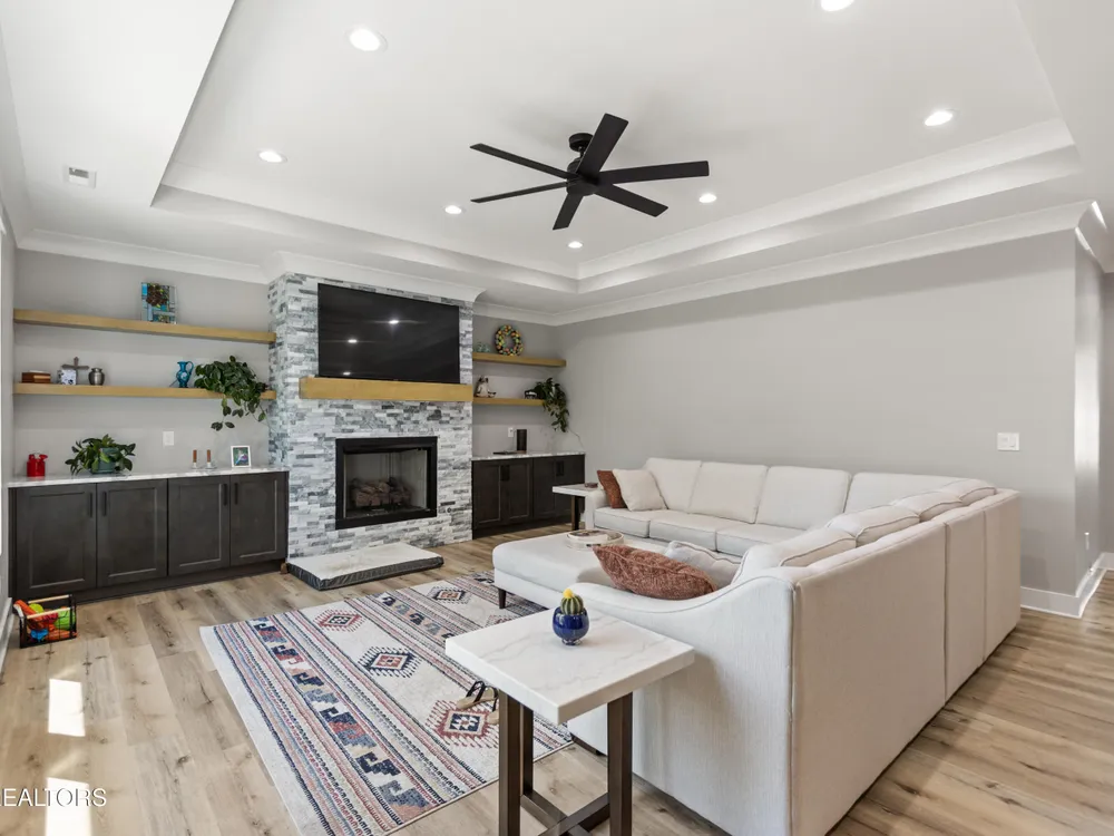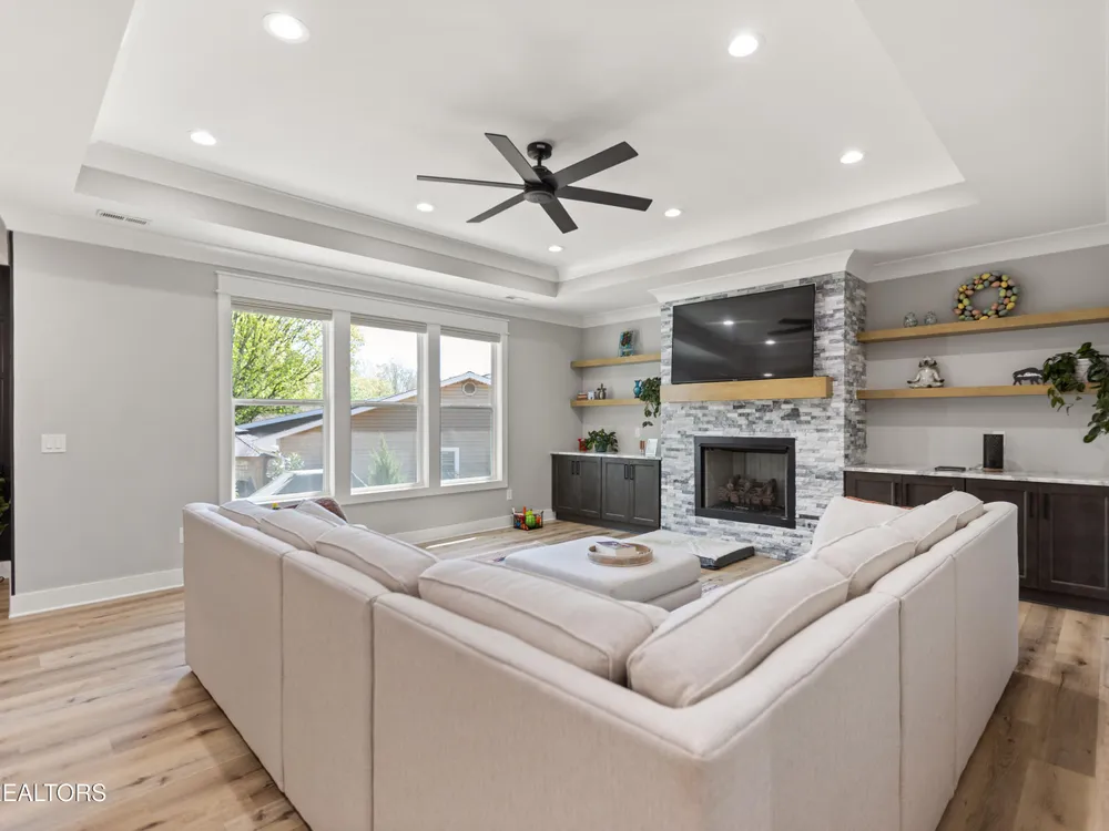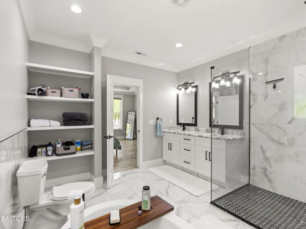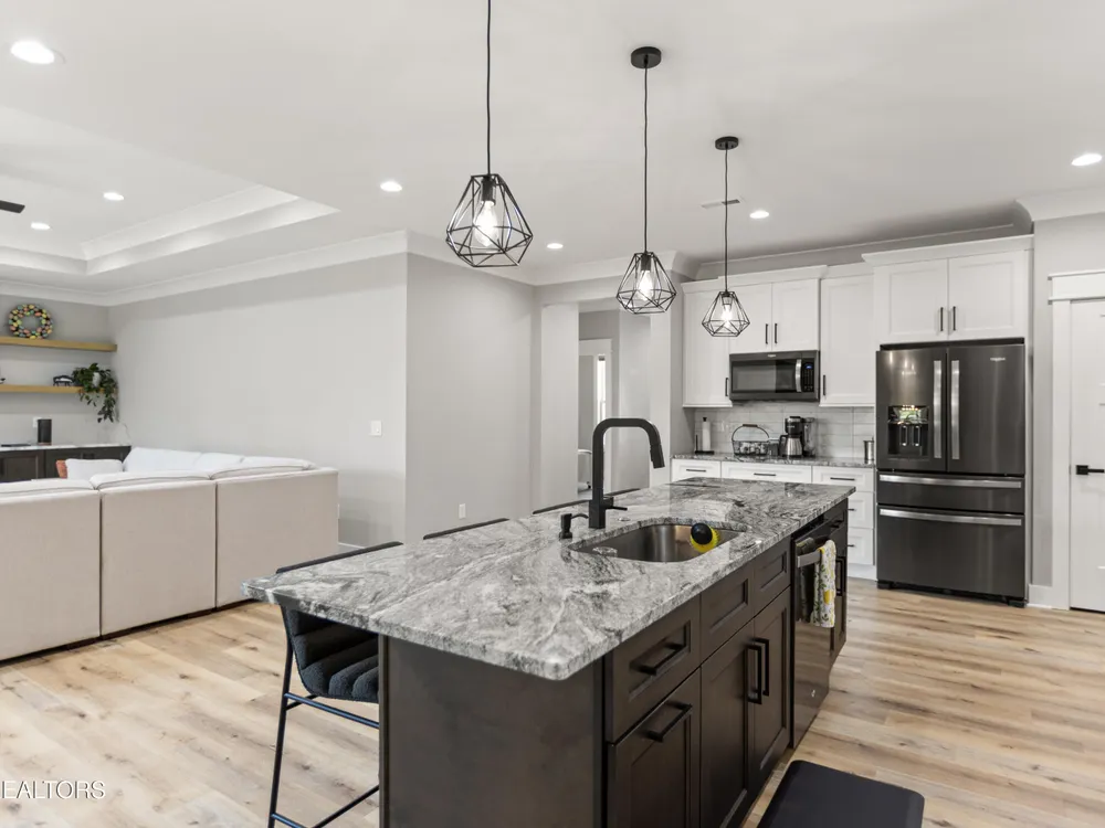Experience comfort and style in this exceptionally maintained 1-year-old home featuring one of the most popular floor plans with 2,283 sq ft of open, functional living space. The great room offers a spacious feel with a cozy fireplace, flowing into a chef's kitchen complete with stainless steel appliances, tile backsplash, beautiful countertops, and ample cabinet and counter space. The main-level Master Suite is a private retreat, featuring double vanities, a custom-tiled shower, freestanding tub, and a large walk-in closet with custom shelving. Durable LVP flooring runs throughout the home, with carpet only in the bonus room. Additional highlights include a spacious laundry room, oversized 2-car garage, a covered and screened back deck, professional landscaping, and an irrigation system. Located in the highly desirable Tellico Village—an active lake community offering marinas, boat ramps, 3 championship golf courses, clubhouses, pools, tennis, pickleball, and more. A rare opportunity to own a one-of-a-kind home in one of East Tennessee's premier communities!