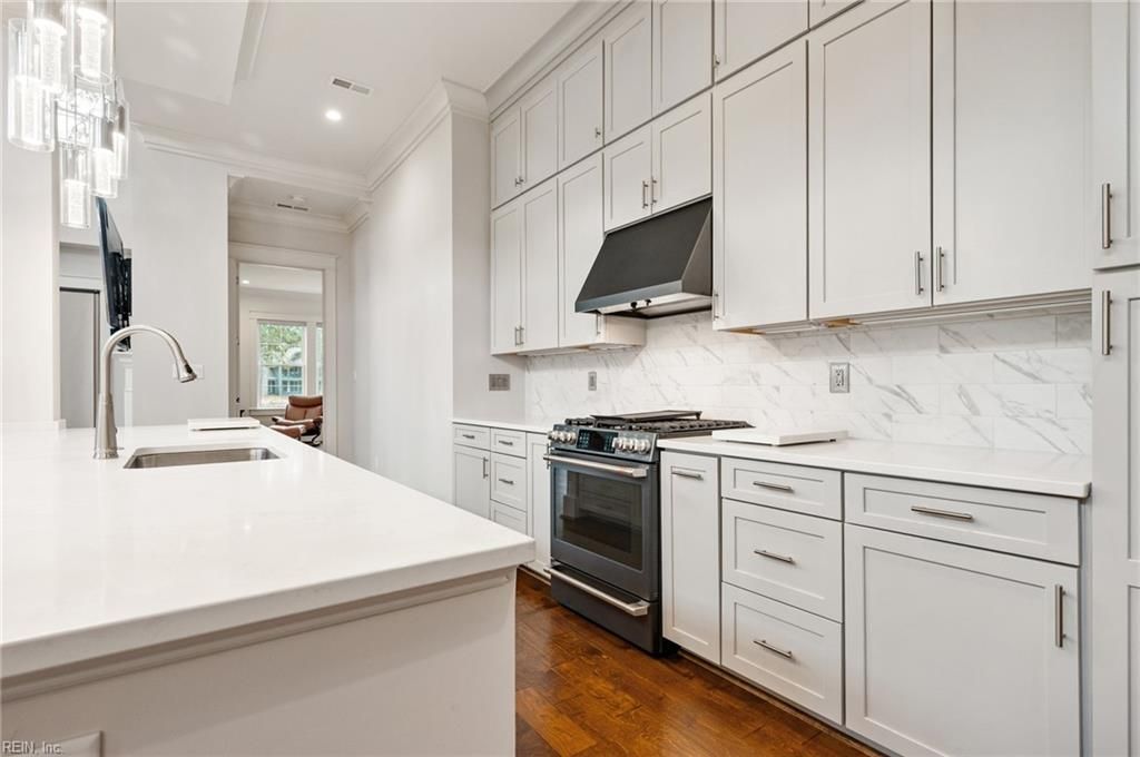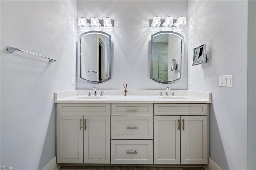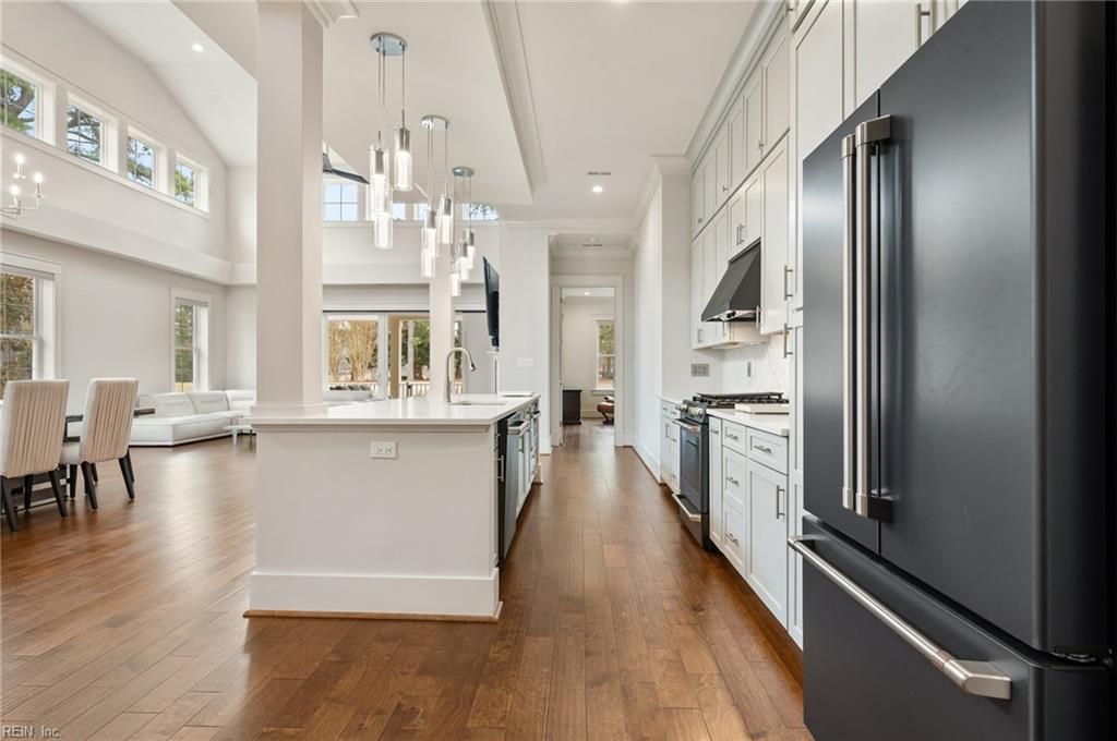 This stunning luxury home, located within the prestigious Kingsmill Resort, offers unparalleled elegance and sophi8stication. Set against the backdrop of a scenic golf course, the property boasts breathtaking views that can be enjoyed from nearly every room. As you step inside, you're immediately struck by the grandeur of the soaring cathedral ceilings which create a sense of openness and light. The open nconcept living space is designed with meticulous attention to detail, featuring high end finishes, custom millwork and large windows that flood the home with natural light. The gourmet kitchen is a chef's dream, quartz countertops and a spacious island, ideal for both meal preparation and casual entertaining. The outdoor living spaces are equally impressive with a large porch overlooking the lush greens of the golf course. Whether hosting guests or enjoying a quiet moment, the backyard provides the ideal setting for relaxation and entertainment.