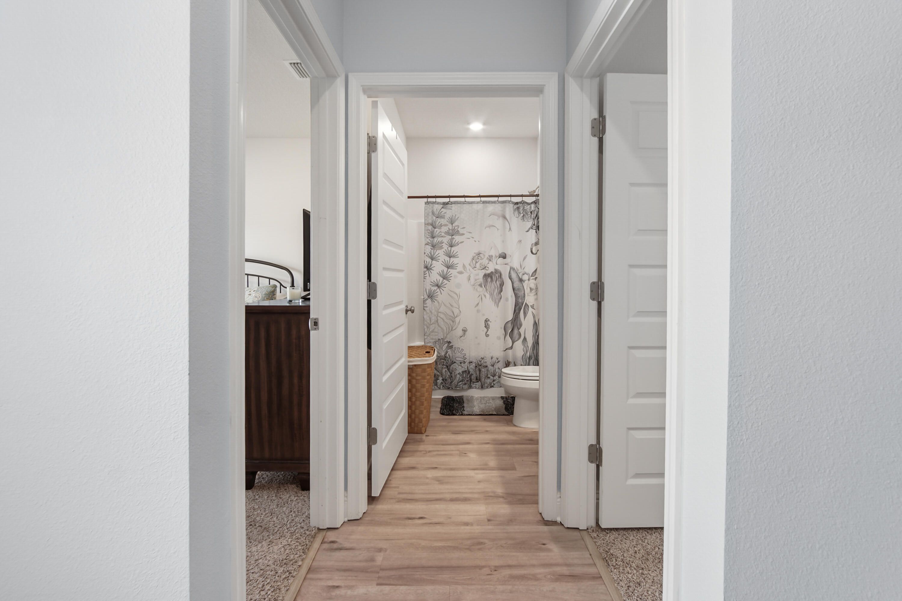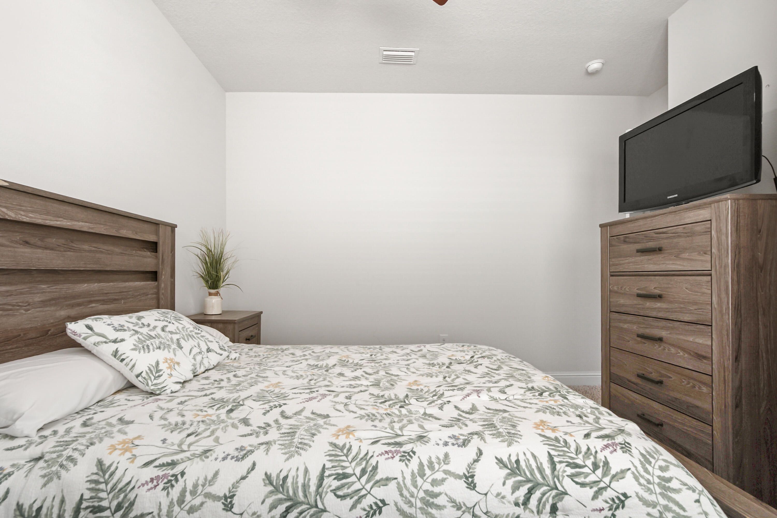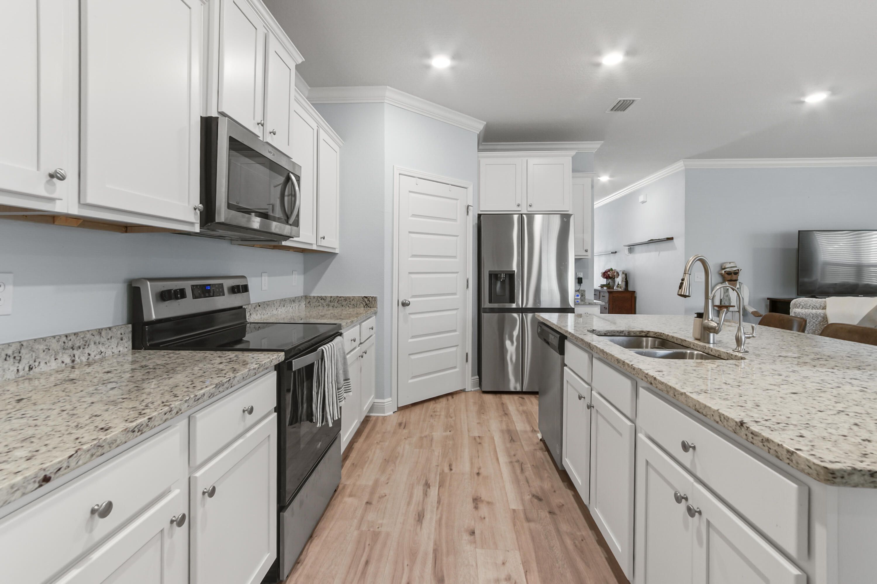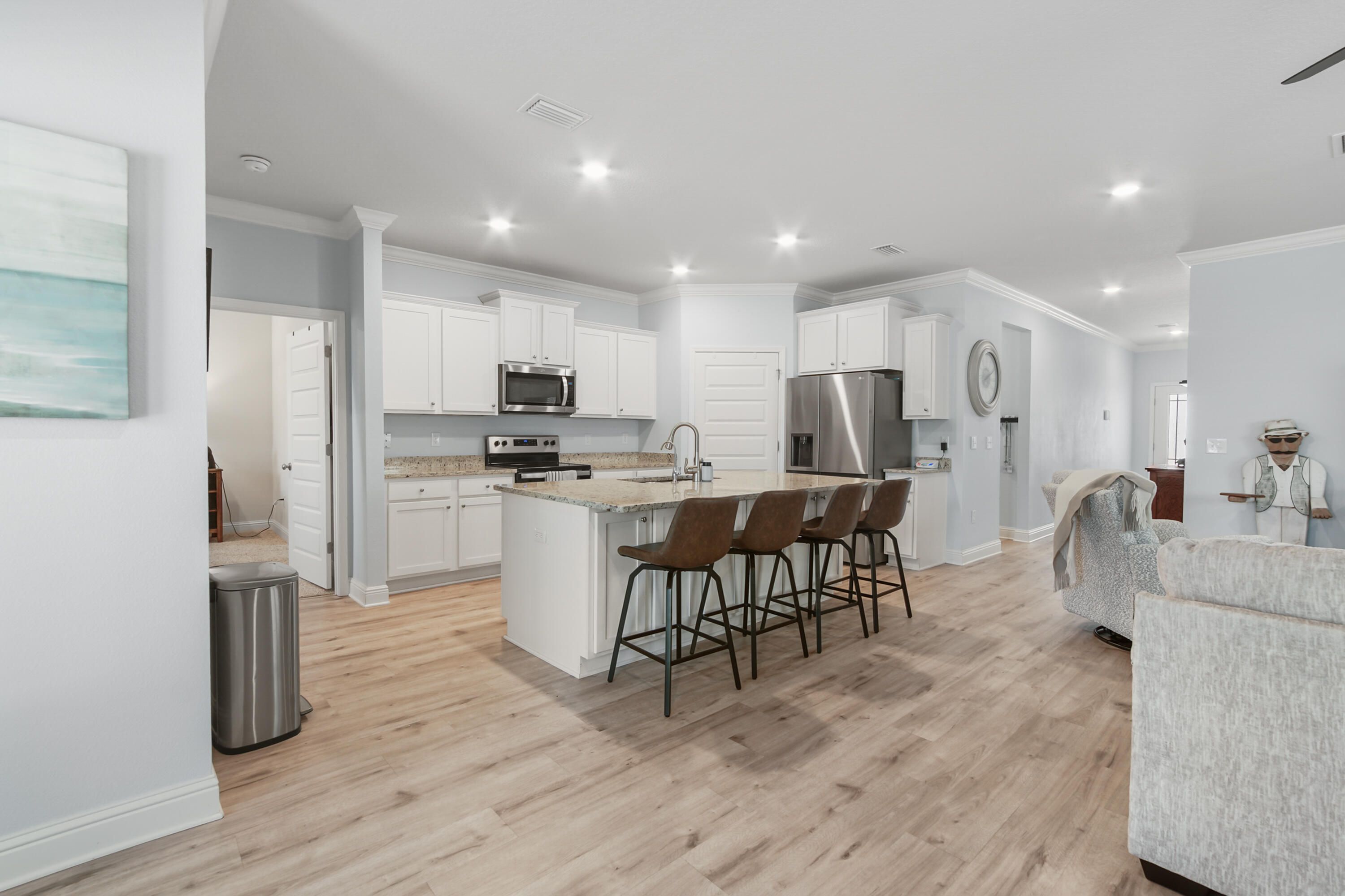 Welcome to this like-new home, gently lived in and thoughtfully designed for comfortable living. The spacious layout creates an inviting atmosphere from the moment you step inside. Located within the gated Firefly neighborhood of Hammock Bay, residents enjoy low-maintenance living with landscaping included in the HOA, along with access to a private pool, clubhouse, and pickleball courts--all just a short walk from your front door. The primary suite features a private ensuite bath and two walk-in closets, offering both convenience and ample storage. Throughout the home, you'll find 9-foot ceilings, with crown molding accents in the main living area and primary bedroom for an added touch of elegance. Step outside to enjoy a fully fenced backyard designed for both privacy and relaxation. A rear gate provides direct access to a scenic trail leading to a wooded area, creating a peaceful and secluded outdoor setting.