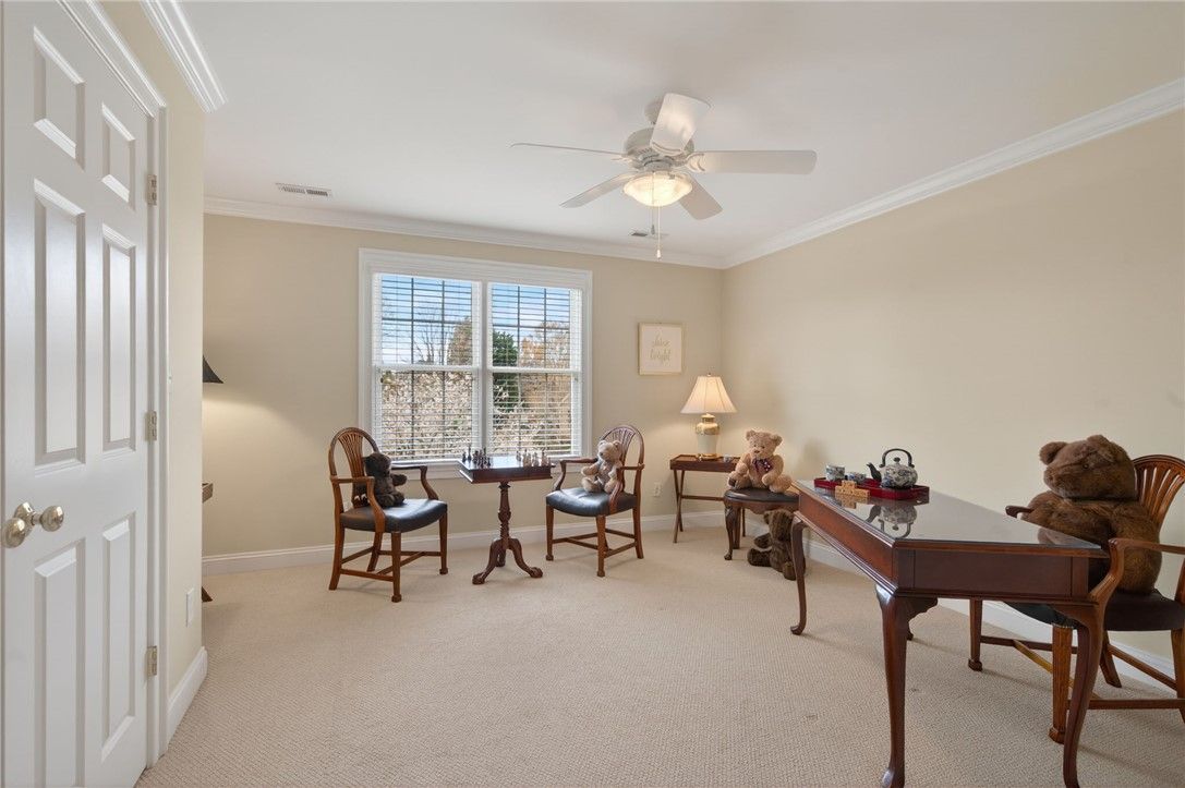 141 Oak Hollow | Ford’s Colony | Williamsburg, VA Framed by blooming magnolias and set on a beautifully landscaped homesite, 141 Oak Hollow blends timeless brick architecture with refined, light-filled interiors in one of Williamsburg’s most sought-after gated communities. Inside, soaring ceilings, rich hardwood floors, and elegant architectural details create a warm yet sophisticated atmosphere. The main living space is both open and inviting, anchored by a fireplace and custom built-ins, with natural light enhancing the home’s seamless flow. A sunroom wrapped in windows offers a peaceful year-round retreat—perfect for morning coffee or quiet afternoons. The formal sitting room, highlighted by arched windows and distinctive character, provides an intimate space for conversation or entertaining. Thoughtfully designed for both everyday living and hosting, the layout offers a balance of spacious gathering areas and comfortable private spaces. Every room reflects quality craftsmanship and intentional design. Located in the award-winning Ford’s Colony, residents enjoy three championship golf courses, scenic trails, and exceptional amenities, all just minutes from historic Williamsburg, shopping, and dining.