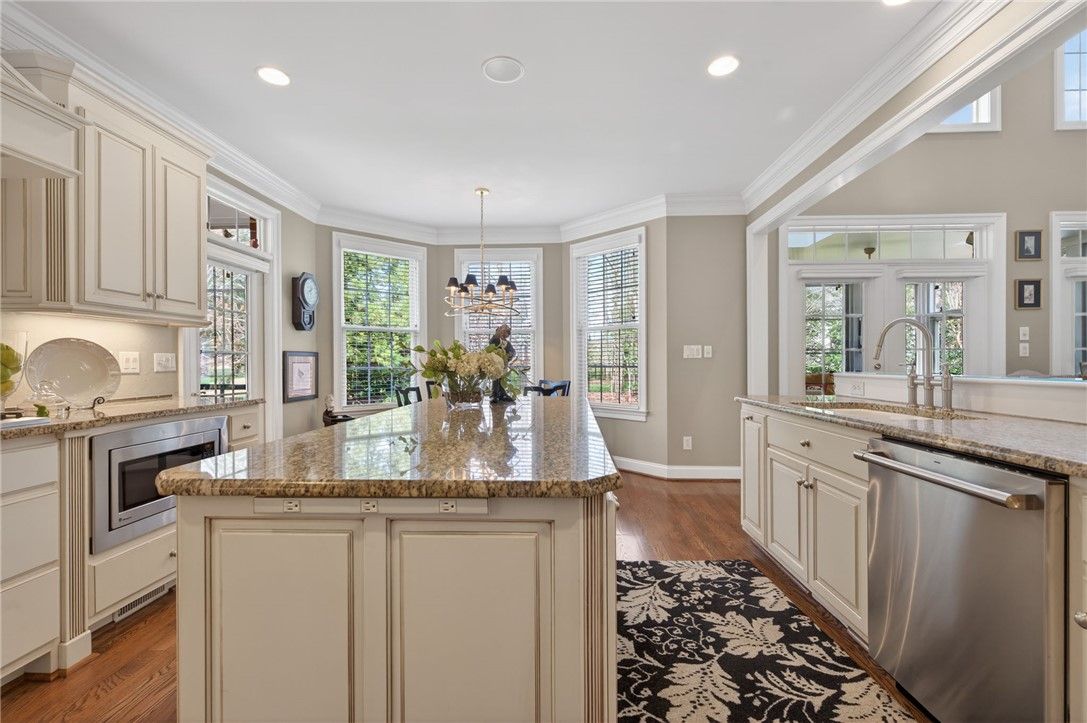 - Attic Access, Bookcases, Built-in Features, Balcony, Tray Ceiling(s), Ceiling Fan(s), Cathedral Ceiling(s), Dining Area, Separate/Formal Dining Room, Double Vanity, Eat-in Kitchen, French Door(s)/Atrium Door(s), Granite Counters, High Ceilings, Kitchen Island, Pantry, Pull Down Attic Stairs, Recessed Lighting, Skylights, Walk-In Closet(s), Window Treatments