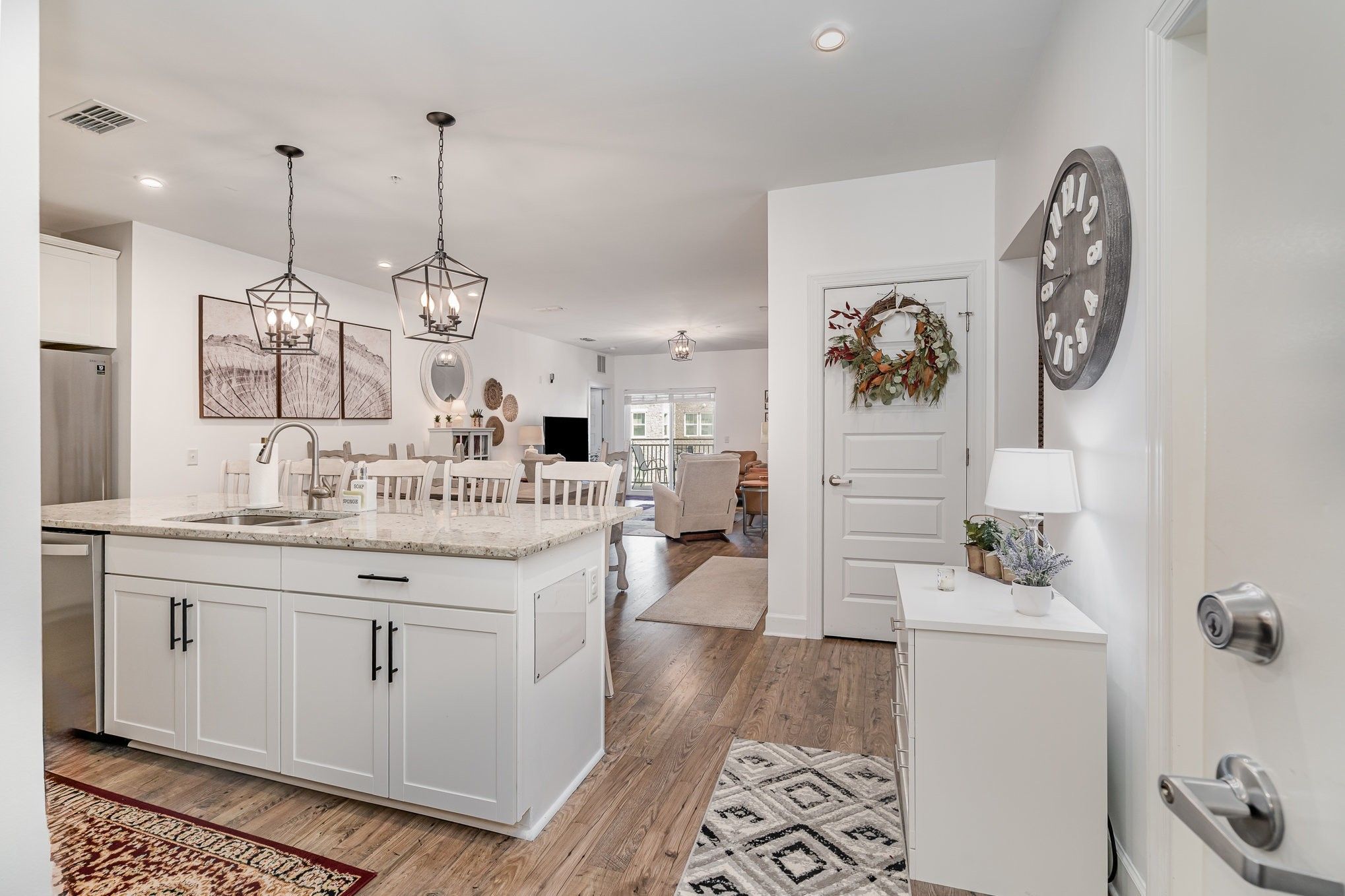 *Buyer Incentives: Washer, Dryer, Fridge, and Microwave will remain + $3,500 Lender Credit + Free Appraisal with use of preferred lender!* The Gathering is for adults 55+ with NO stairs to get to unit is perfect blend of style, convenience, and low-maintenance living. This beautifully designed 2 bed / 2 bath condo offers an open concept layout. Enjoy a sizable kitchen with extended island, granite countertops, and stainless steel appliances! Hardwood floors flow throughout the unit adding extra warmth. This condo has an additional office space with a built-in desk. This unit has ample storage for easy organization. Unit features one of the largest garages in the community. This move-in-ready condo is part of a thoughtfully designed community offering an array of amenities to enrich your lifestyle. Inside the community, residents enjoy access to inviting common areas, a modern mailroom, a stylish lobby, and a versatile conference/shared space complete with private offices—perfect for social or professional gatherings. An outdoor entertainment area with a grilling station provides an ideal setting for hosting friends and neighbors. Additional conveniences include 24-hour secure building access and daily valet trash removal, ensuring comfort, security, and ease every day. The Gathering is across from Hendersonville Greenway including walking trails and a desirable park. This 55 plus community is perfect for active adults. Explore a wealth of shopping, dining, and entertainment options walking distance to "The Streets of Indian Lake". *Please do not contact Seller. Re-listing after the holidays.*