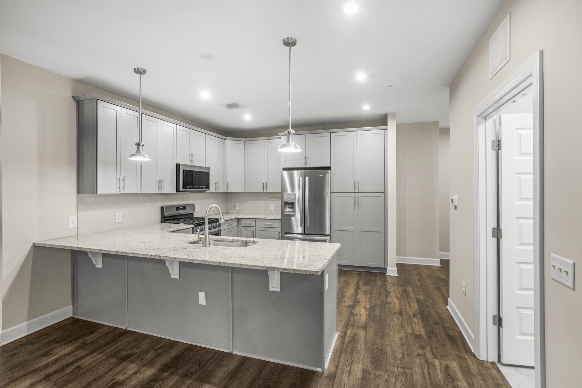 Welcome to The Wiltshire—a stylish, one-level 2BR/2BA condo in Gatherings, a premier 55+ community in Hendersonville! This spacious CORNER UNIT provides a layout includes a formal dining room plus a separate office/hobby room, all centered around an open-concept living area perfect for entertaining. The kitchen features granite countertops, a large pantry, 42” cabinets, designer backsplash, and stainless steel Whirlpool appliances, with hardwood floors flowing through the main living spaces. The luxury primary suite offers a HUGE walk-in closet and a fully tiled walk-in shower with excellent storage. Enjoy your private covered balcony, ideal for morning coffee or evening relaxation. This unit includes a garage + one additional assigned parking spot for added convenience. Washer/ Dryer included. Just steps from endless retail, restaurants, walking trails and public library! If you're looking for low-maintenance living with thoughtful design—look no further!