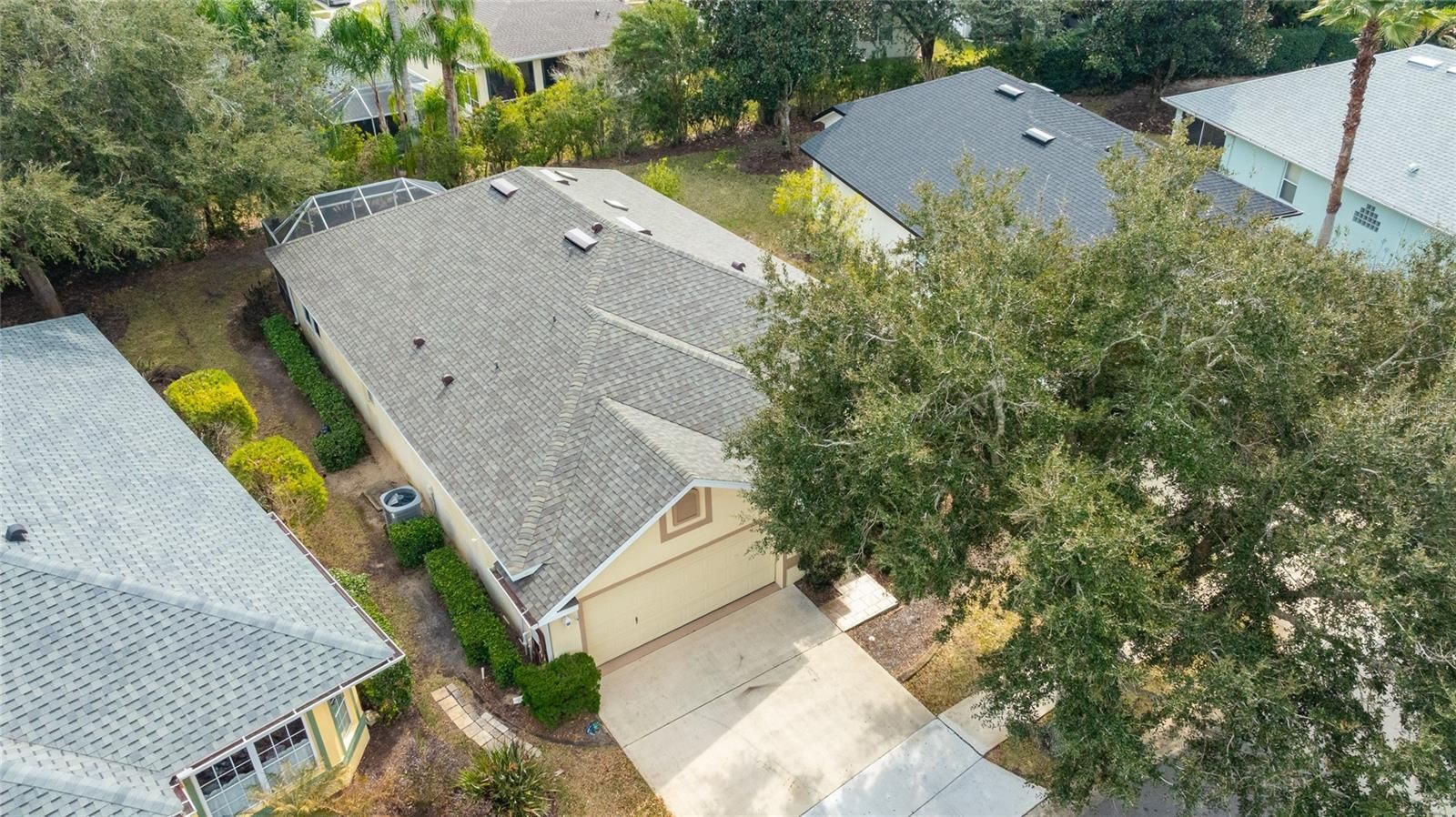 Welcome to your opportunity to own a beautifully maintained home on a quiet street in the gated resort-style community of The Crossings in Grand Haven. A brand-new roof was installed on January 28, 2026, offering peace of mind for years to come. This open, split-bedroom floor plan features vaulted ceilings and an abundance of natural light throughout. The eat-in kitchen is bright and inviting, perfect for everyday living and entertaining. A versatile third bedroom includes ample built-in shelving, making it ideal for a home office, den, or guest space. Sliding glass doors from both the primary bedroom and living room lead to a heated and cooled Florida room, providing additional year-round living and entertaining space, which opens to a fully screened lanai. Enjoy low-maintenance living with private lawn care and an irrigation system included. Grand Haven offers exceptional amenities, including three community pools, clay tennis courts, pickleball courts, bocce and croquet, a golf course, dog park, on-site dining, and scenic walking and biking trails along the Intracoastal Waterway. Experience resort-style living and enjoy paradise all year long!
