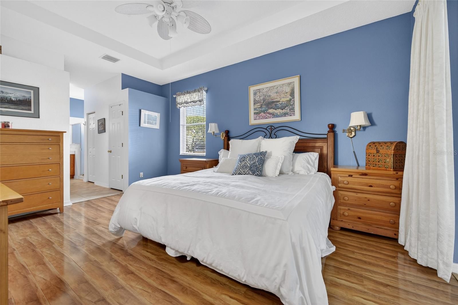 - Ceiling Fan(s), Eat-in Kitchen, High Ceilings, Open Floorplan, Main Level Primary, Tray Ceiling(s), Vaulted Ceiling(s), Walk-In Closet(s), Window Treatments