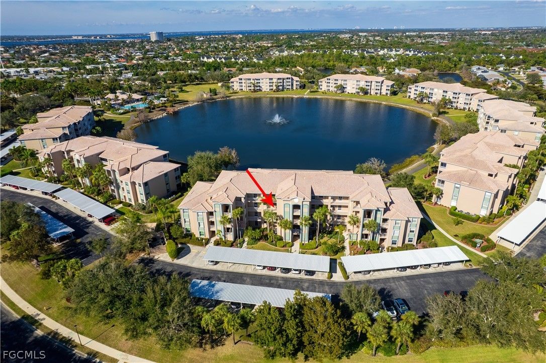Lovingly maintained, TURNKEY FURNISHED, beautiful condo with breathtaking 3rd floor views of the lake and fountain! Beautiful LVP flooring in great room, painted and decorated with cheerful color palettes, filled with natural lighting and a gorgeous view of the lake from every room, located steps to the elevator, and with convenient carport parking right in front of the building entrance...this is your new SW Florida retreat! Heritage Cove is an active 55+ community offering a full resort lifestyle...waterfront pool and spa, beautiful, active clubhouse with fitness room, card and hobby rooms, library, tennis courts, bocce ball, shuffleboard, fishing pier and beautiful walking paths surrounding the large lake where neighbors meet & greet and the Florida sun and Gulf breezes fill your soul! This beauty is move-in ready, beautifully decorated and equipped, and priced to sell! Come and meet your new SW Florida home and fall in love with your new life in paradise!